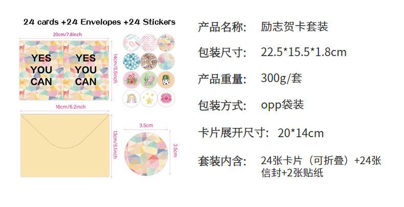 Tarjetas de felicitación de incentivo transfronterizo, 24 tarjetas de inspiración en blanco con sobres plegables, para inspirar a crear tu propio traje de estímulo inglés, europeo y americano.