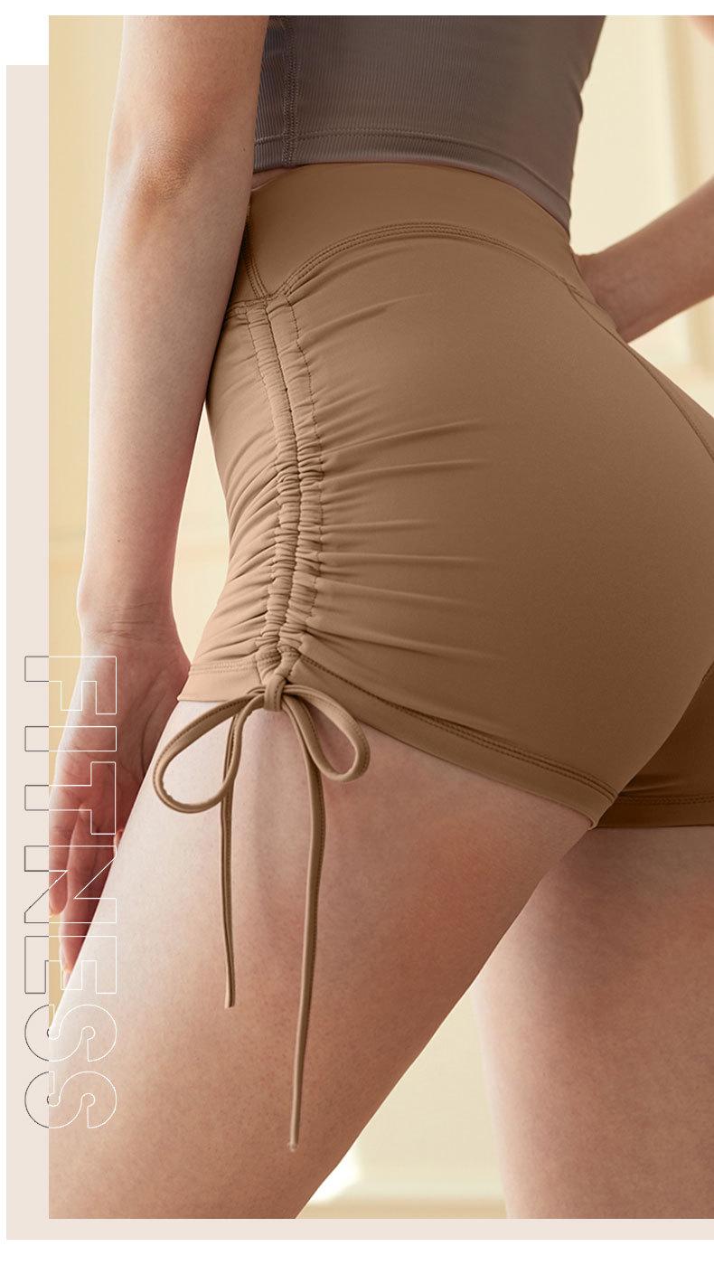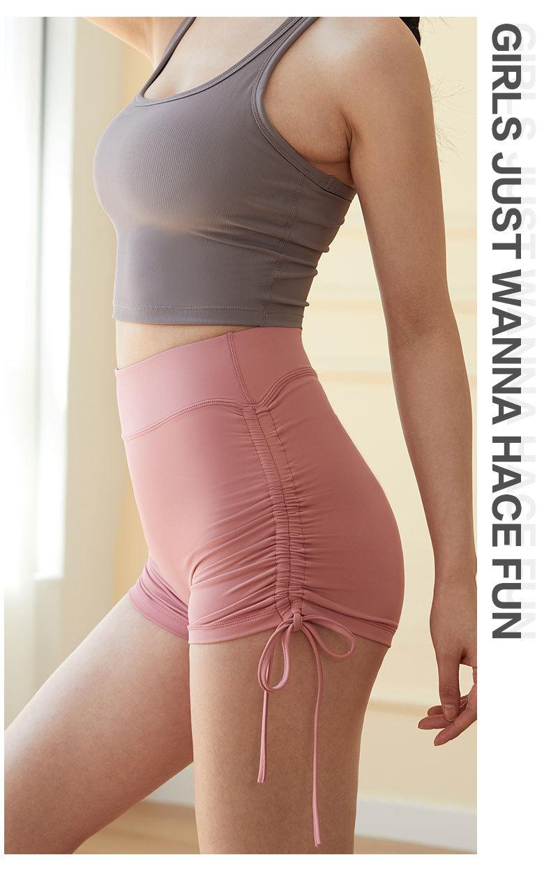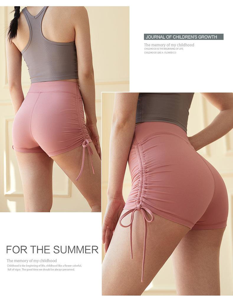 Shorts de Fitness de Verano para Mujer Melocotón Levantamiento de Cadera Deportivos Cordón Sexy Cintura Alta Mallas Yoga Vitalidad de Tres Puntos