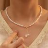 Lindo conejo* Pulsera de perlas naturales reales Pulsera de plata de ley 925 para mujer, resistente a la decoloración, decoración de mano dulce y delicada, conejo de concha de mariposa blanca |