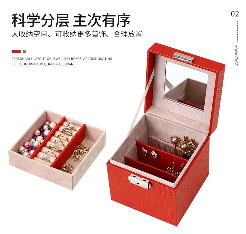 Pendientes, aretes, anillos, caja de almacenamiento de joyas, regalo, caja de joyería ins, caja de joyería portátil de viaje de cuero en stock