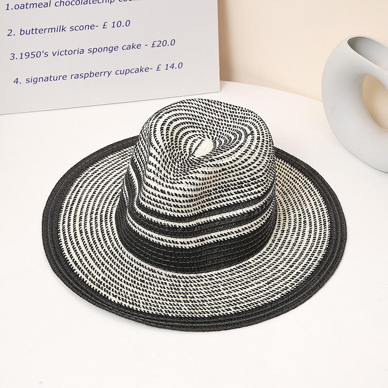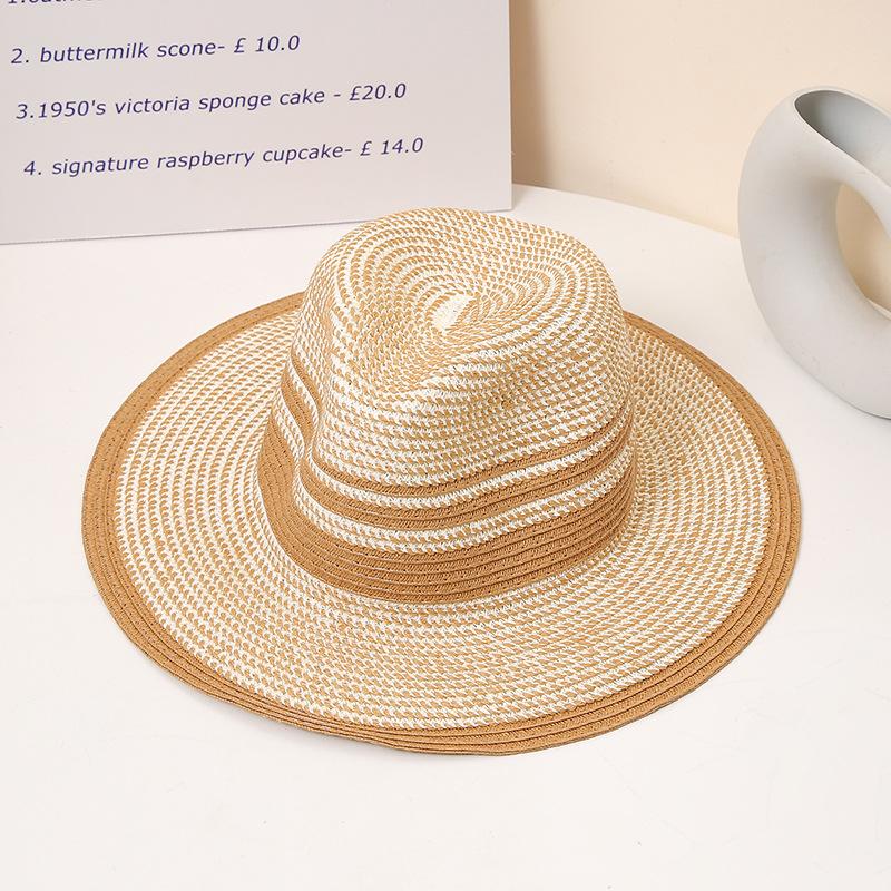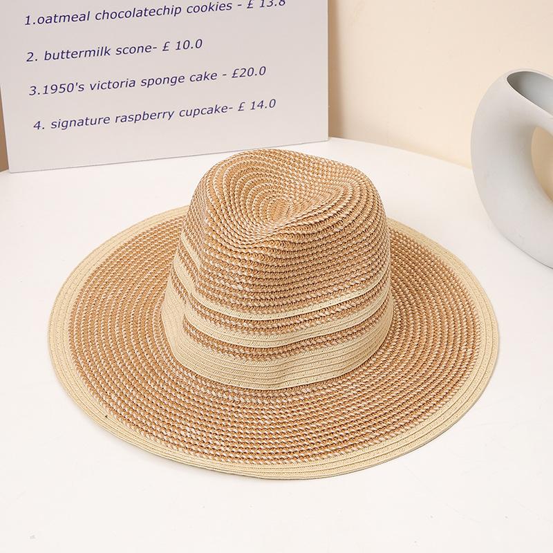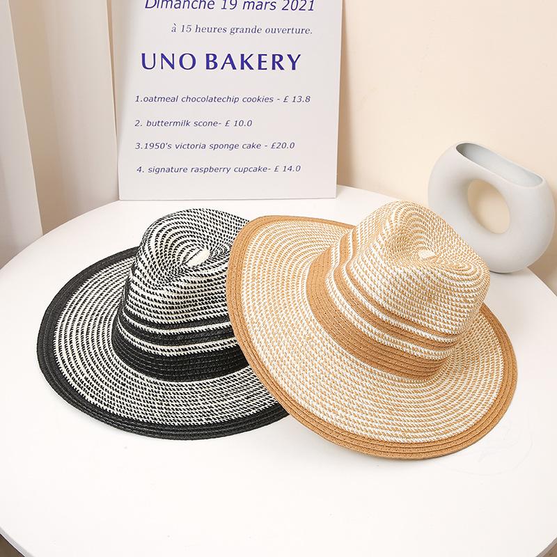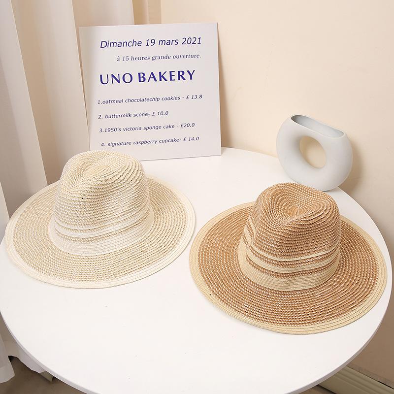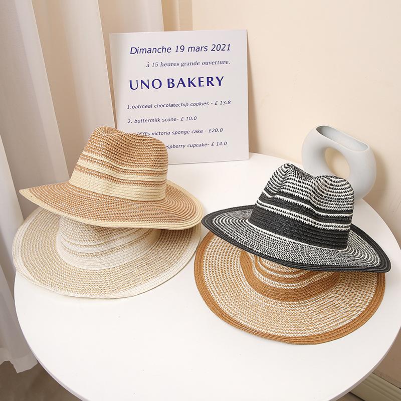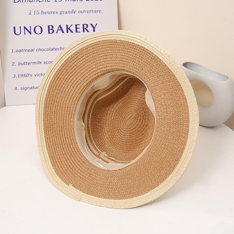 Sombrero de Paja de Verano para Hombre con Costuras Sombrero de Sol de Moda Sombrero Parasol Sombrero Protector Solar Ala Ancha Sombrero de Copa Británico Moda Urbana