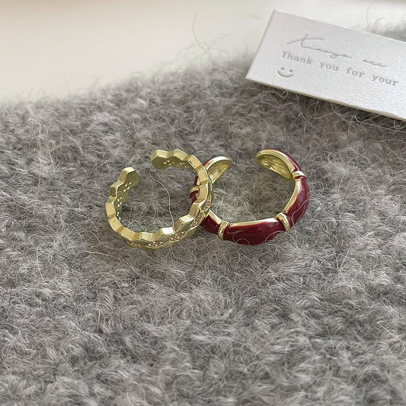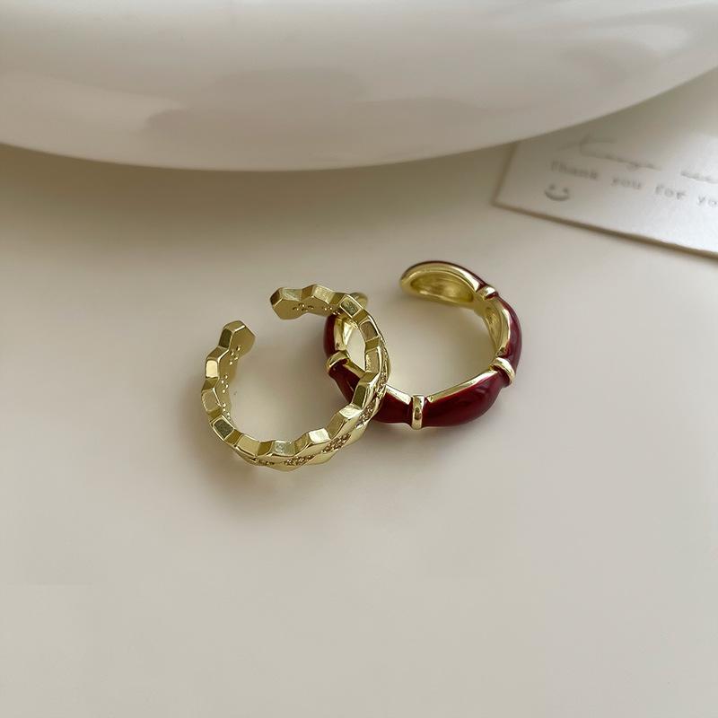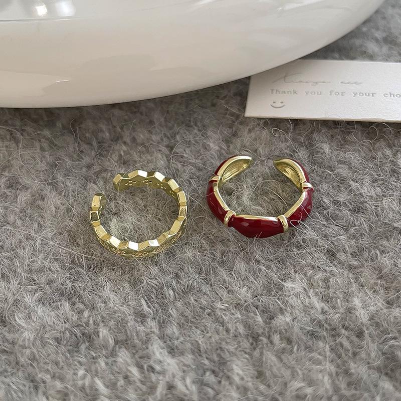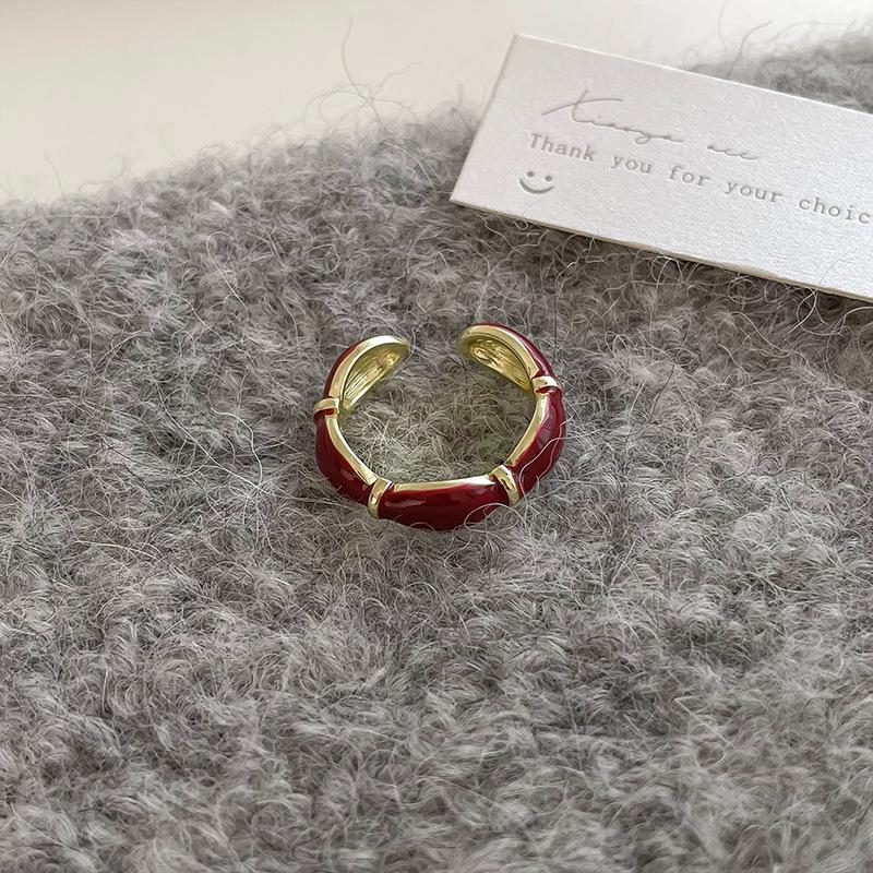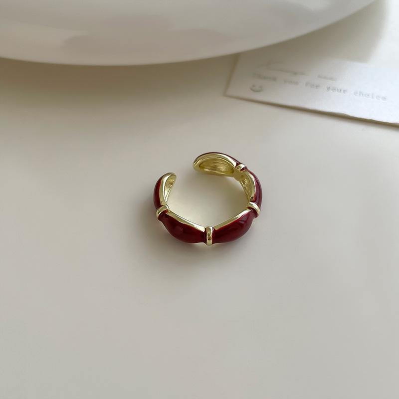 Anillo Abierto de Metal con Goteo de Aceite Rojo para Mujer, Estilo Simple y Cool, Par de Anillos, Anillo Retro para Dedo Índice de Otoño e Invierno