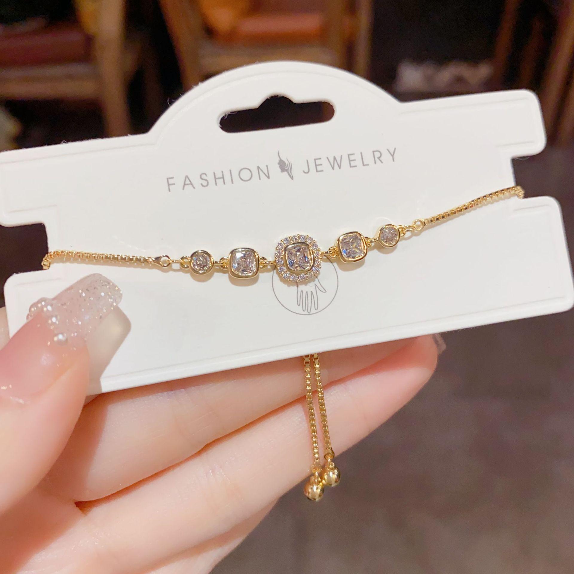 Pulsera de Circonita Geométrica Exquisita de Lujo Ligero Simple Estilo Celebridad de Internet Super Flash Pulsera Elegante de Alta Gama a la Moda para Mujeres