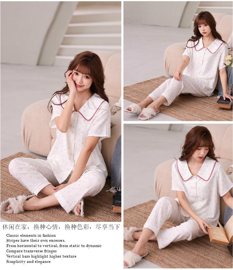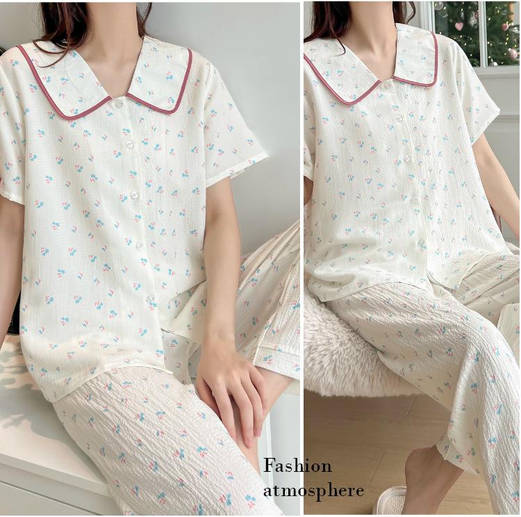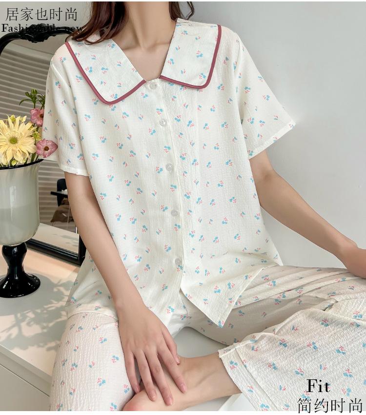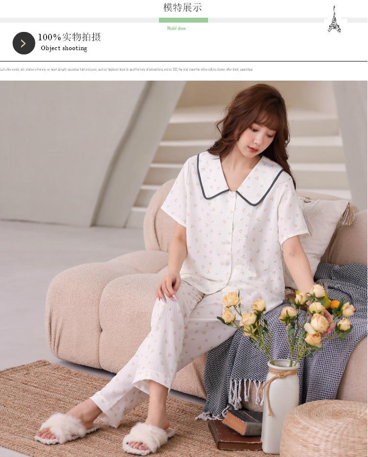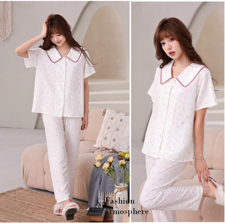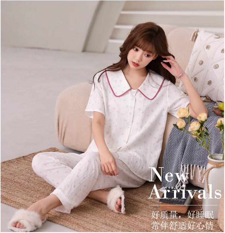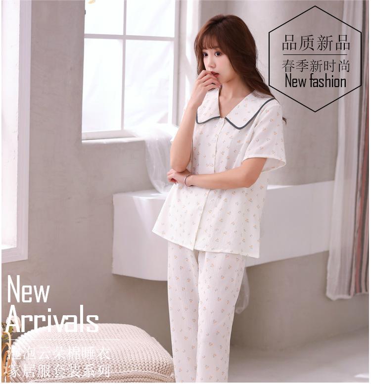 Compra Pijama de mujer de algodón nube, pantalón de manga corta, cárdigan con cuello en V y cuello de muñeca, ropa informal de calidad para el hogar, algodón burbuja al por mayor en Joom.pro