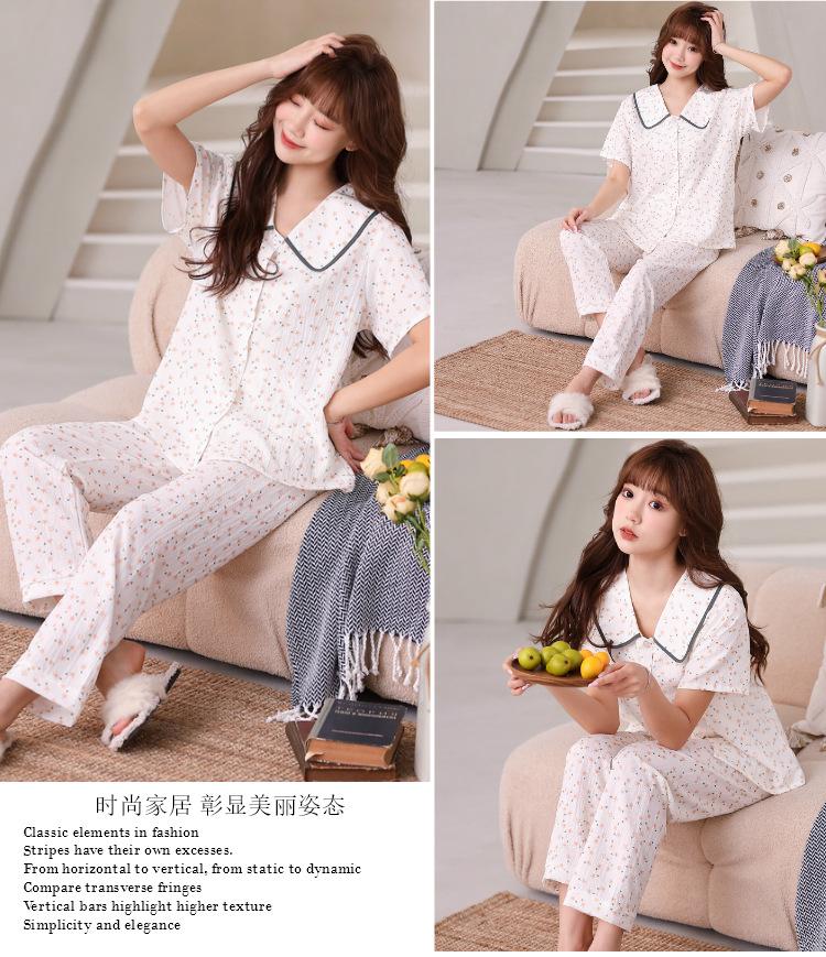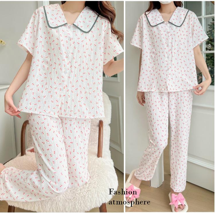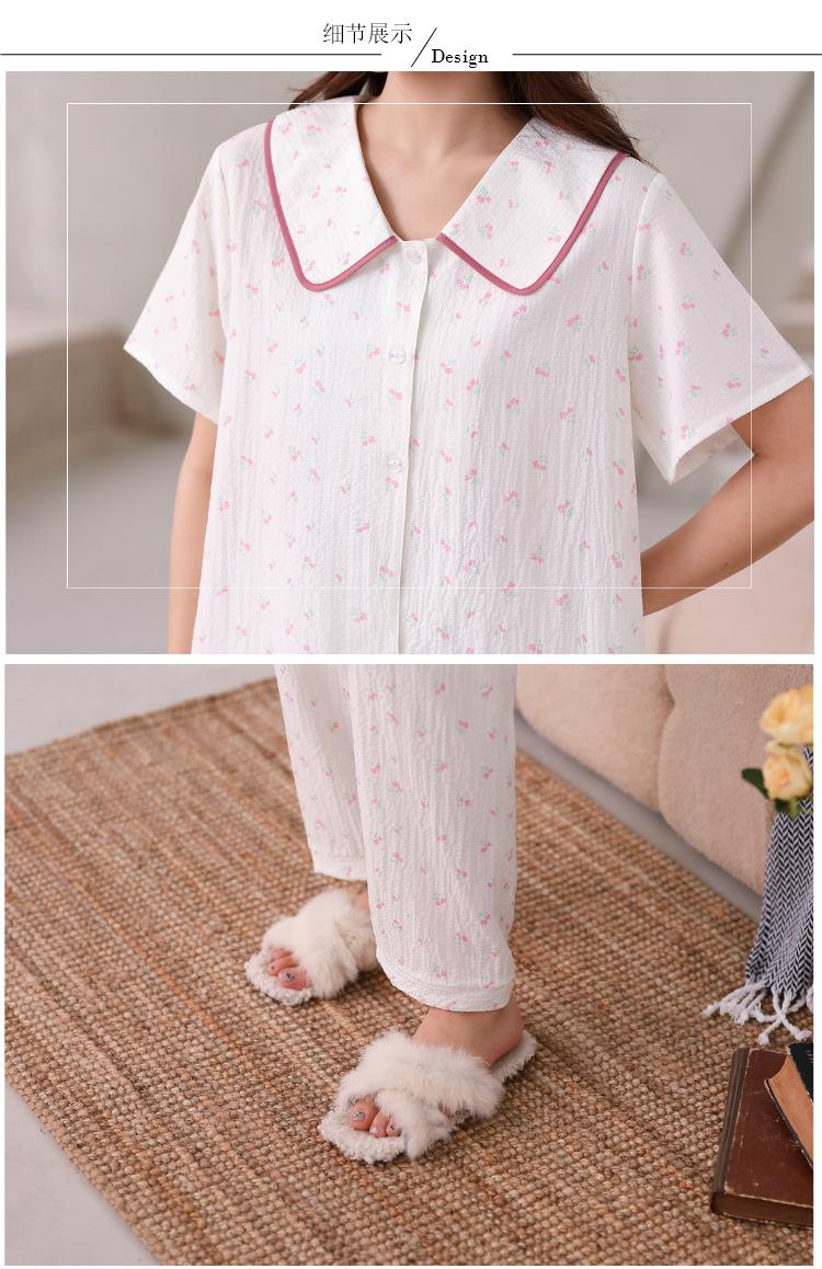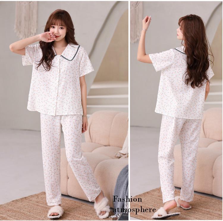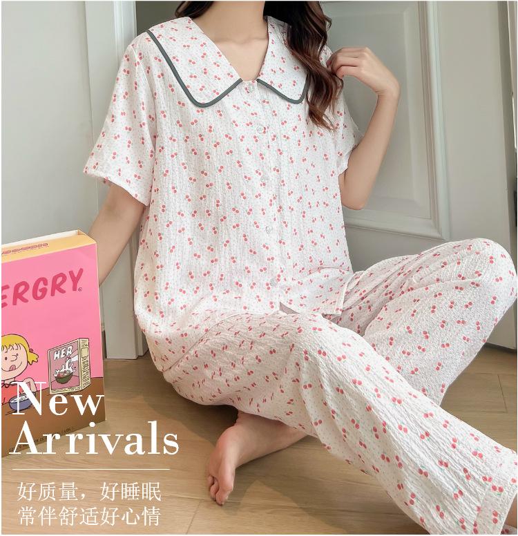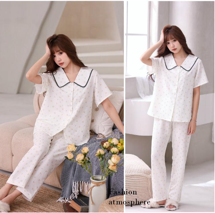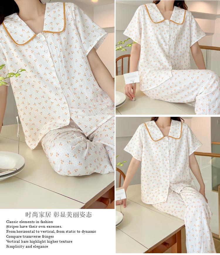 Compra Pijama de mujer de algodón nube, pantalón de manga corta, cárdigan con cuello en V y cuello de muñeca, ropa informal de calidad para el hogar, algodón burbuja al por mayor en Joom.pro