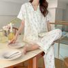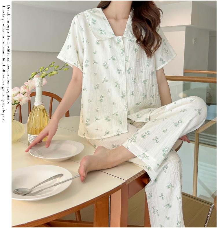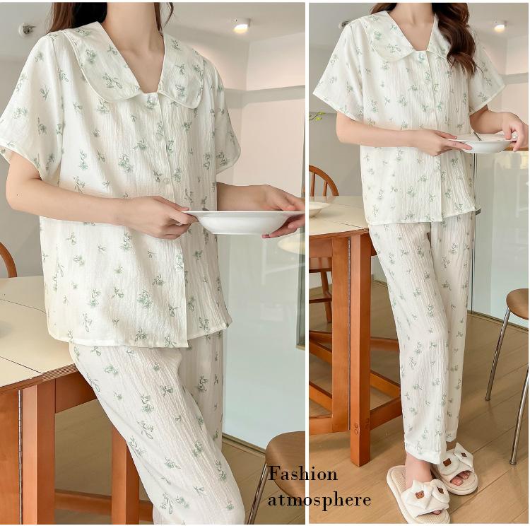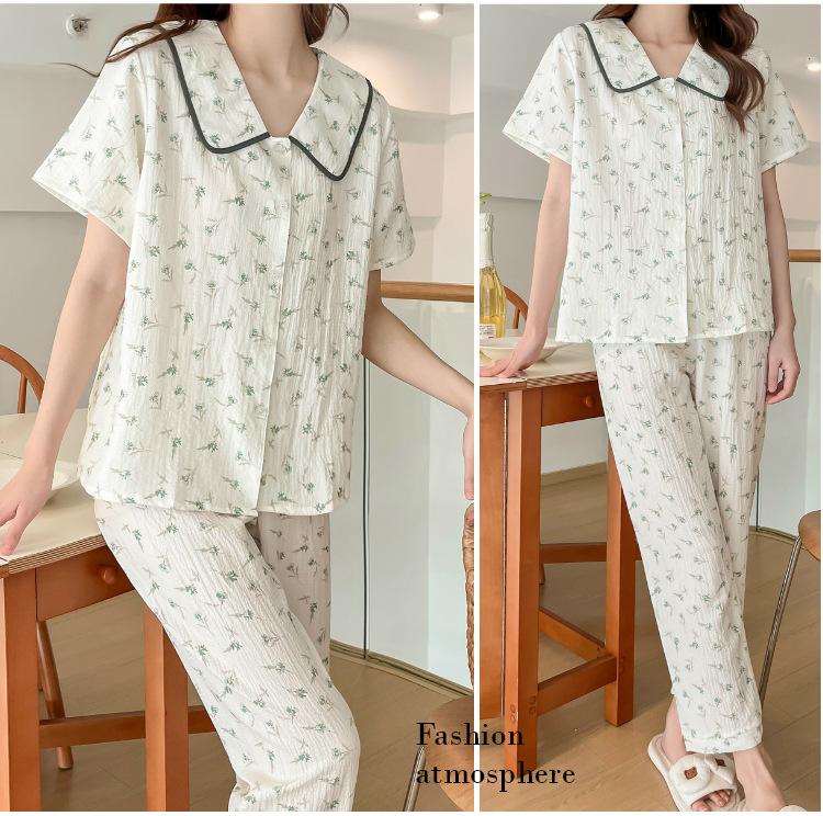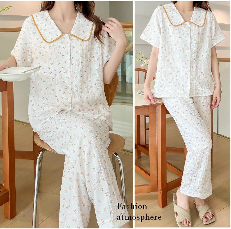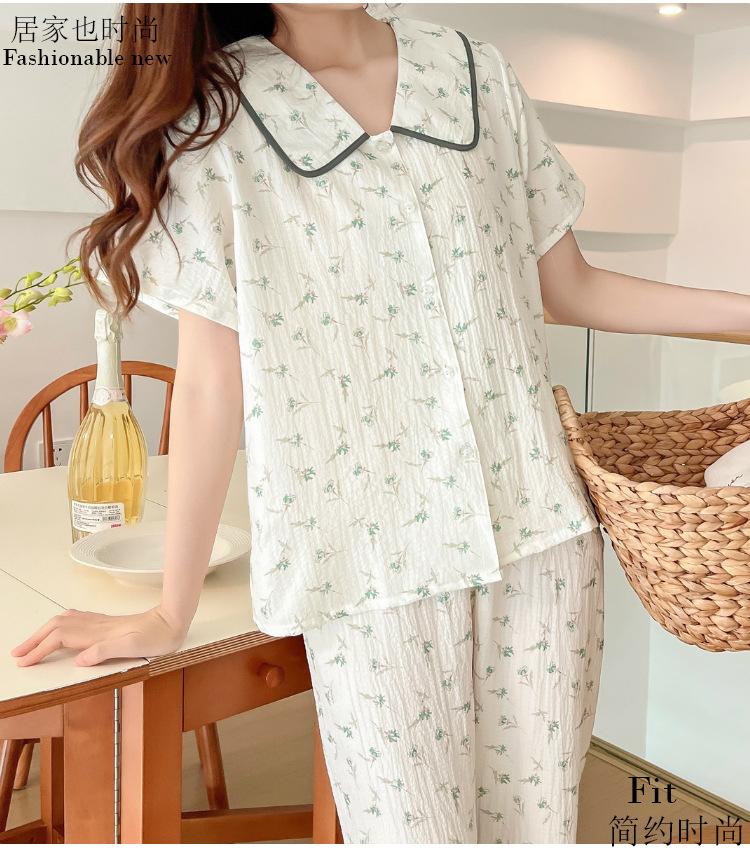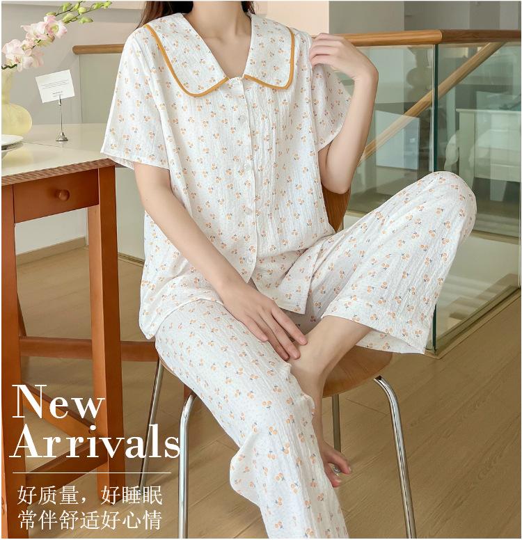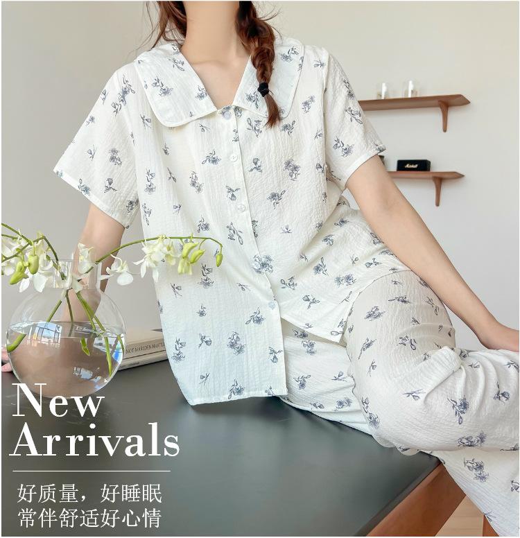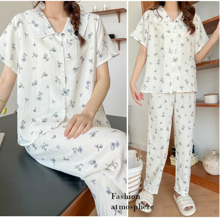Compra Pijama de mujer de algodón nube, pantalón de manga corta, cárdigan con cuello en V y cuello de muñeca, ropa informal de calidad para el hogar, algodón burbuja al por mayor en Joom.pro