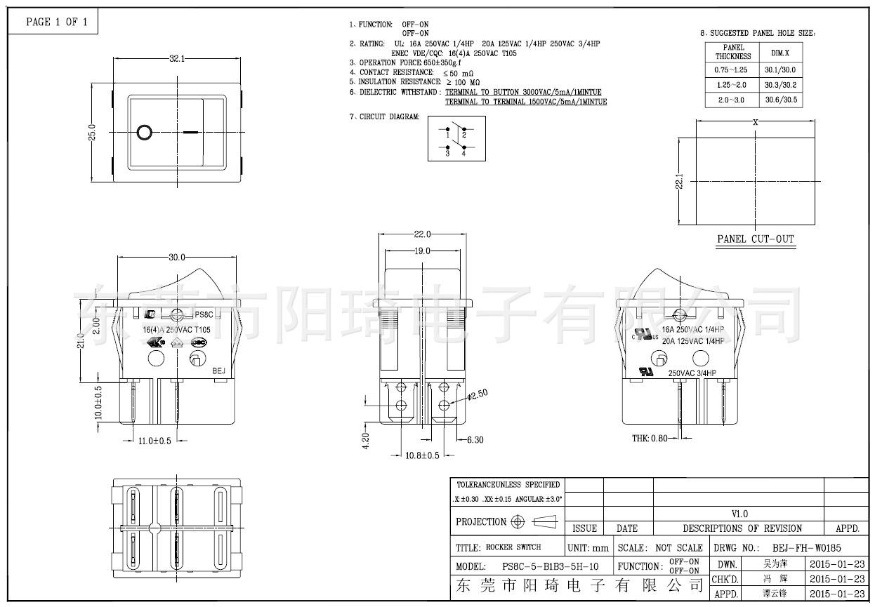 Suministro Ps8C-5 Interruptor Tipo Barco Cuatro Patas Dos Posiciones Interruptor Basculante 16A Alta Corriente Io Interruptor de Alimentación