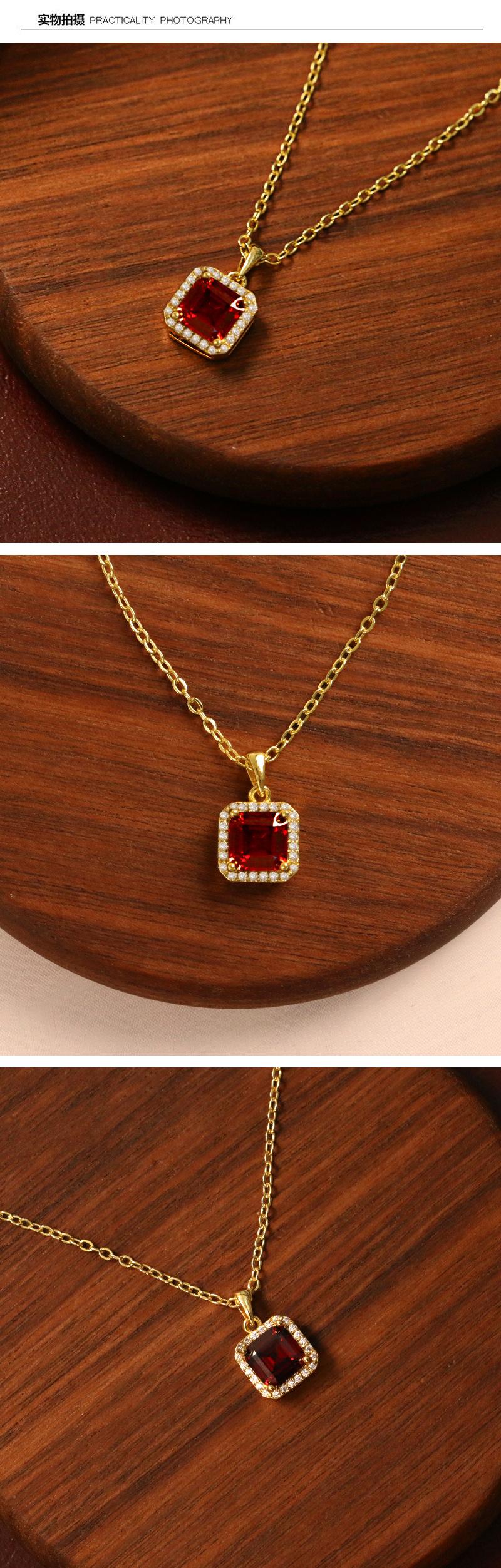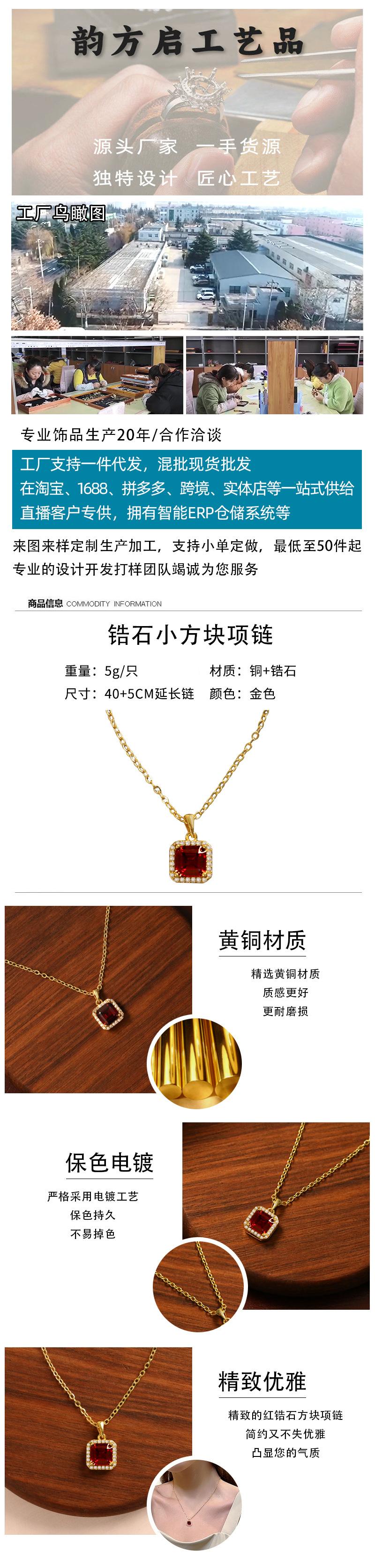 Collar con colgante cuadrado europeo y americano transfronterizo Joyería Cobre Colorido Micro-Incrustado Zircón Cadena Clavicular Collar para Mujer con Elementos Geométricos