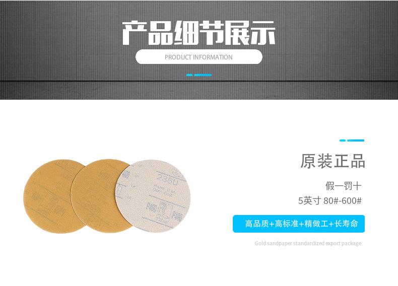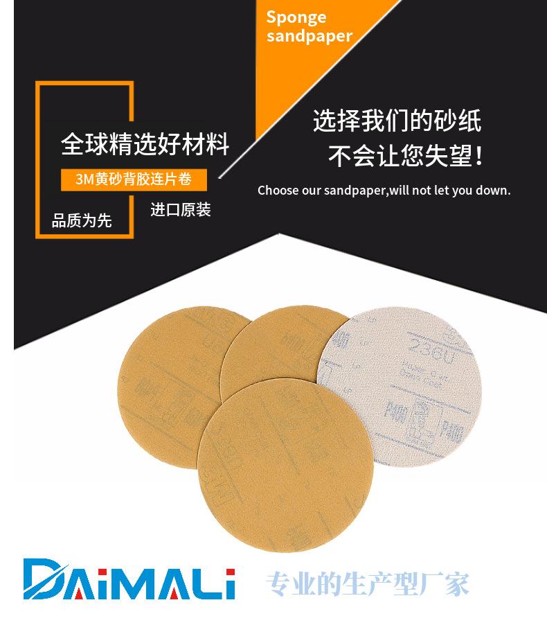 3M236U/216U papel de lija de flocado dorado pulido para coche 3M papel de lija de disco al por mayor 3M papel de lija redondo de 5 pulgadas