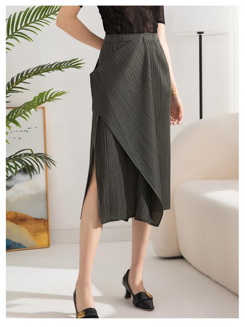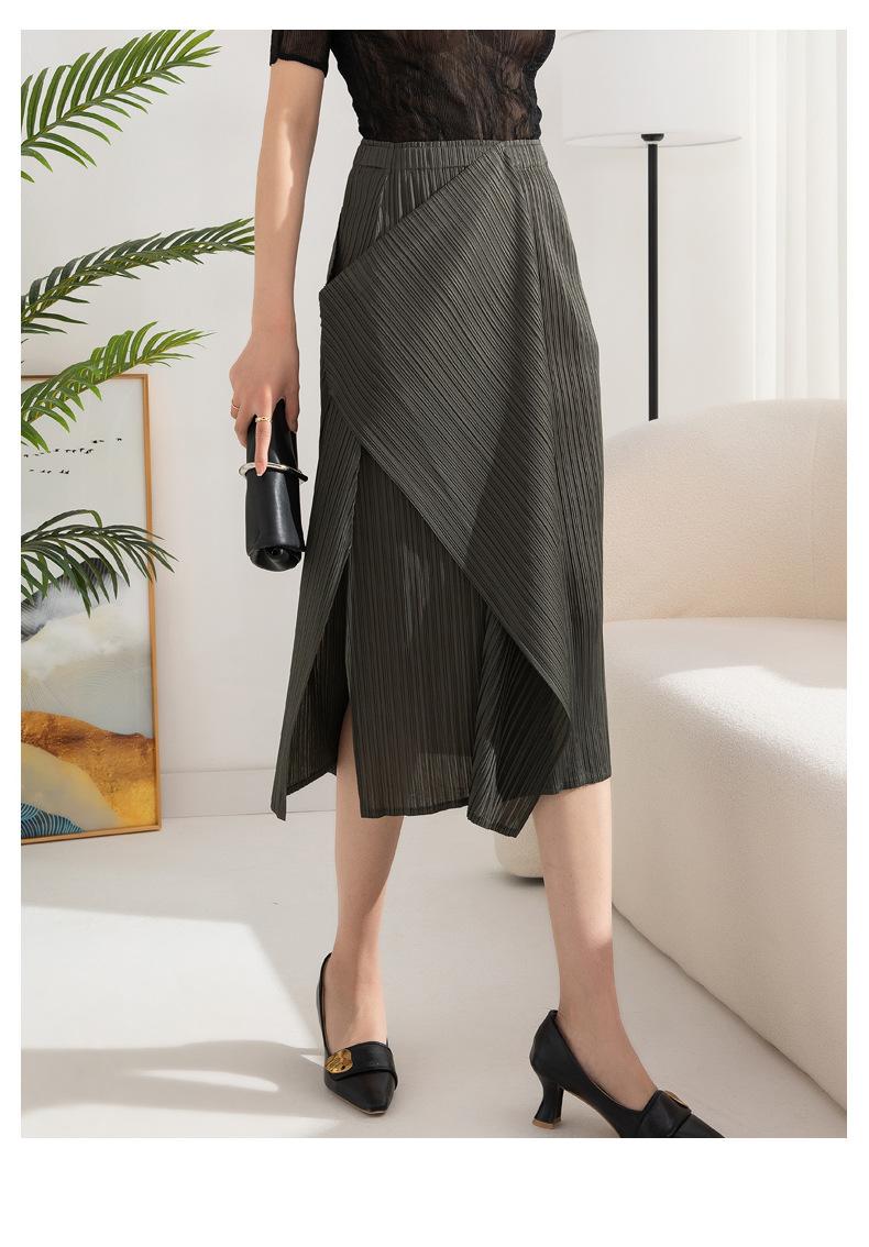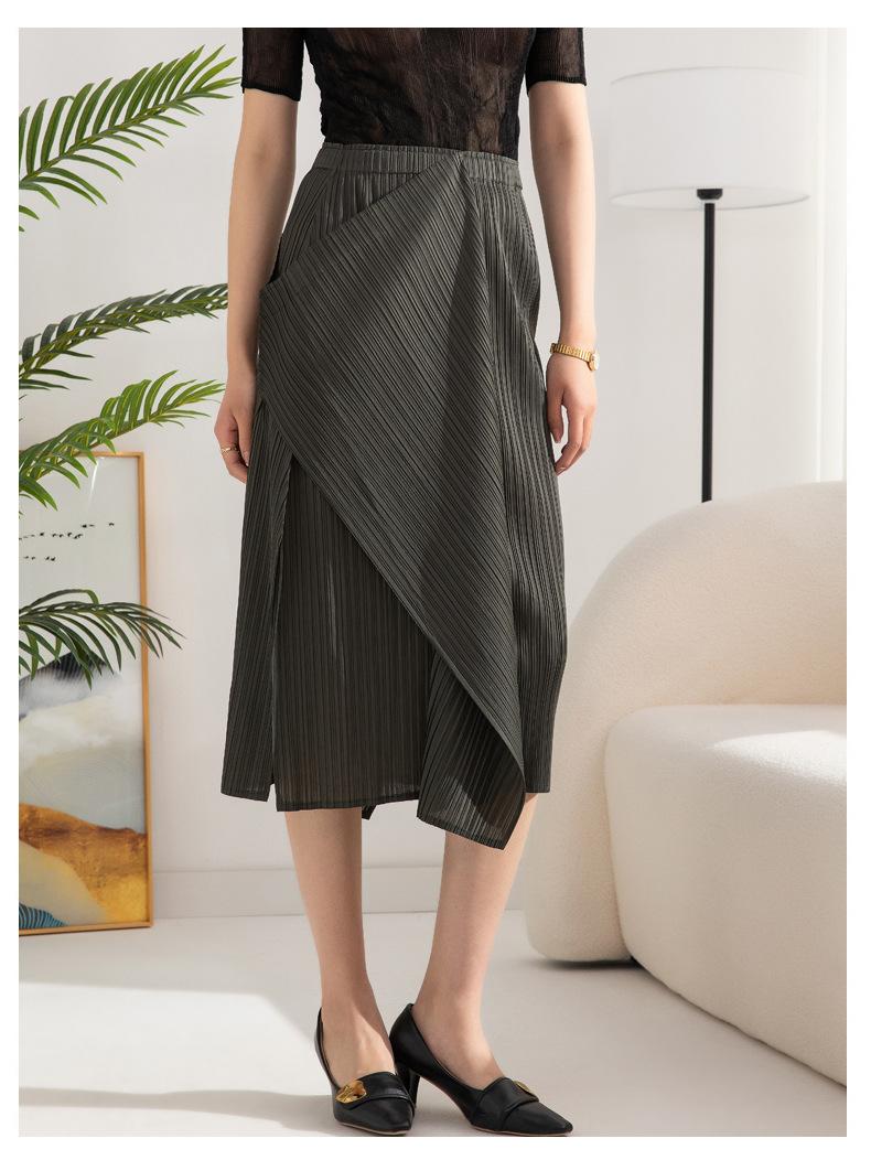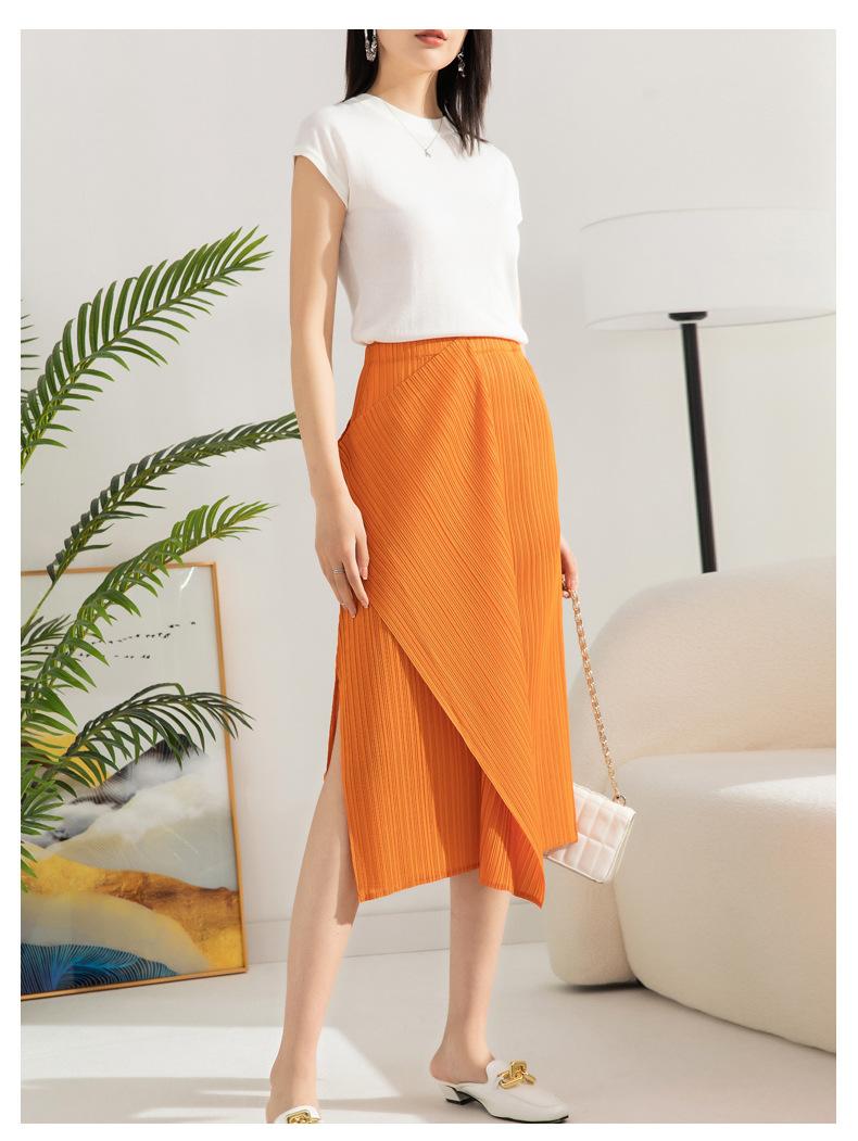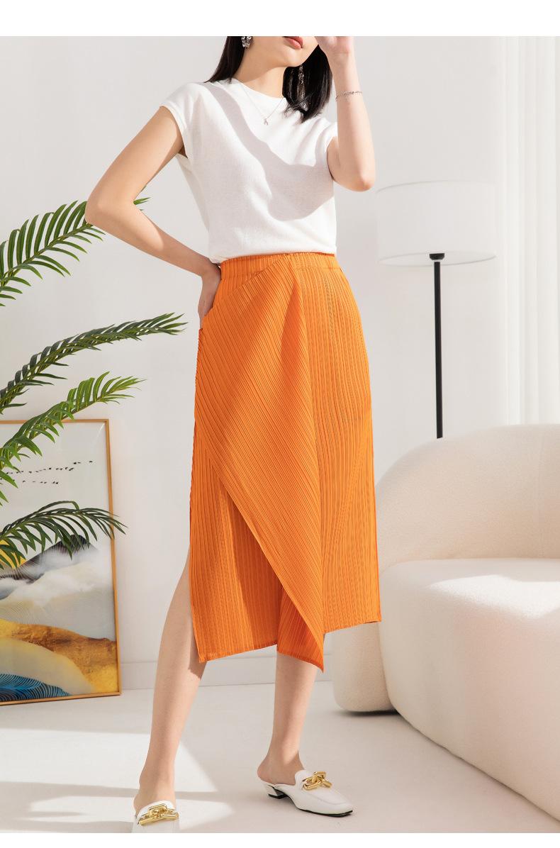 Falda plisada para mujer, primavera y verano 2023, nueva llegada, elegante, a la moda, combinable, con cintura elástica, abertura inclinada y longitud media.