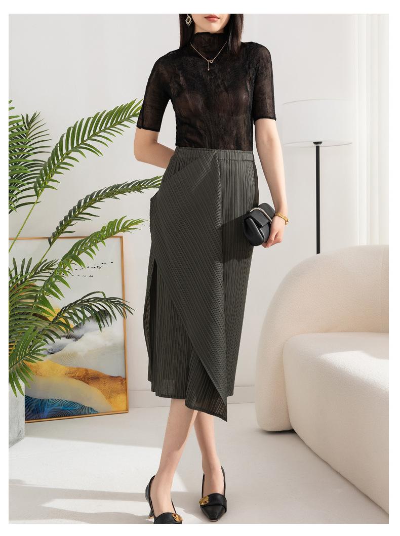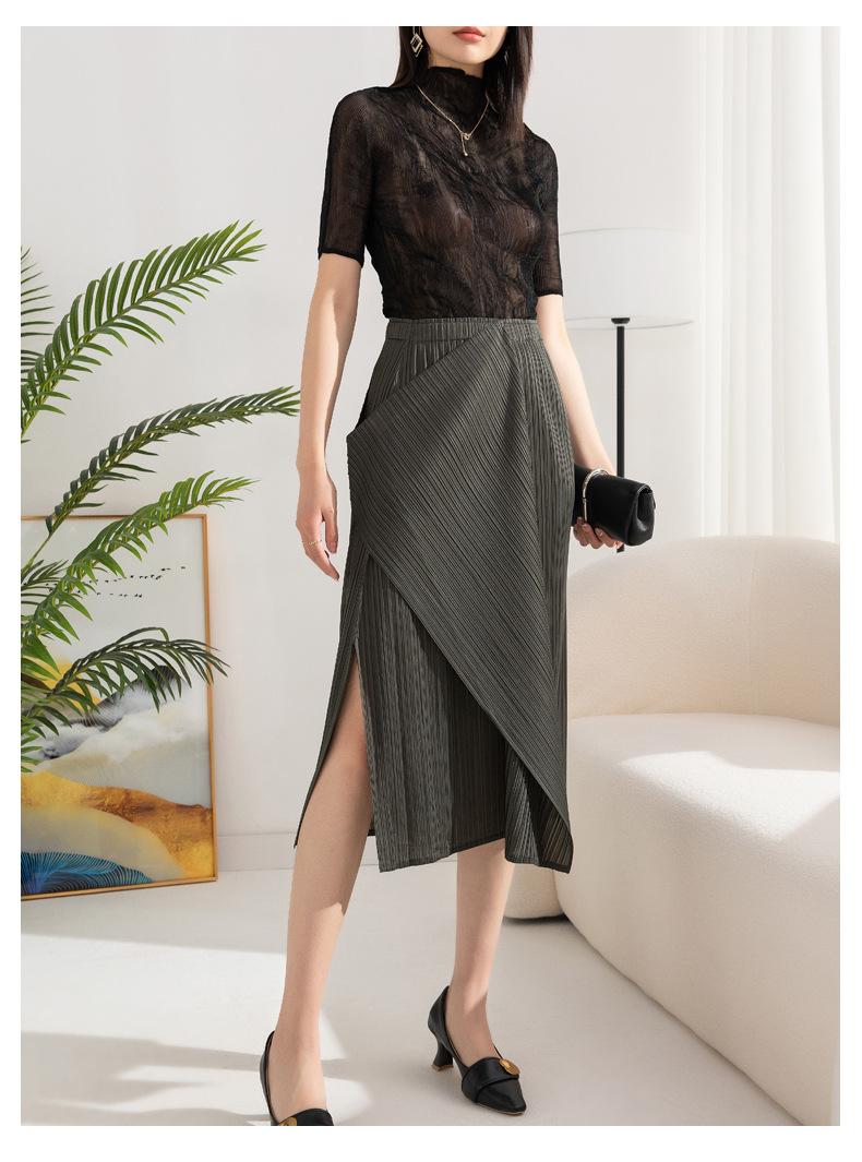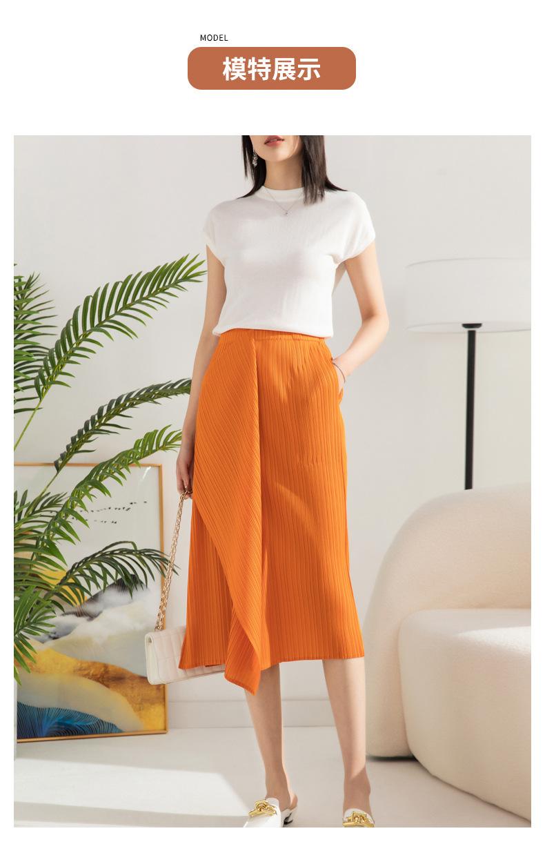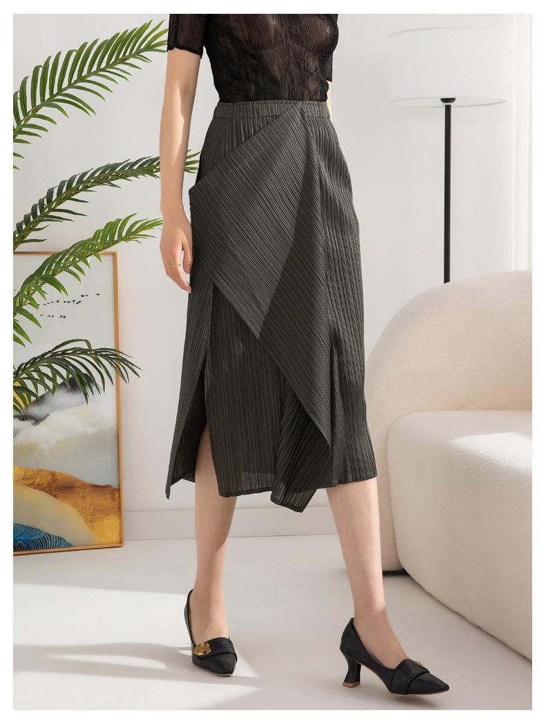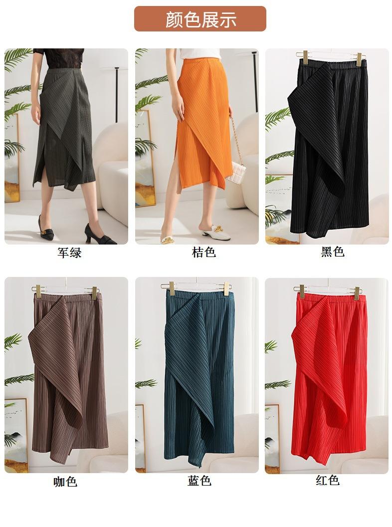 Falda plisada para mujer, primavera y verano 2023, nueva llegada, elegante, a la moda, combinable, con cintura elástica, abertura inclinada y longitud media.