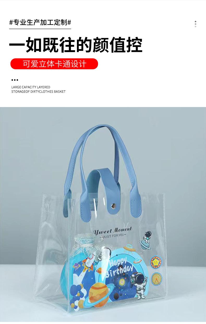 Bolso de mano de PVC transparente grueso de dibujos animados de colores, bolsa de regalo creativa para la temporada de graduación, bolsa para empaquetar dulces con bolsa de regalo de mano