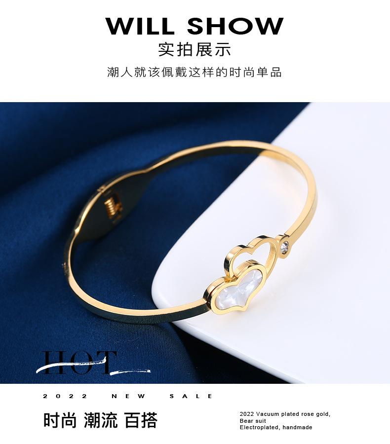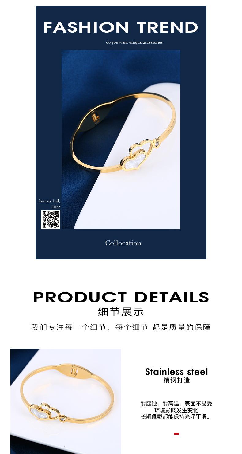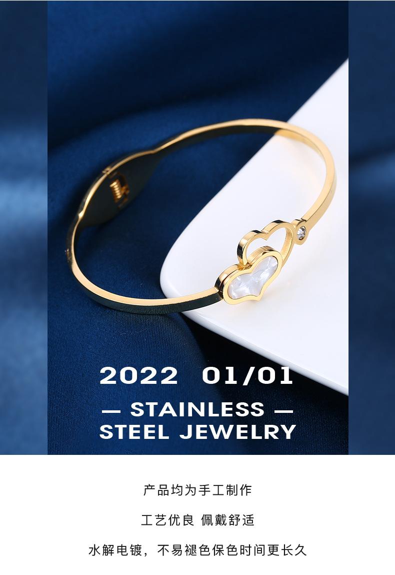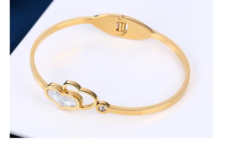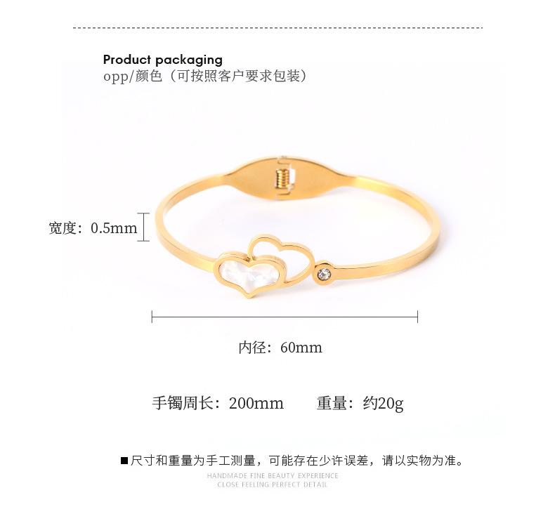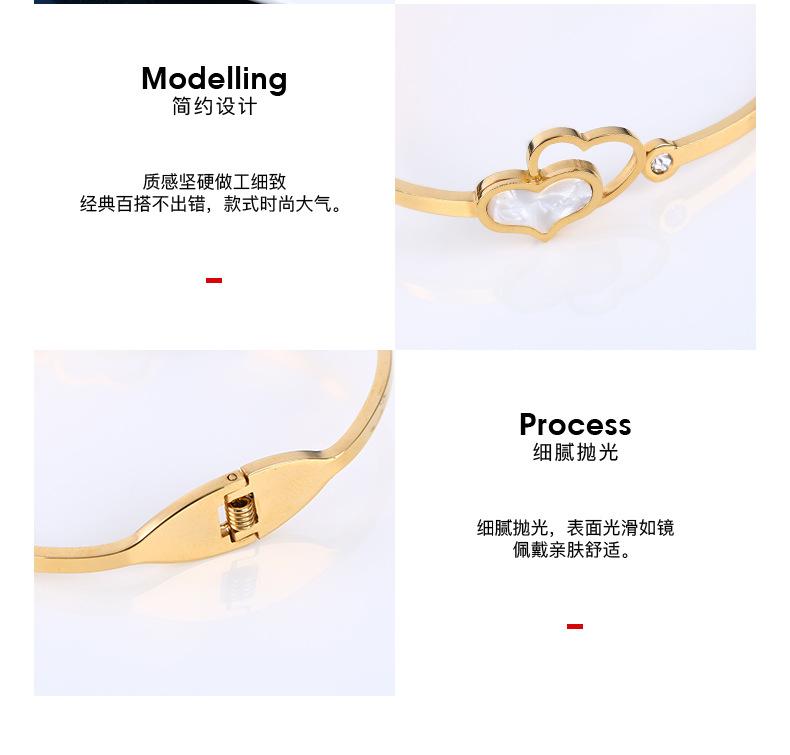 Elegante pulsera francesa de acero de titanio con hebilla de amor y circonita para mujer, doble corazón, concha blanca, pulsera de acero inoxidable, pulsera simple y versátil