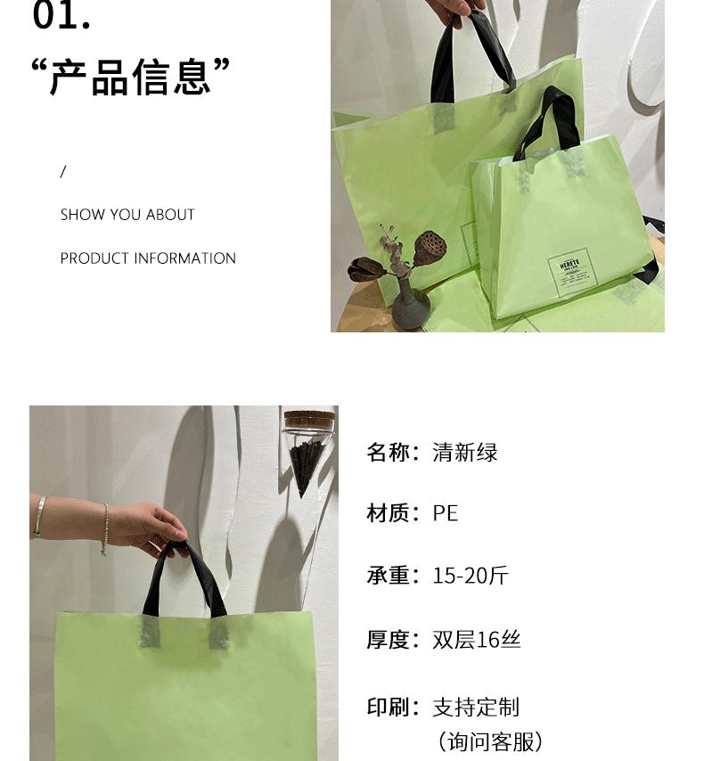Color: Fresh Green; Size: Small size 28*28 * 9cm; Handle size (length * width):50 pcs/bag, Color: Fresh Green;...
