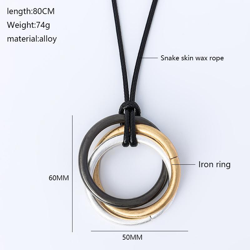Oferta transfronteriza de Amazon: collar nuevo, estilo europeo y americano, con anillo cepillado retro, cadena de lana de alta gama, collar largo para mujer.