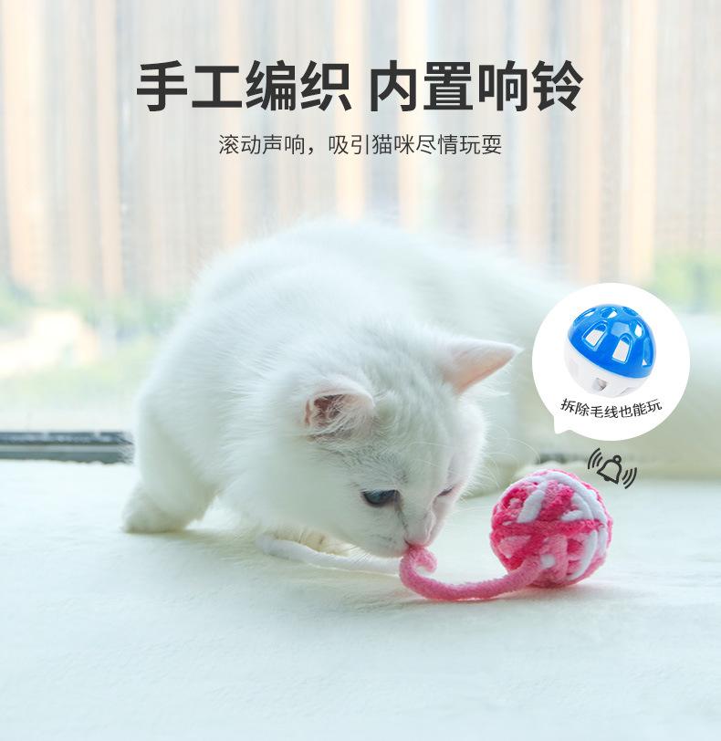 Productos para mascotas transfronterizos de Amazon: Juguete para gatos con mordedura de autodescarga, pelota, campana, bola de lana de color.