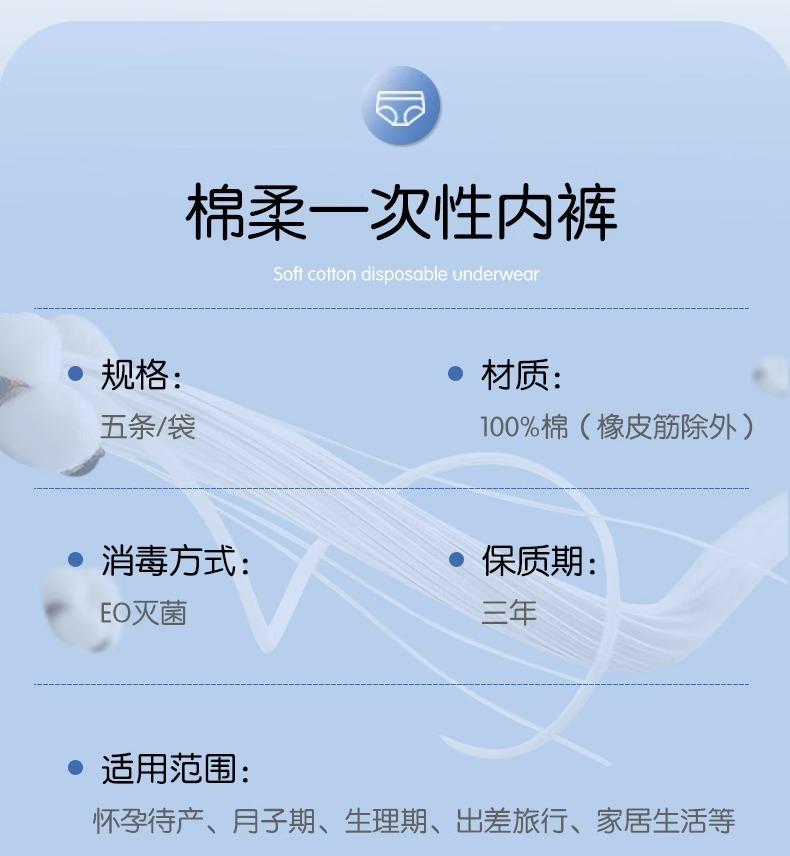 Ropa interior desechable de poliéster-algodón para mujer para maternidad, viajes y hotel, calzones esterilizados con EO empaquetados individualmente, sin ropa interior diaria desechable