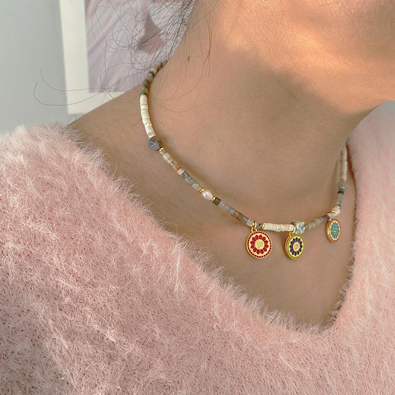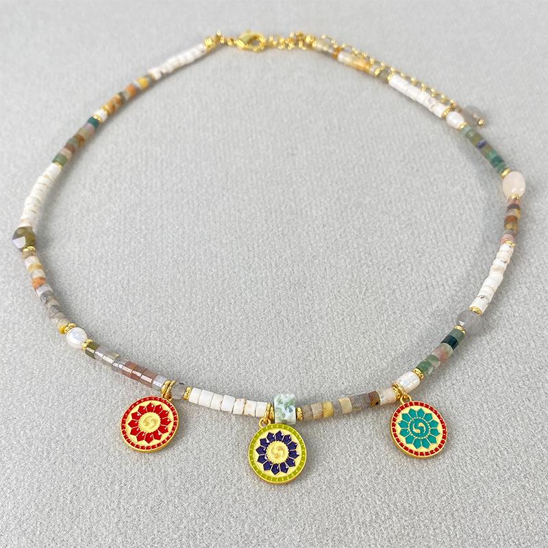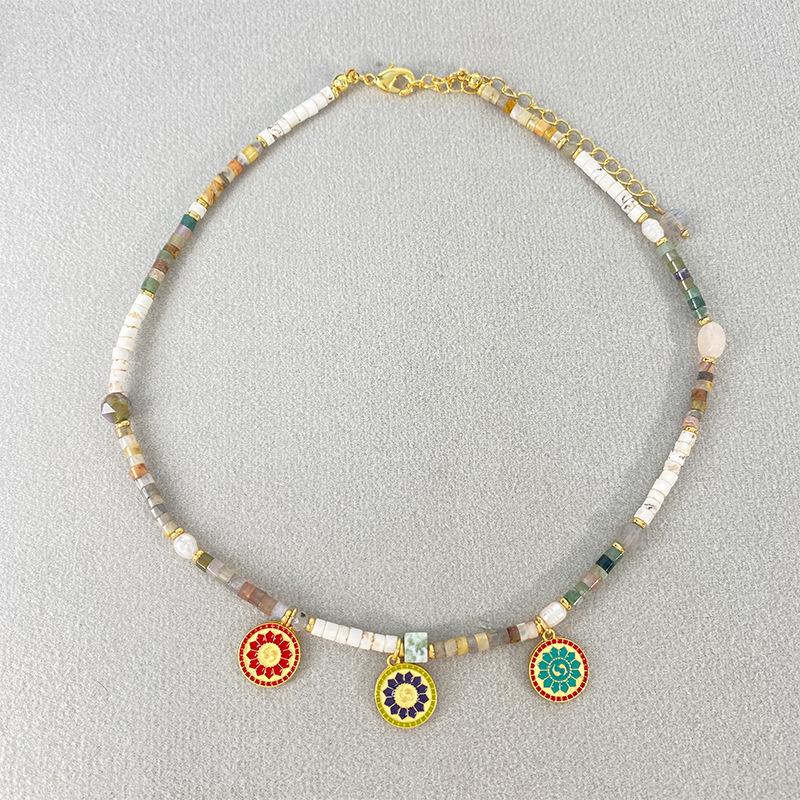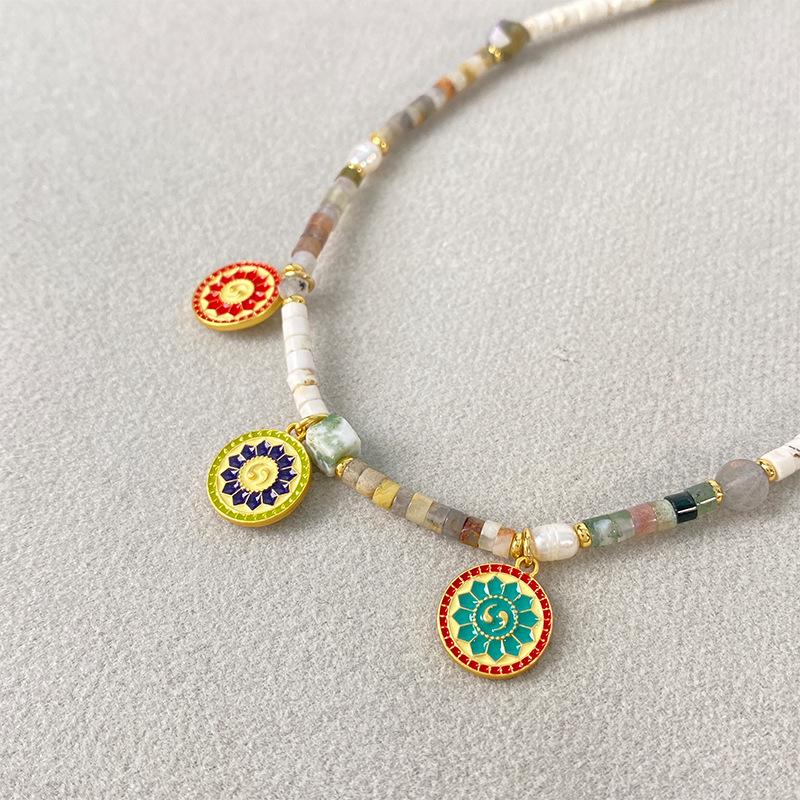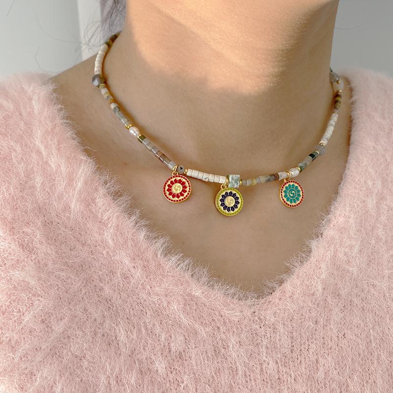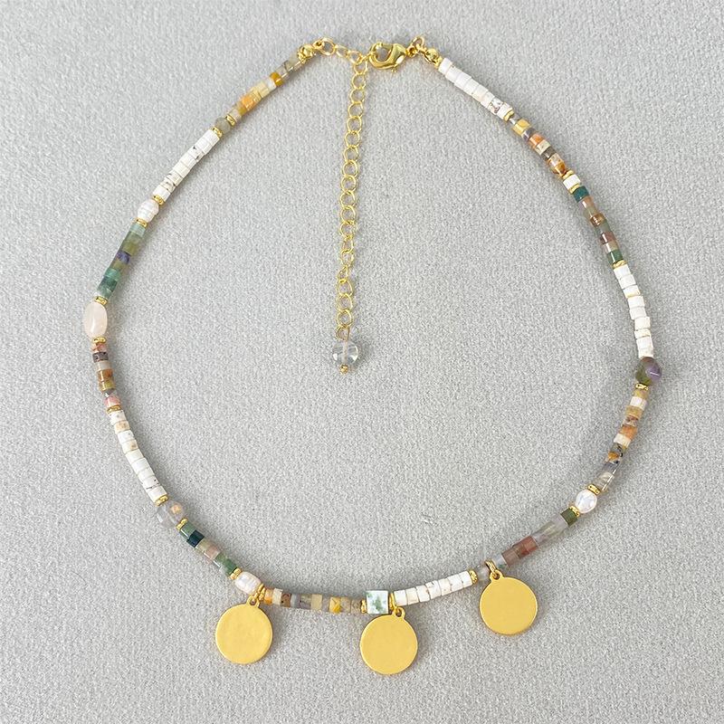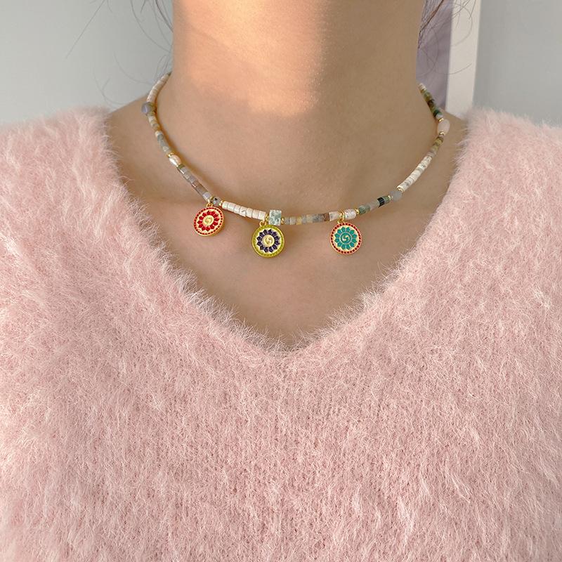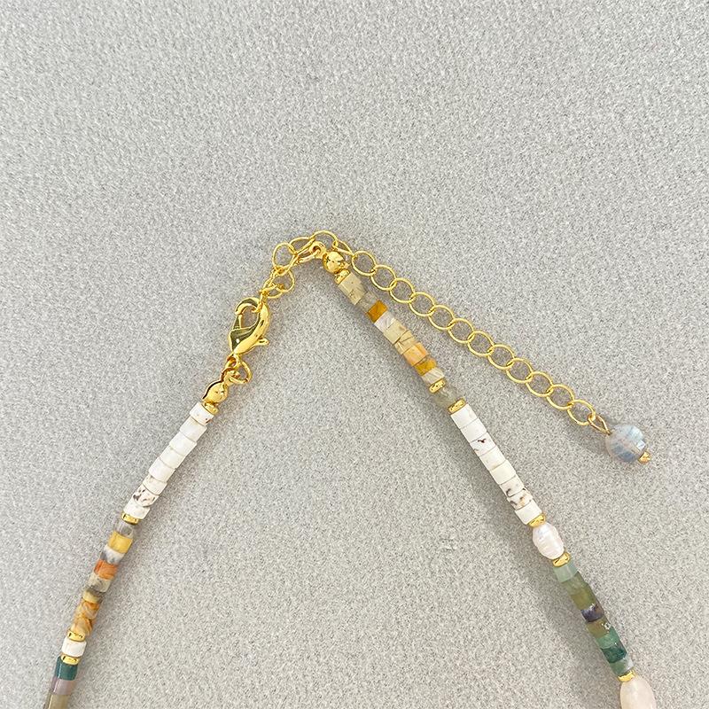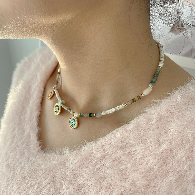 Collar de cuentas de piedra natural coloridas vintage estilo europeo y americano para mujer, ligero, lujoso, con decoración de nicho, collar de clavícula superpuesto para mujer