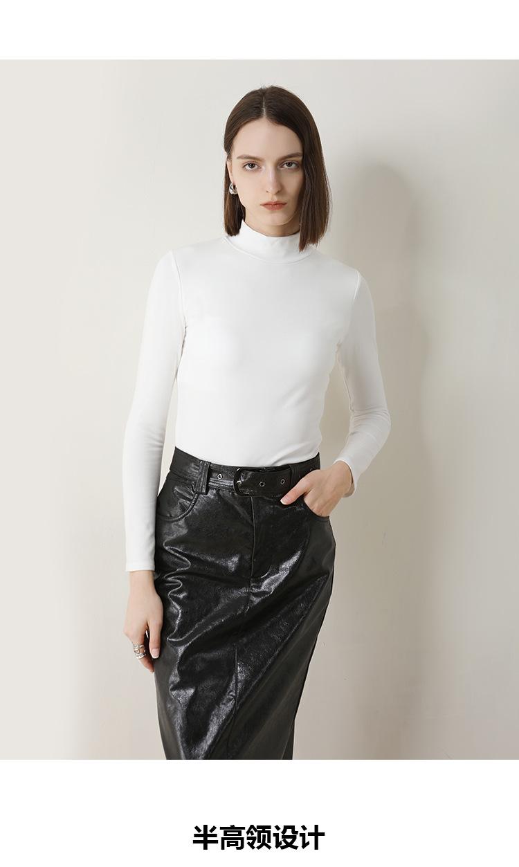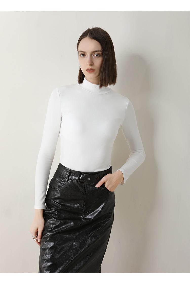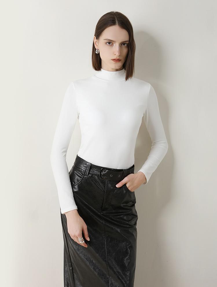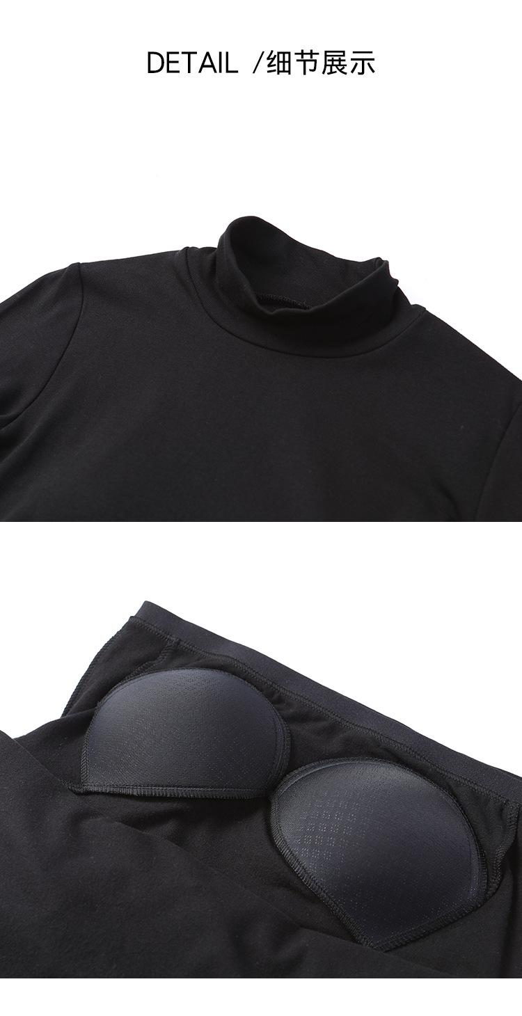 CANVAUS playera interior de cuello alto medio cepillada cálida para mujer, negra y blanca, gruesa, ajustada, de manga larga, con almohadilla en el pecho