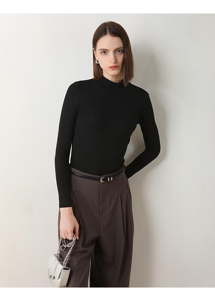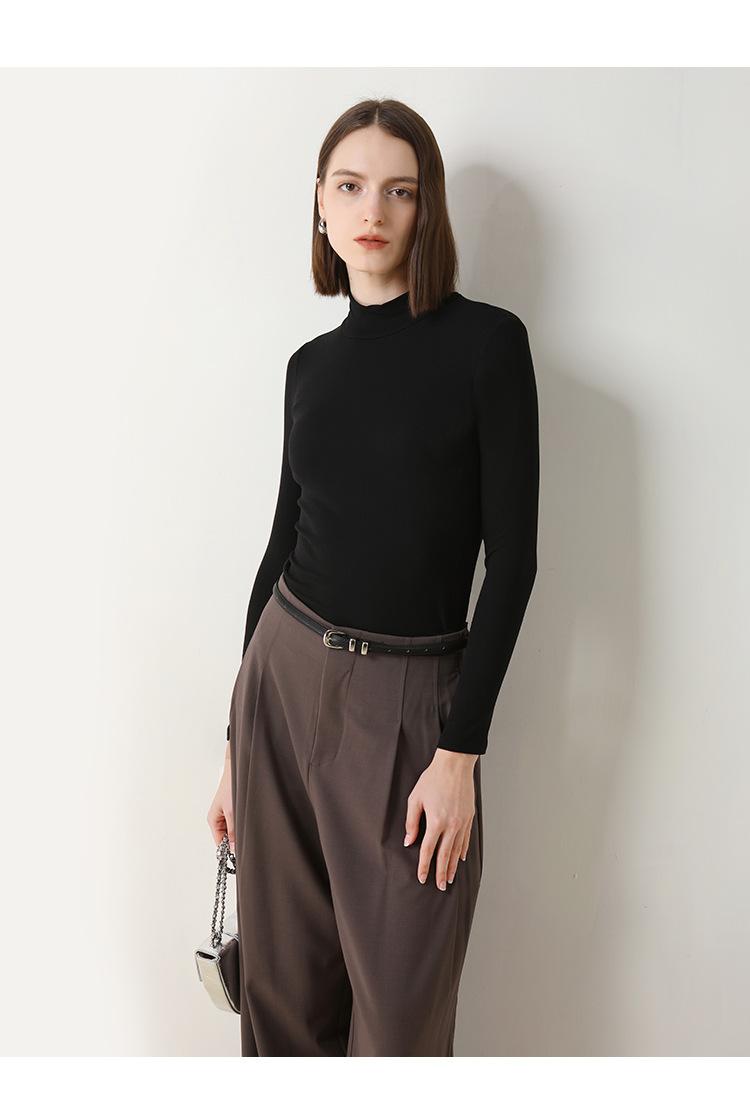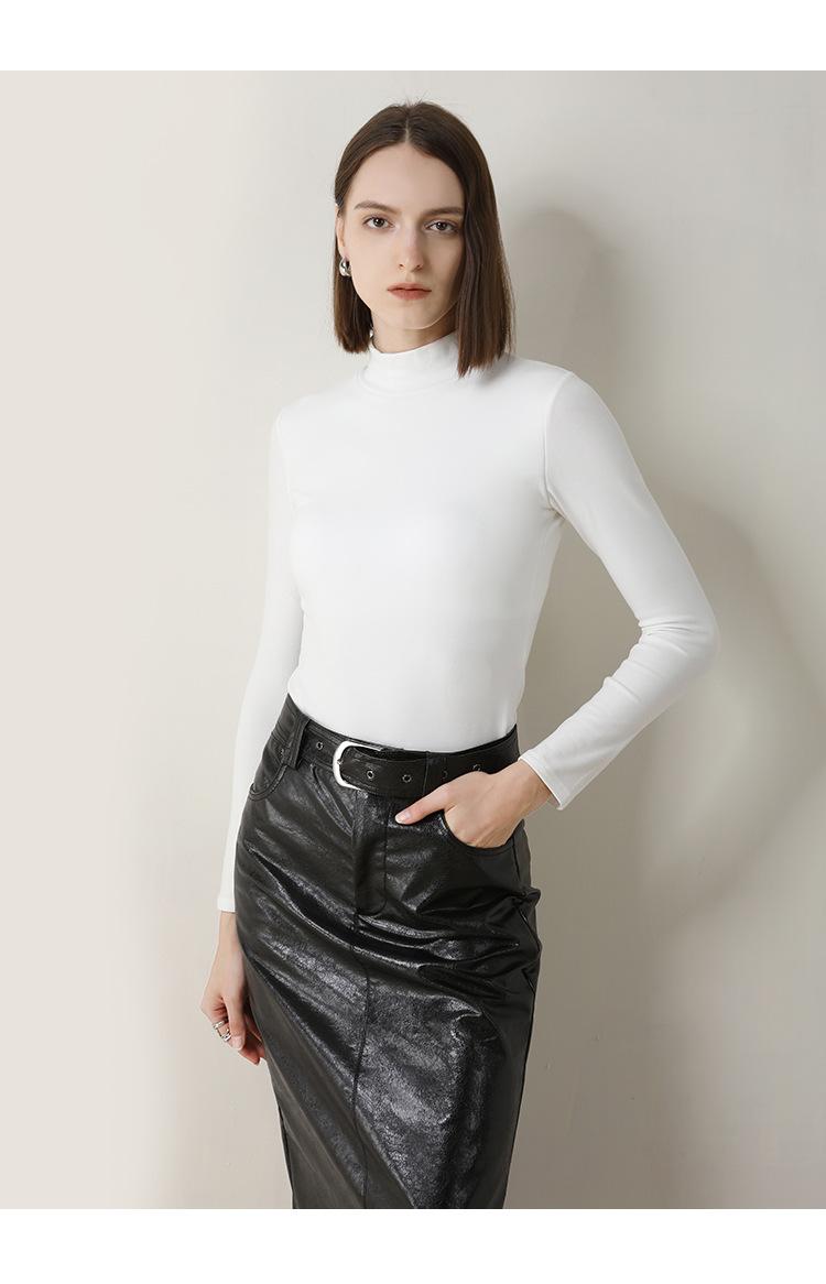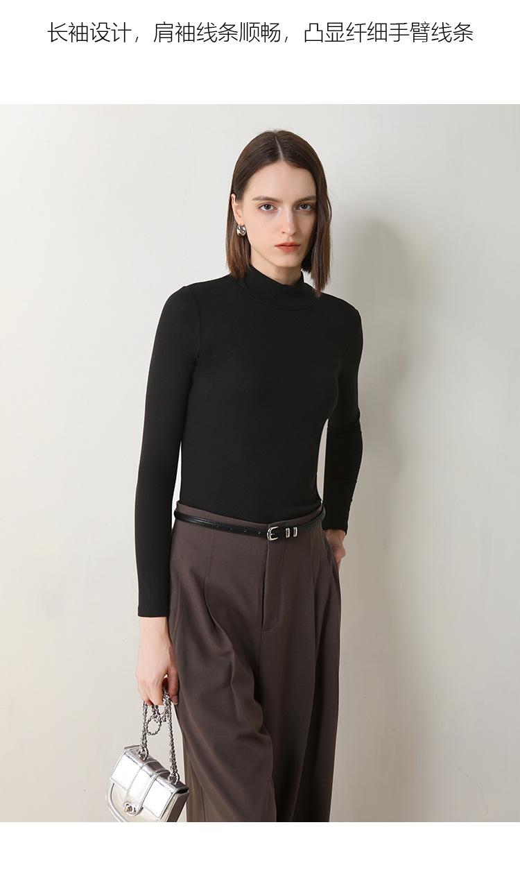CANVAUS playera interior de cuello alto medio cepillada cálida para mujer, negra y blanca, gruesa, ajustada, de manga larga, con almohadilla en el pecho