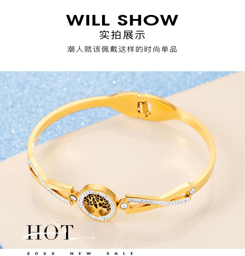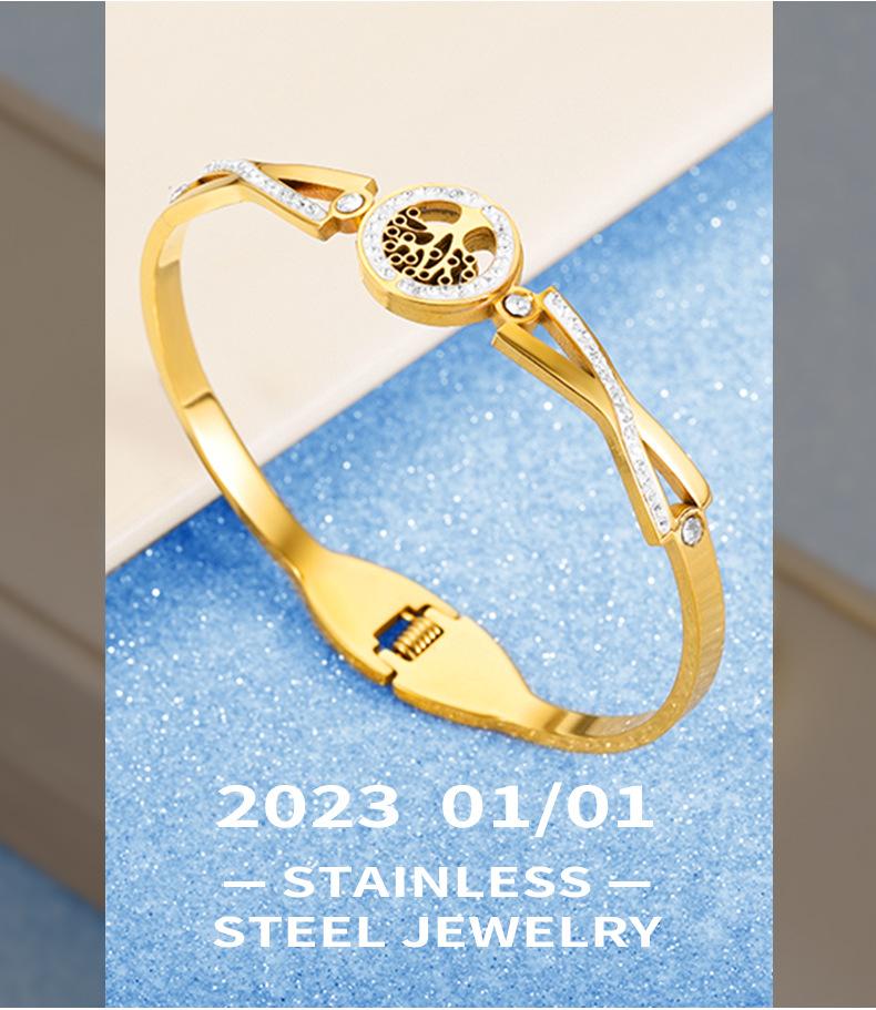 Pulsera europea y americana estilo ins círculo con incrustaciones de diamantes Árbol de la Vida acero inoxidable galvanizado pulsera de circón con símbolo infinito joyería