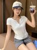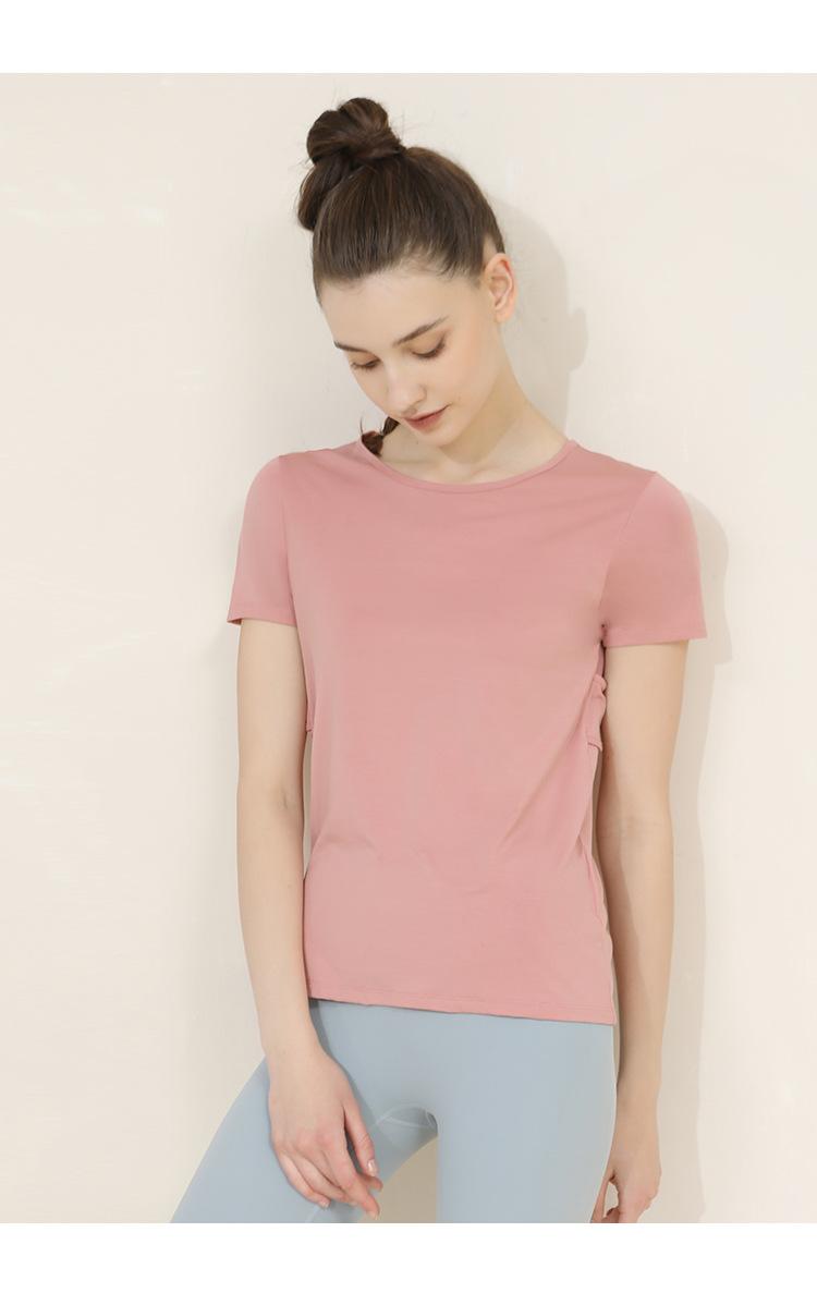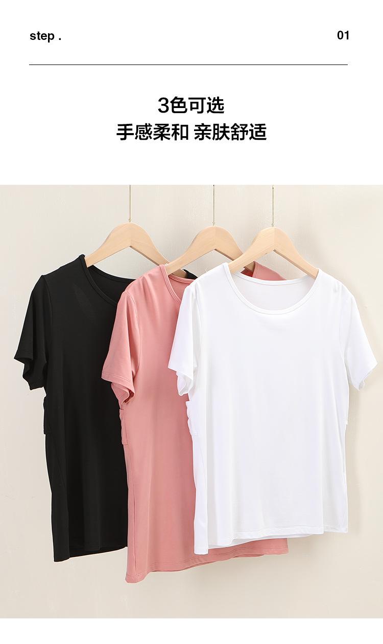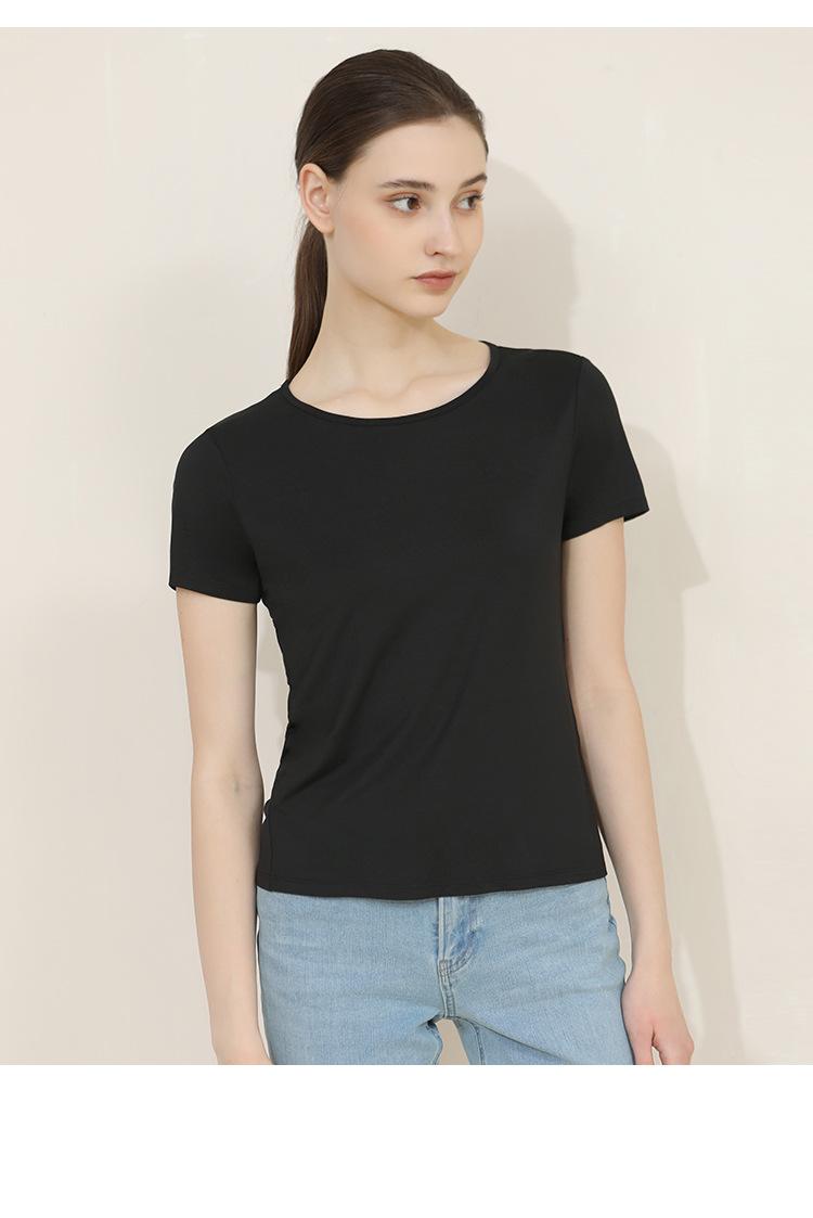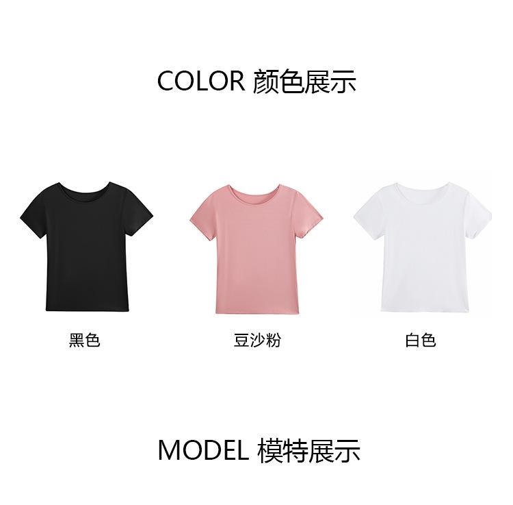 Camiseta de manga corta de verano para mujer, nueva camiseta de cuello redondo modal con diseño de nicho de color liso para mujer, venta al por mayor