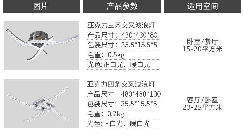 Lámpara de techo de iluminación acrílica transfronteriza de tres o cuatro luces led para sala de estar, dormitorio, lámparas modernas minimalistas creativas