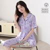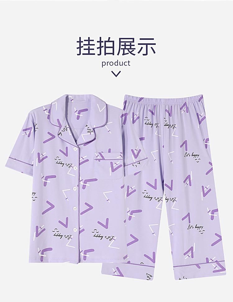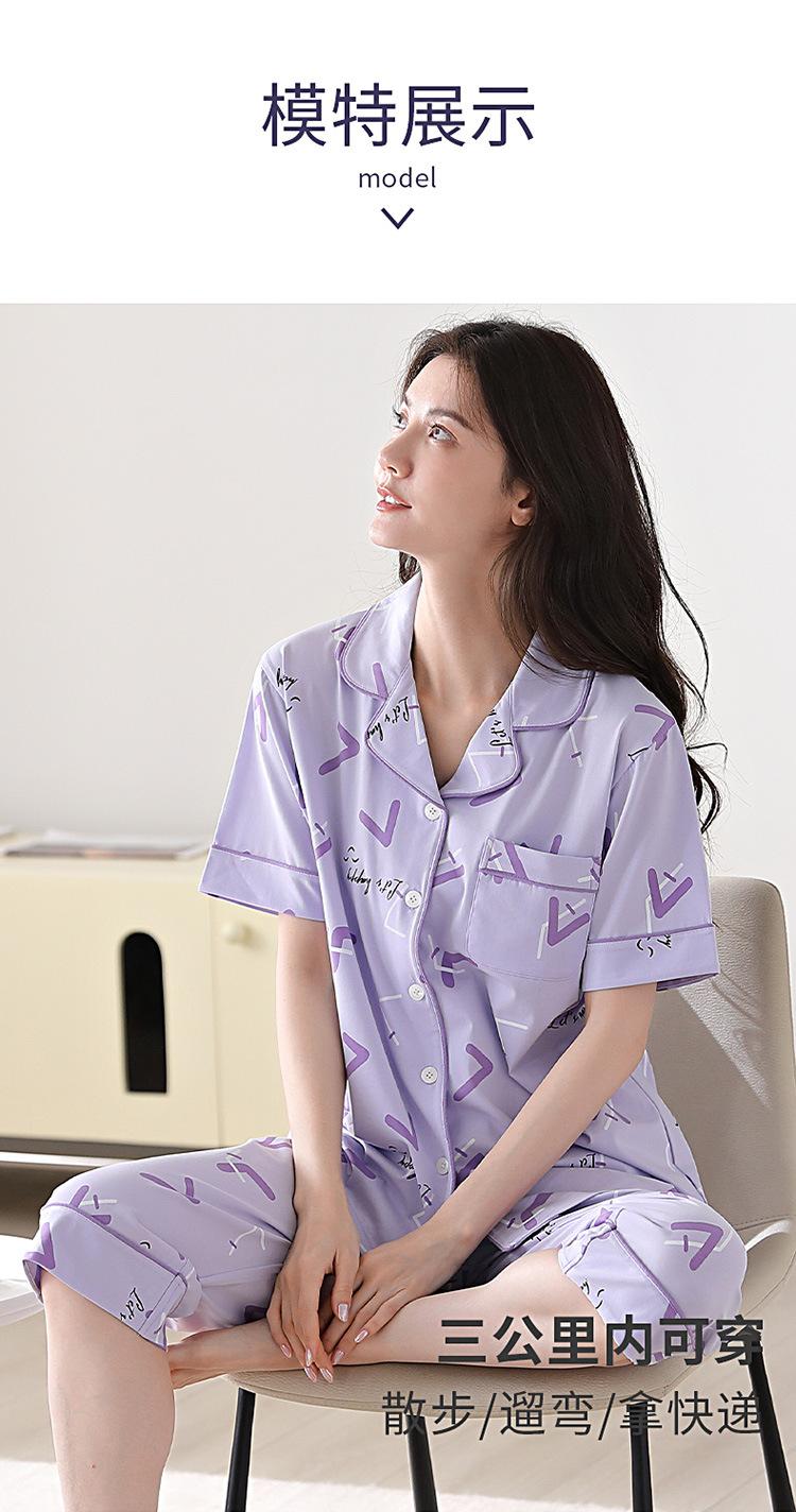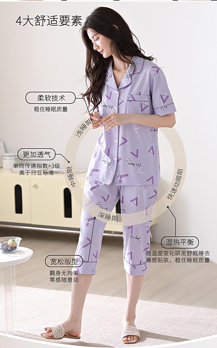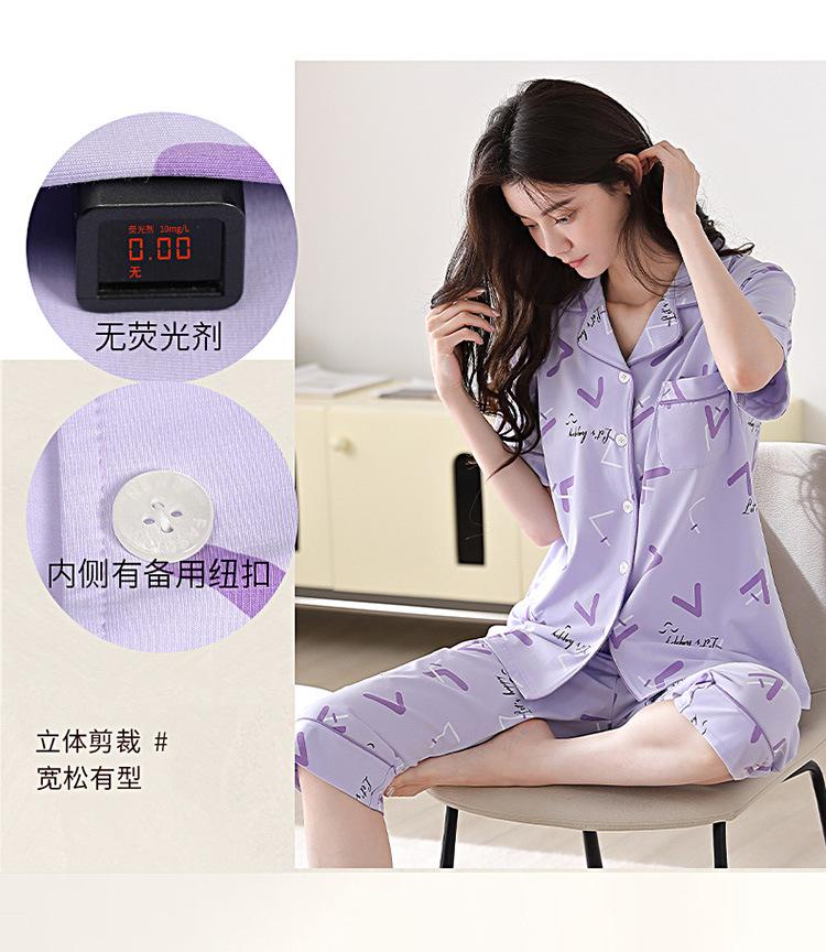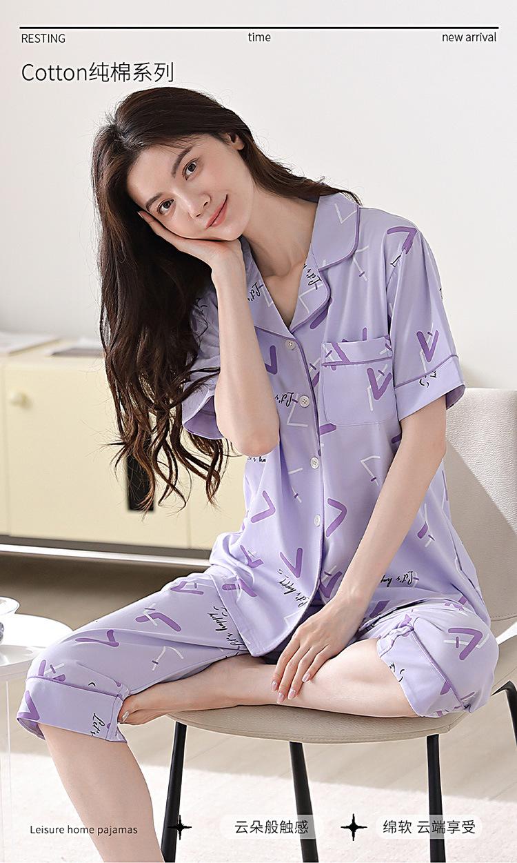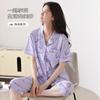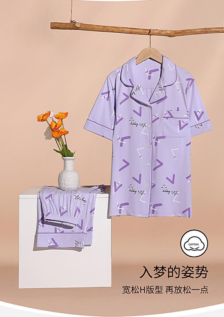 Pijama de verano para mujer, de algodón, sencillo, holgado, de manga corta, con solapa, para uso exterior, para el hogar, conjunto de dos piezas