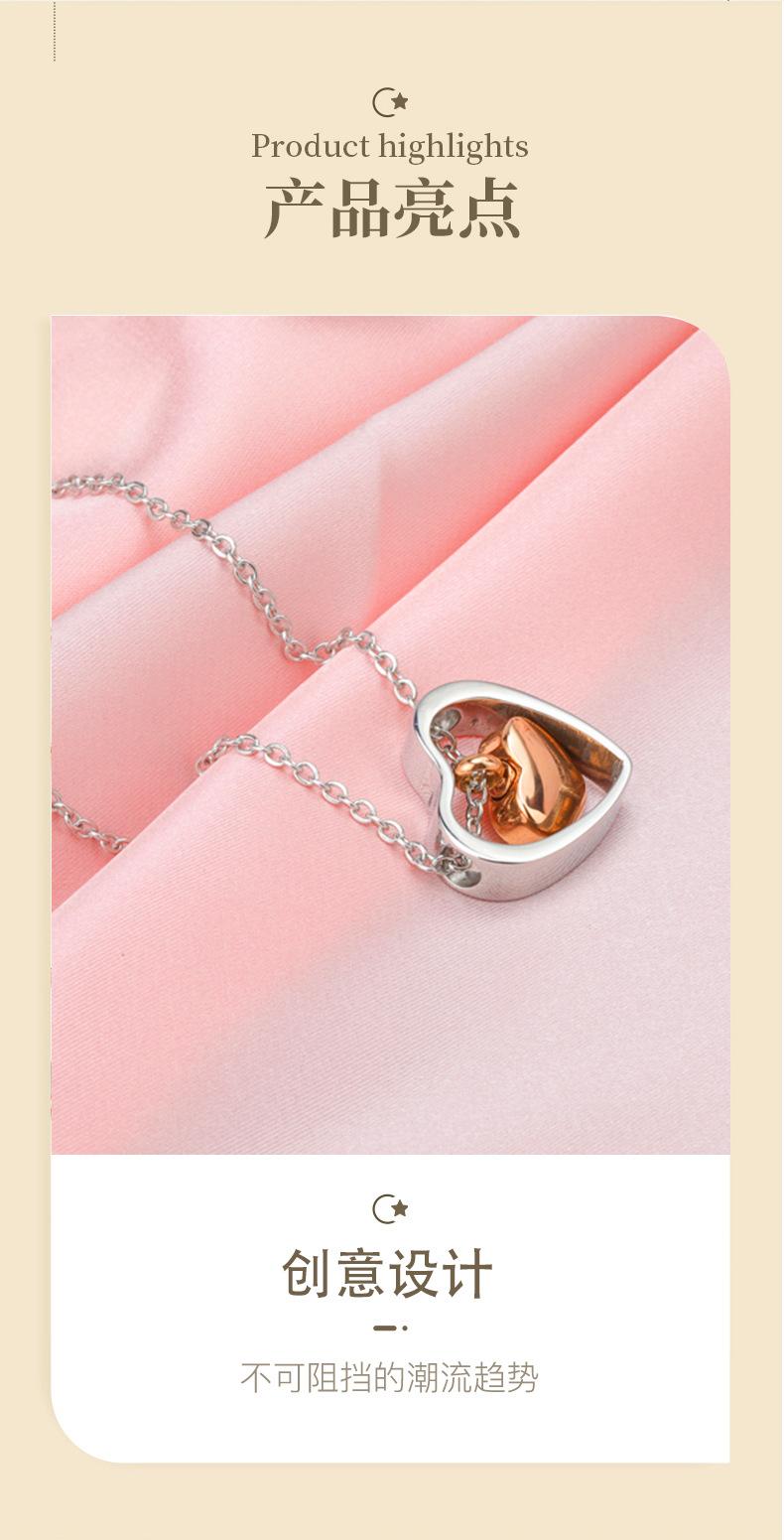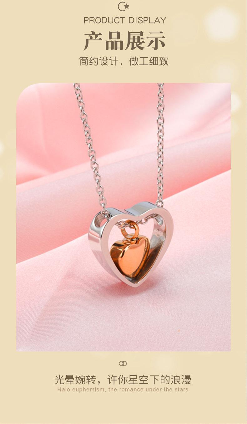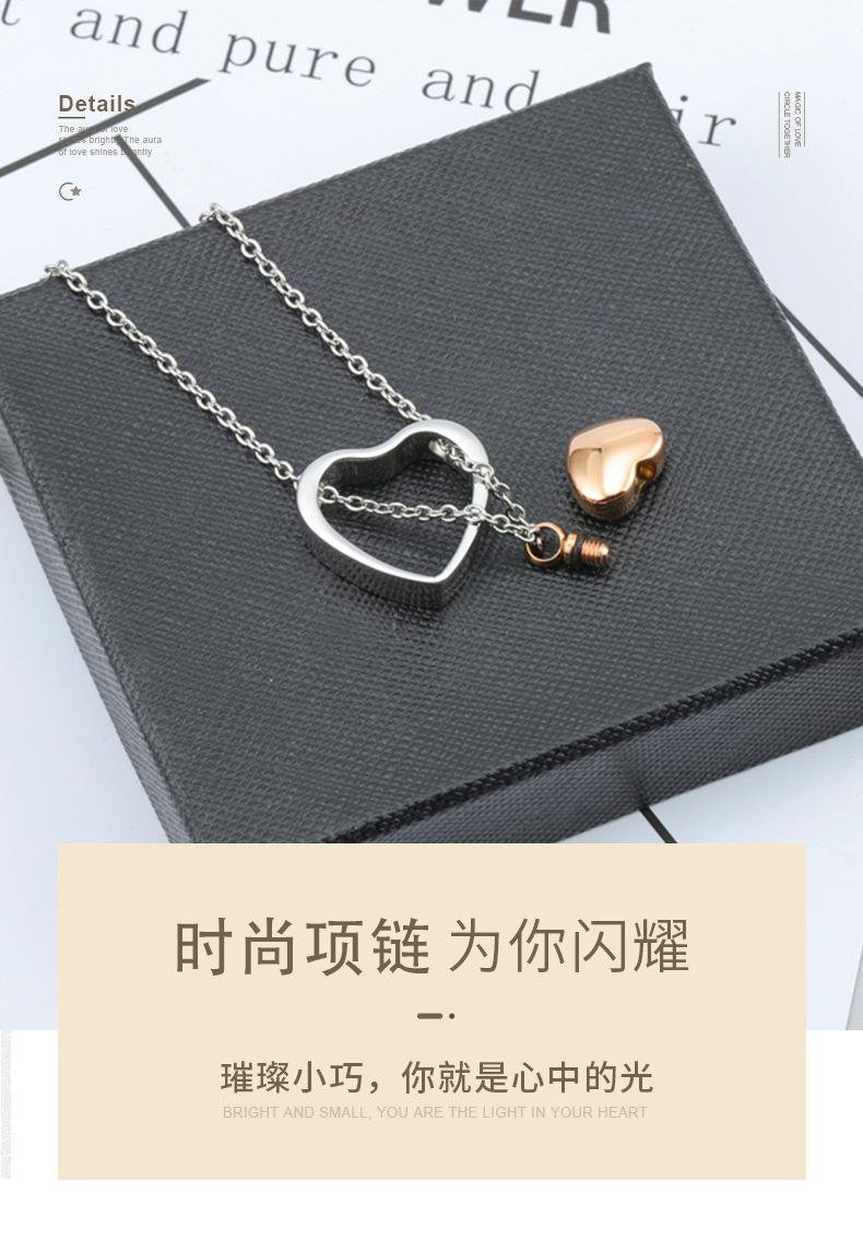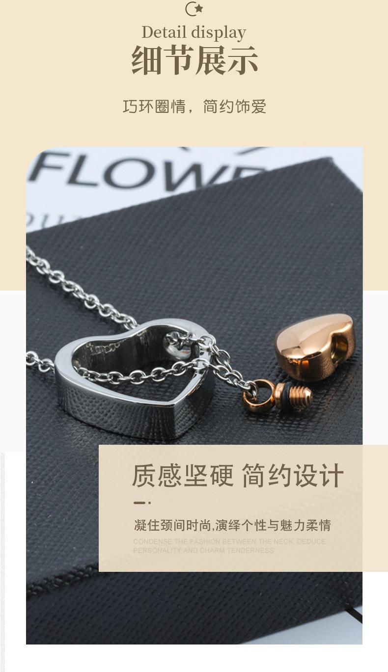Collar de acero de titanio para mujer con diseño de ataúd cinerario para mascotas personalizado con doble corazón abierto de Amazon transfronterizo
