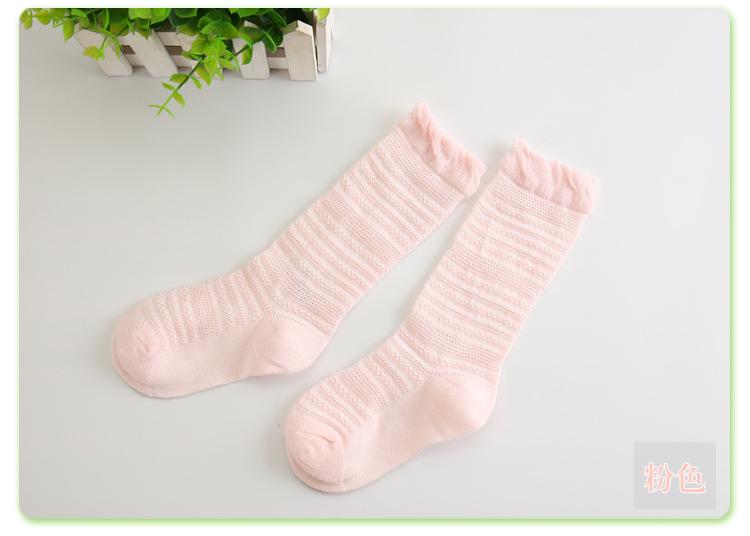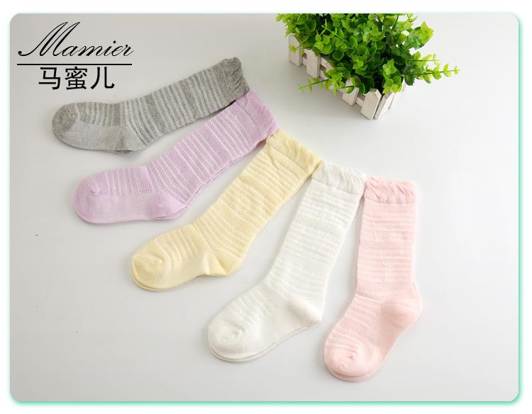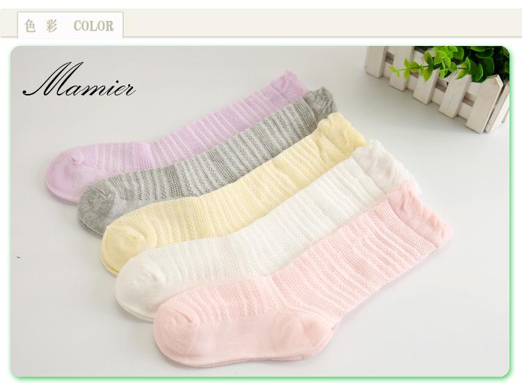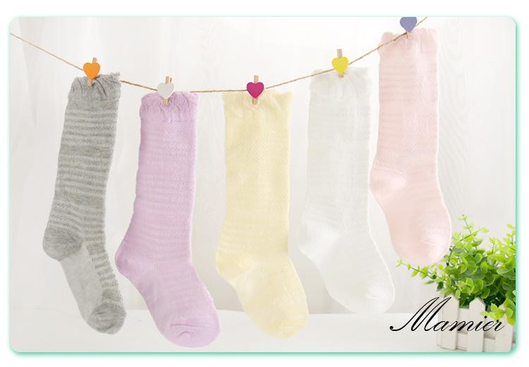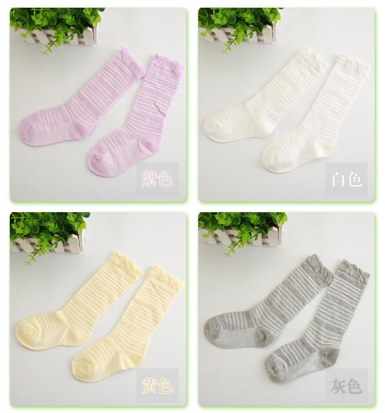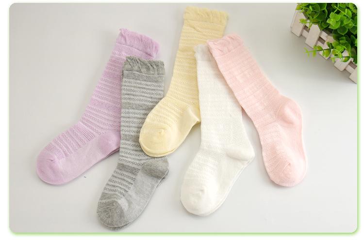 Calcetines de bebé transpirables de malla de algodón de primavera al por mayor de fábrica, calcetines casuales para niños con borde de burbuja, calcetines a rayas de media pantorrilla