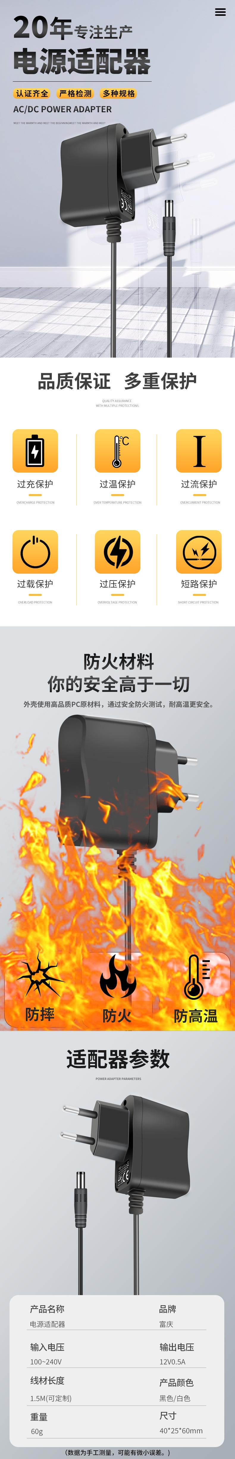 Adaptador de corriente personalizado de 12 V y 0,5 A con certificación CE/GS y normativa europea. Adaptador de corriente para enrutador de luz LED.