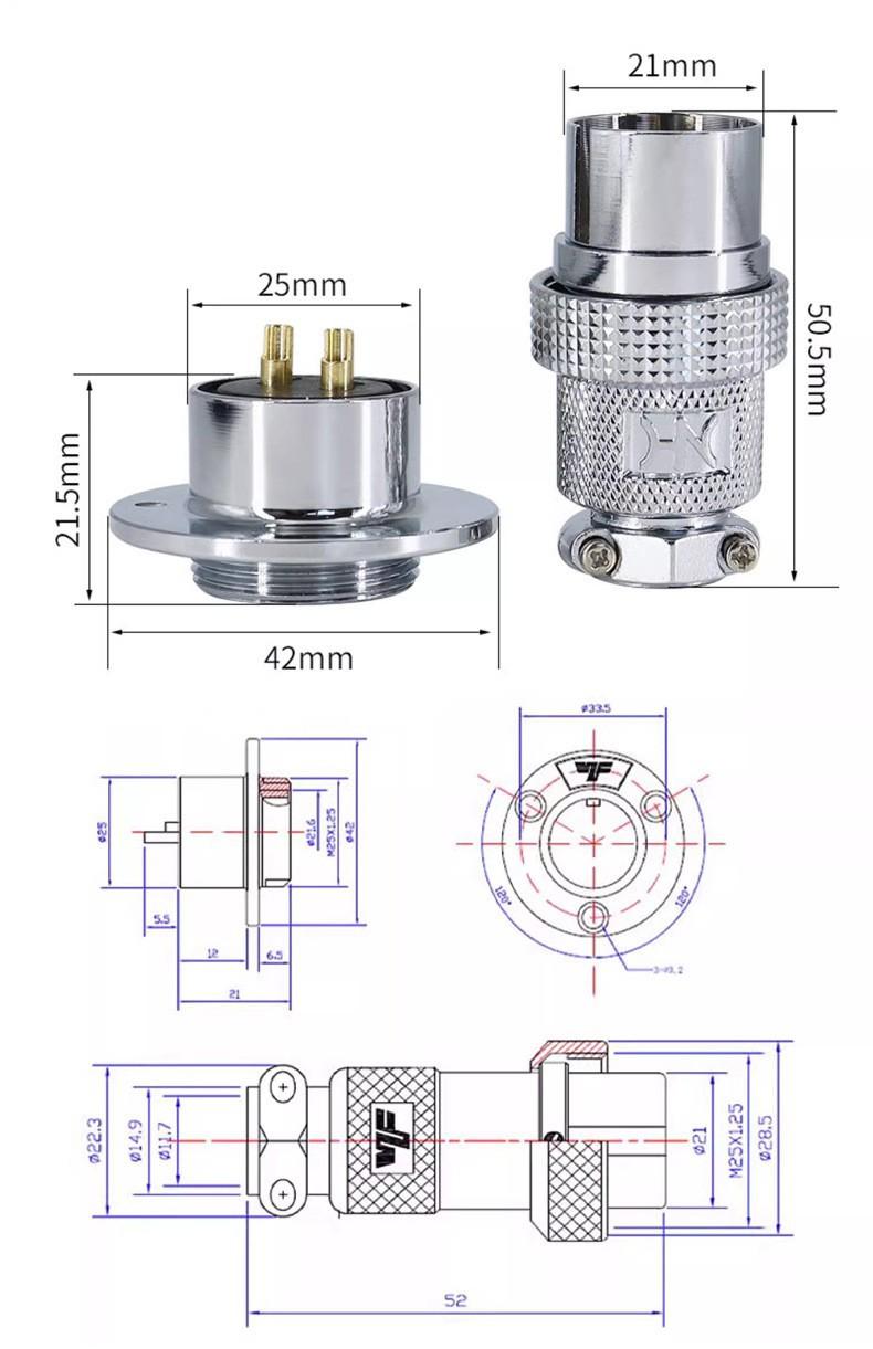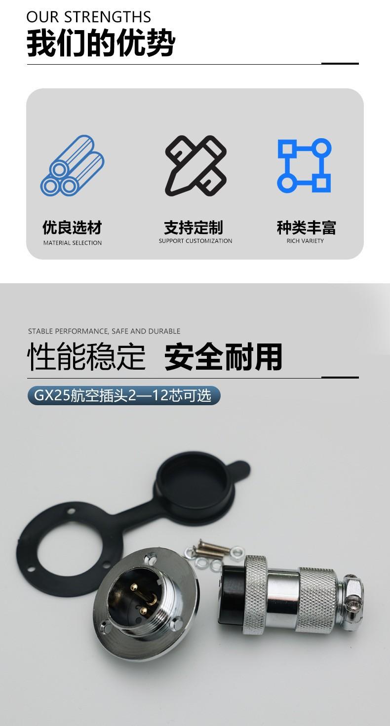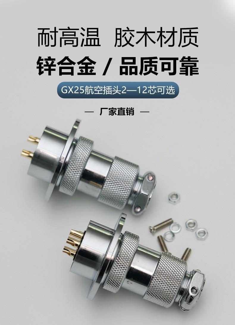 Conector de Pin de Cobre Sólido Gx25 Enchufe de Aviación de Inserción Venta al por Mayor Cabezal de Aviación Resistente a Altas Temperaturas Acoplamiento Macho y Hembra Enchufe de Aviación