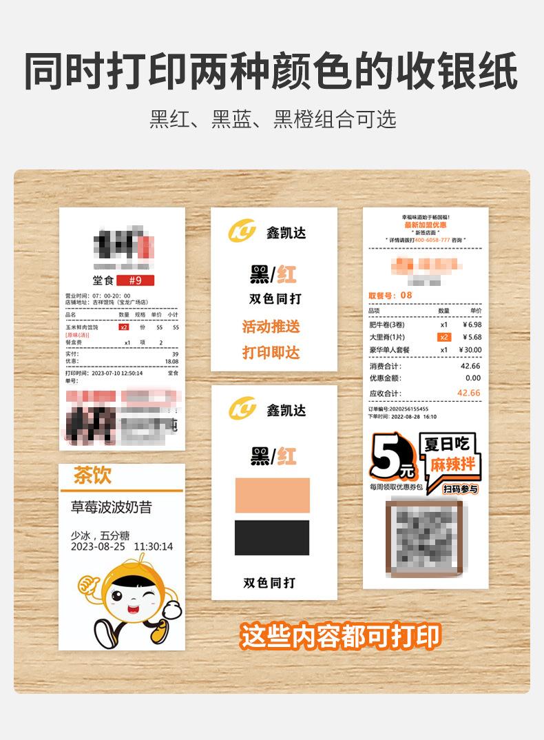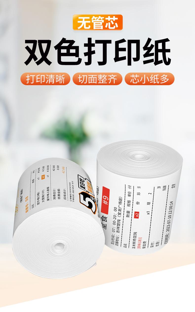 Papel térmico de dos colores para llevar, papel para tickets pequeños, sin troqueles, para catering, supermercado, impresión a color, papel para caja registradora de cocina, venta al por mayor