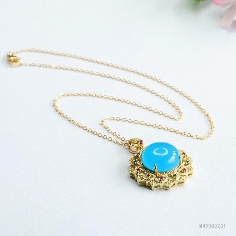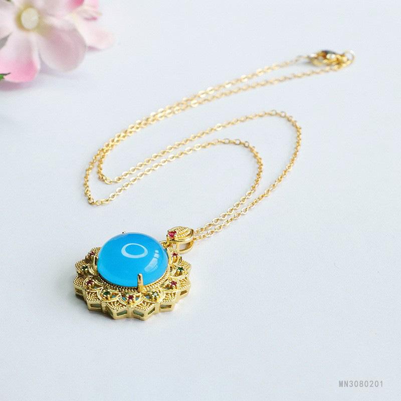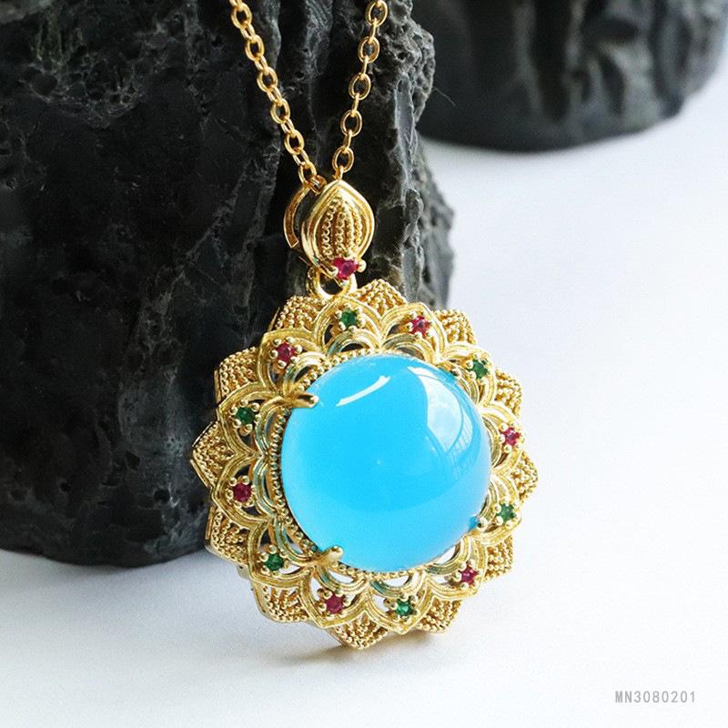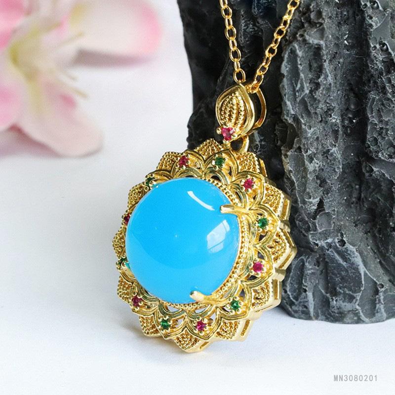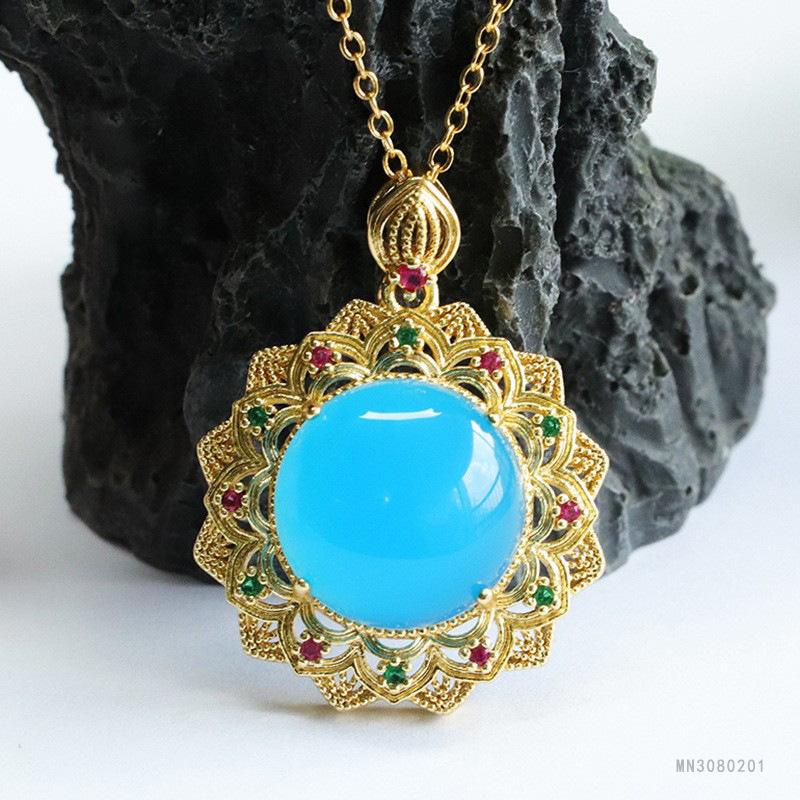 Blue chalcedony sunflower pendant (without chain) mn3080201