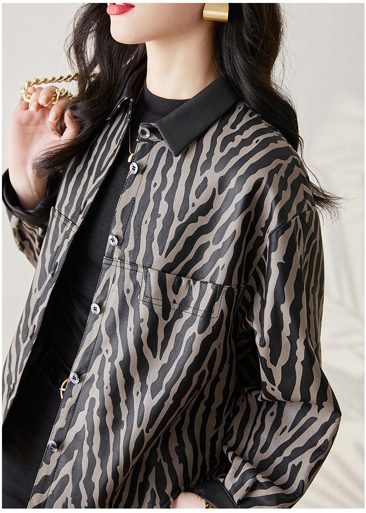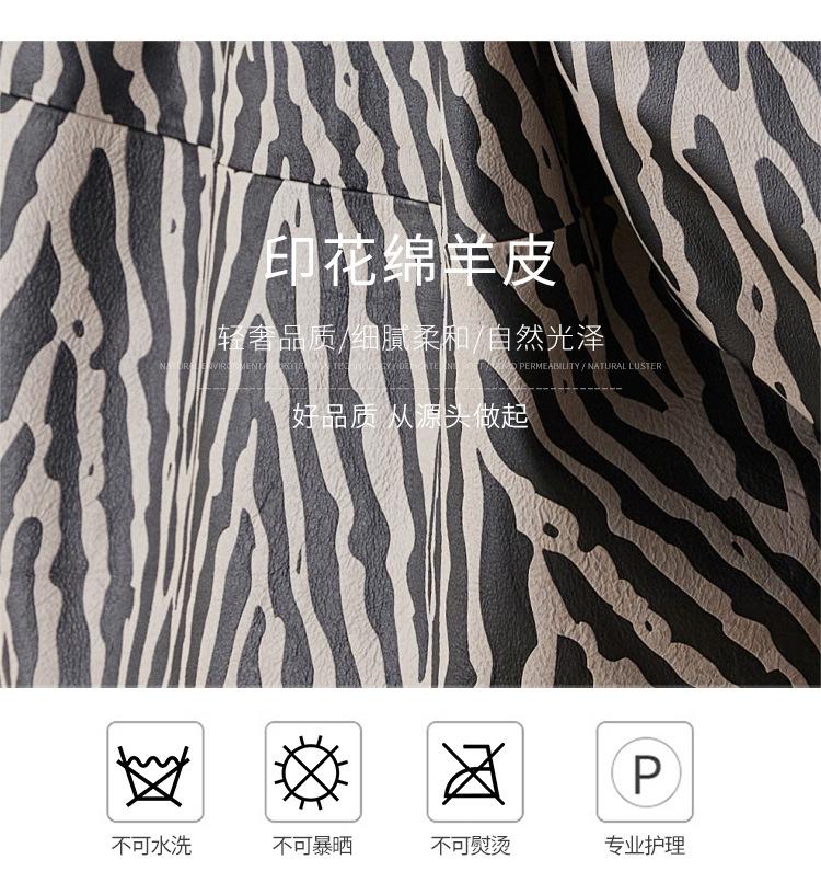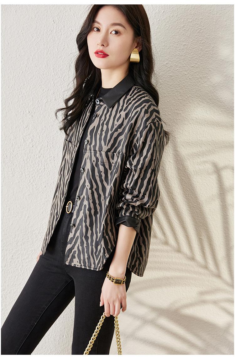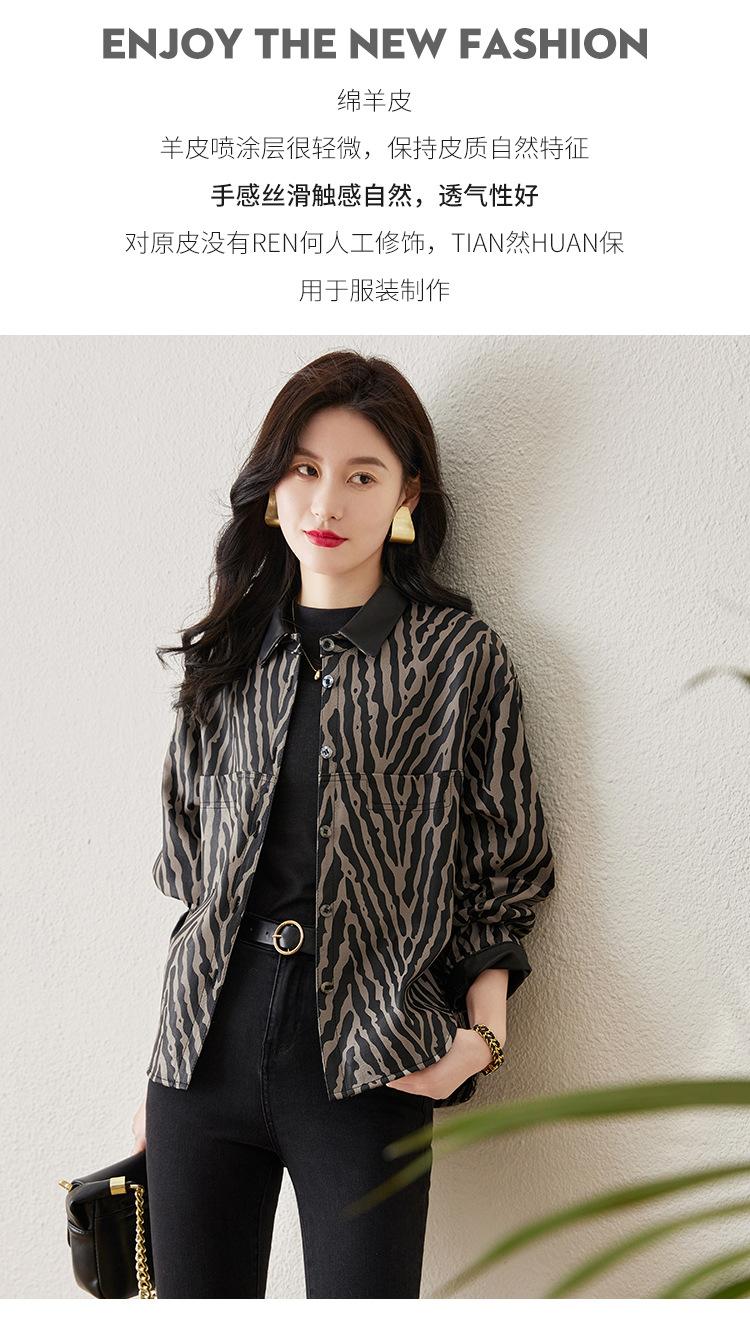 2025 Primavera y Otoño Nueva Chaqueta de Cuero Genuino para Mujer Haining Chaqueta de Piel de Oveja Estampada Corta con Cuello Mao Cárdigan Estilo Chino