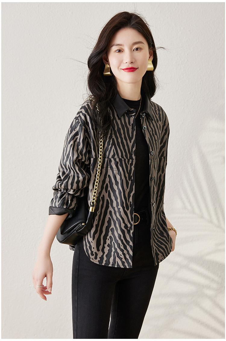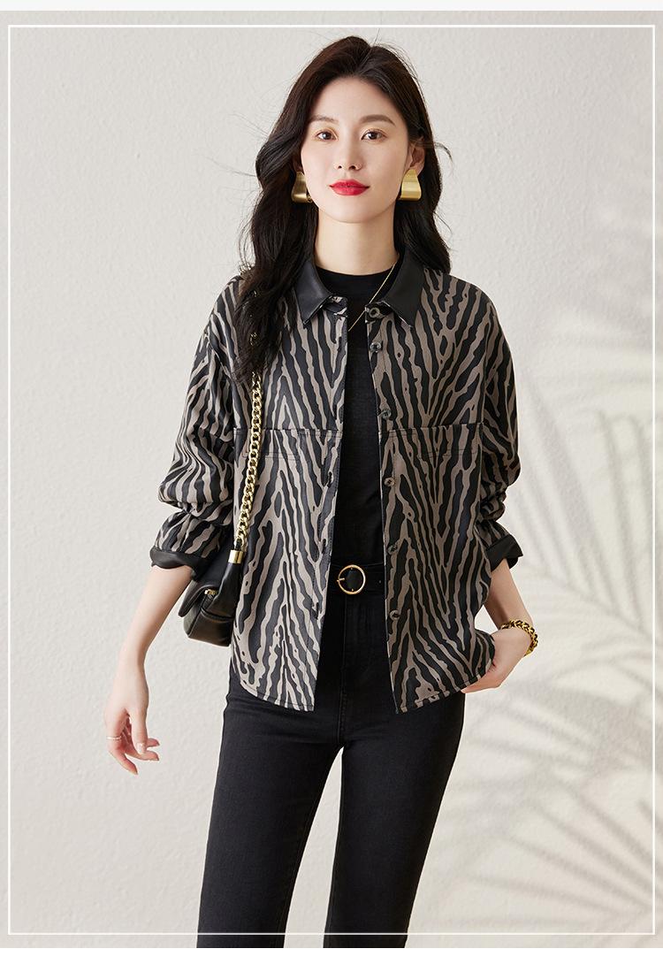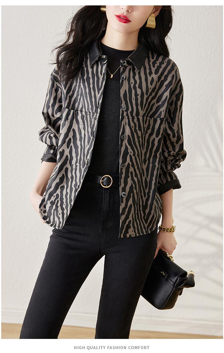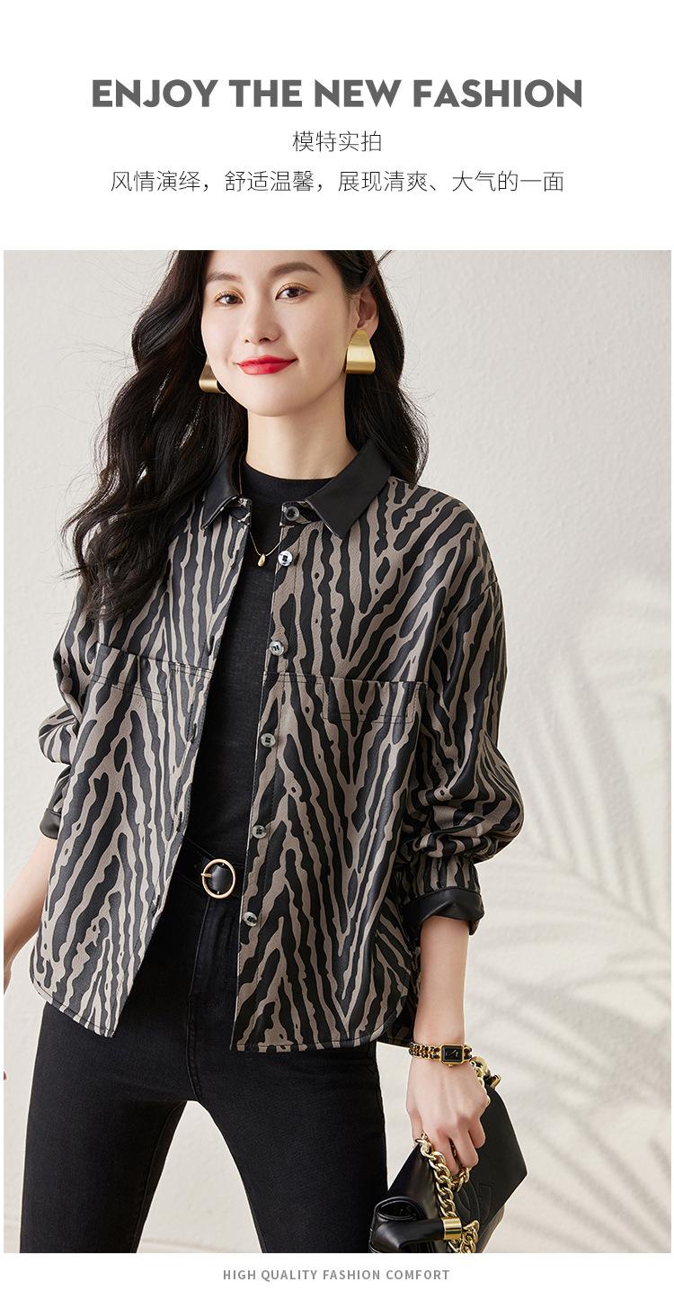 2025 Primavera y Otoño Nueva Chaqueta de Cuero Genuino para Mujer Haining Chaqueta de Piel de Oveja Estampada Corta con Cuello Mao Cárdigan Estilo Chino
