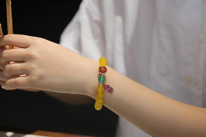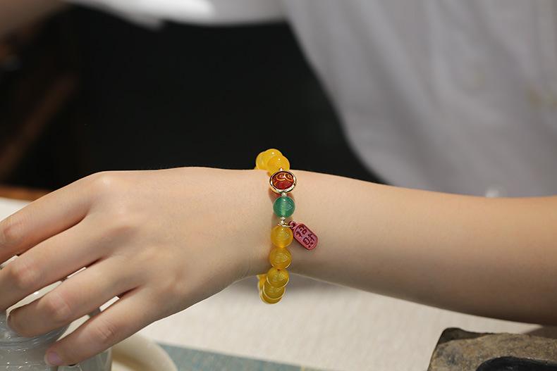 丨Nombre丨Pulsera de ágata amarilla natural con cinabrio para la buena fortuna