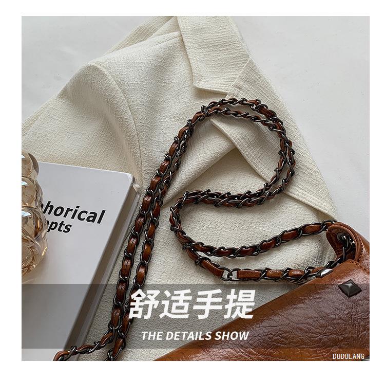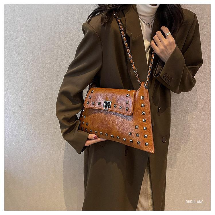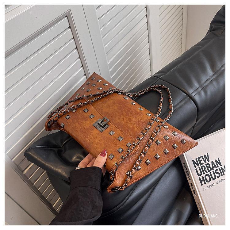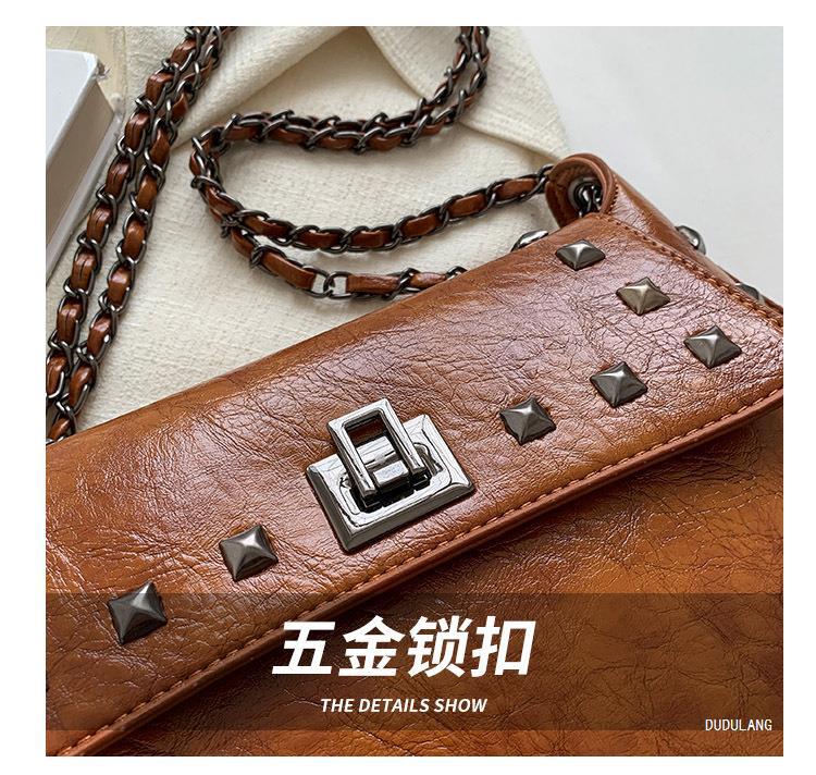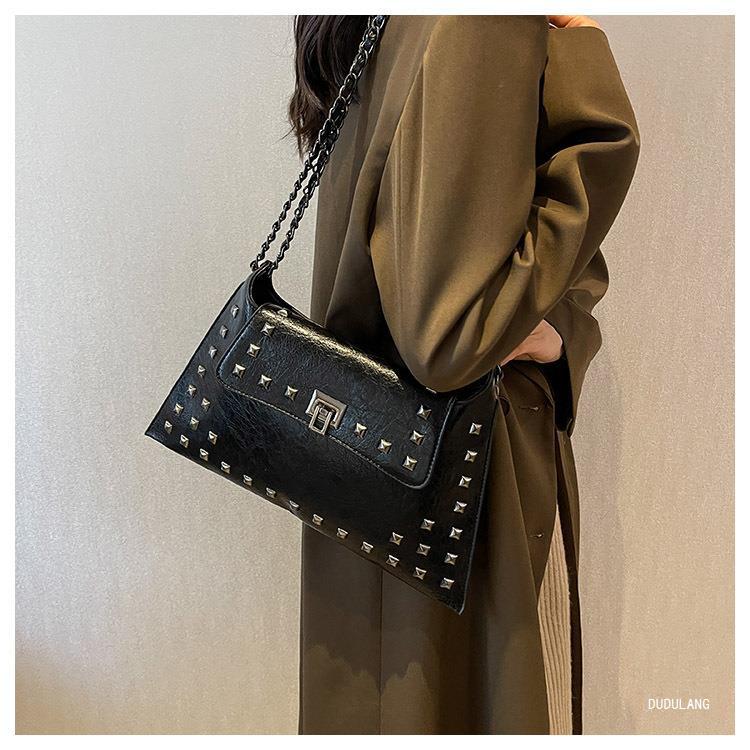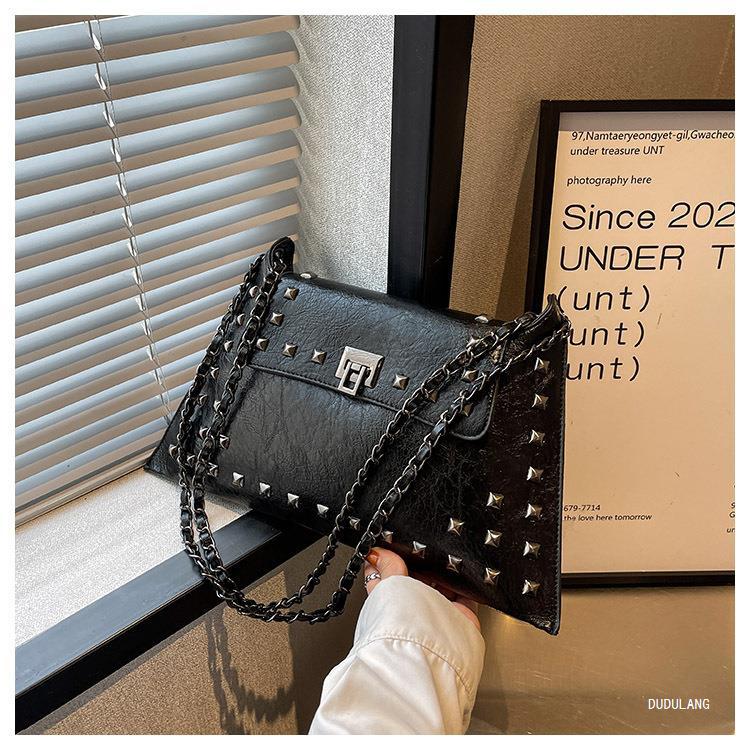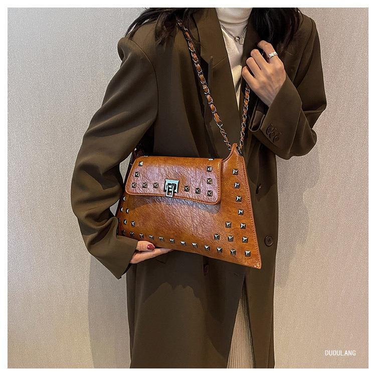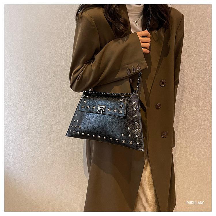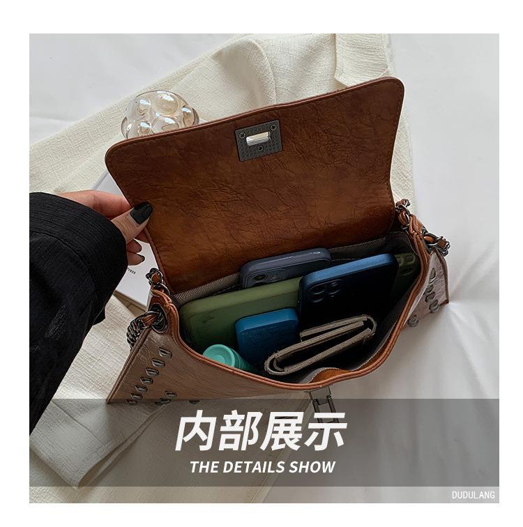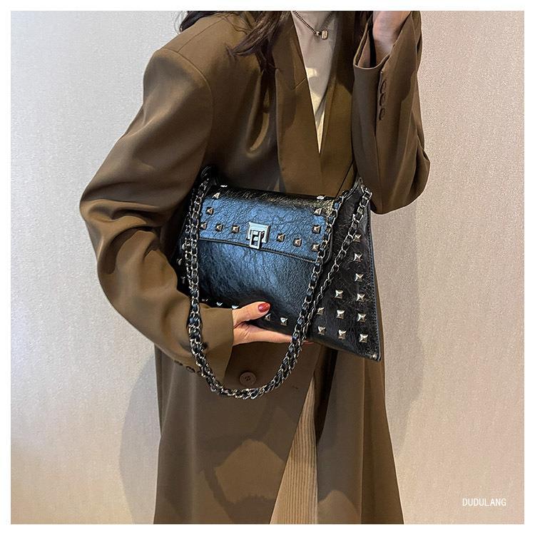 Bolso Retro de Remaches para Mujer 2025 Primavera Nuevo Transfronterizo Cadena Texturizada Portátil Hombro Bandolera