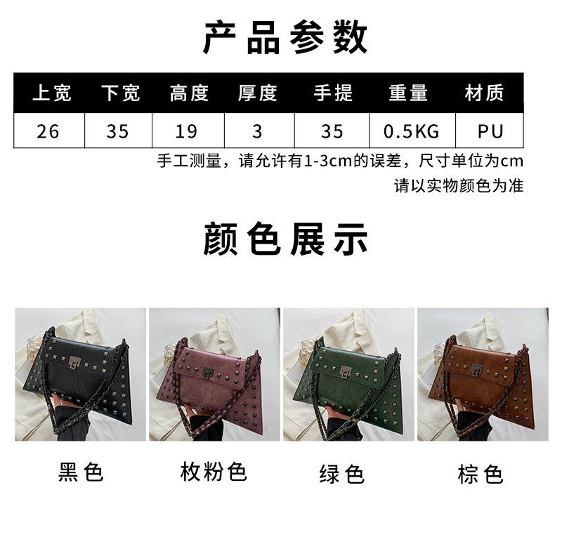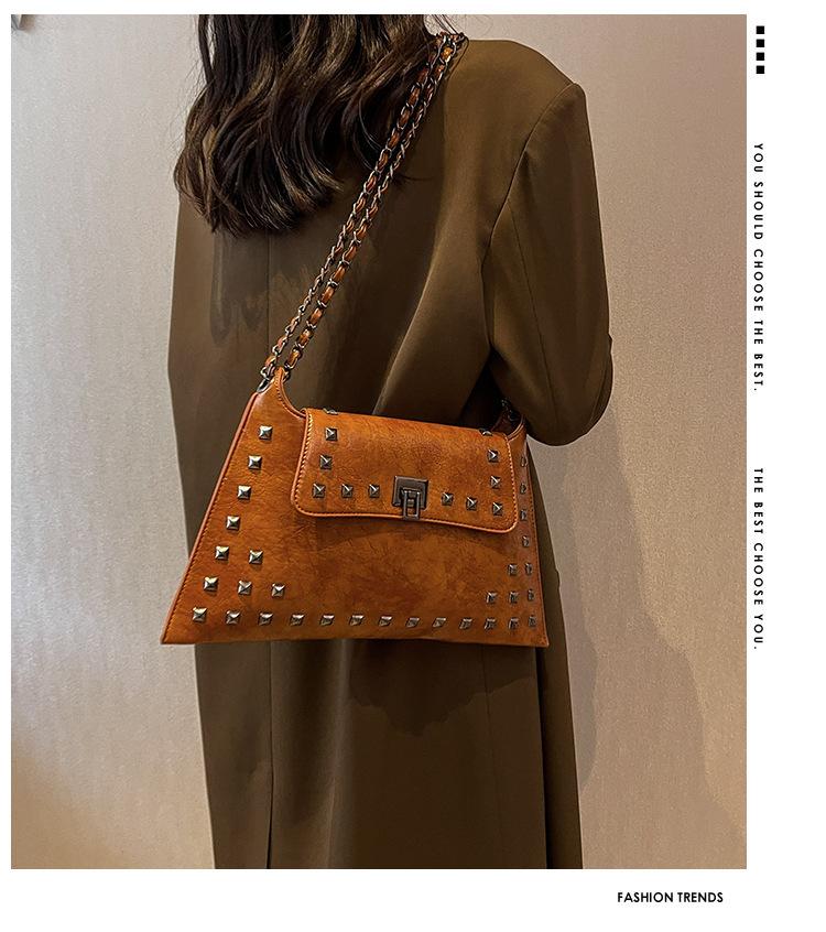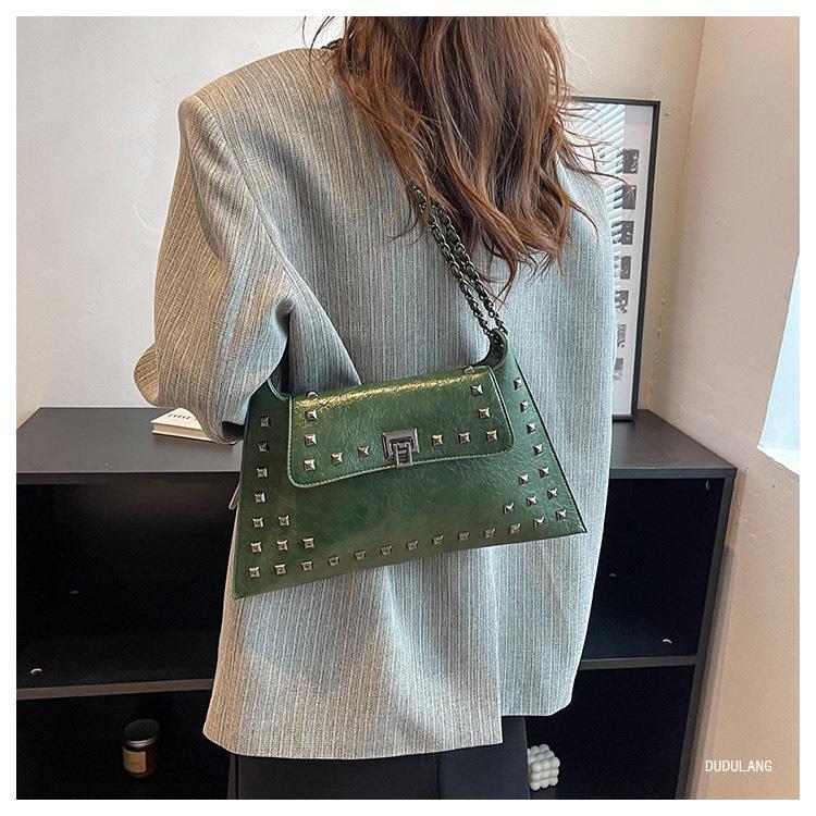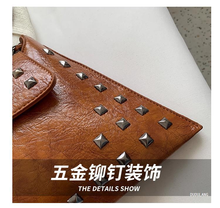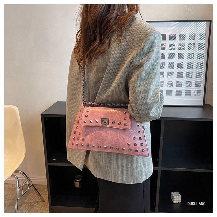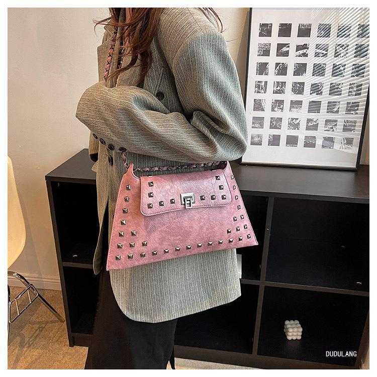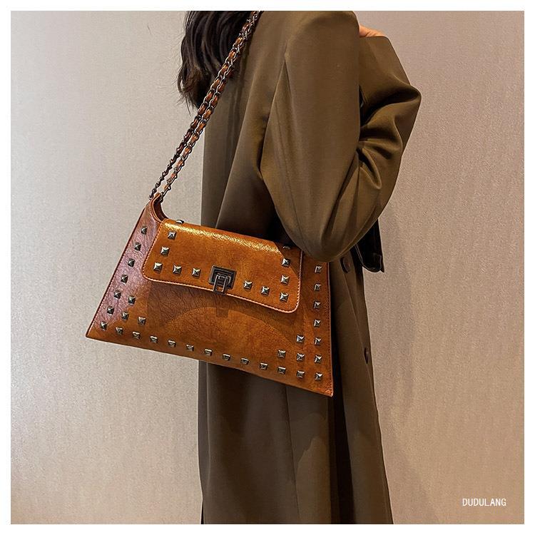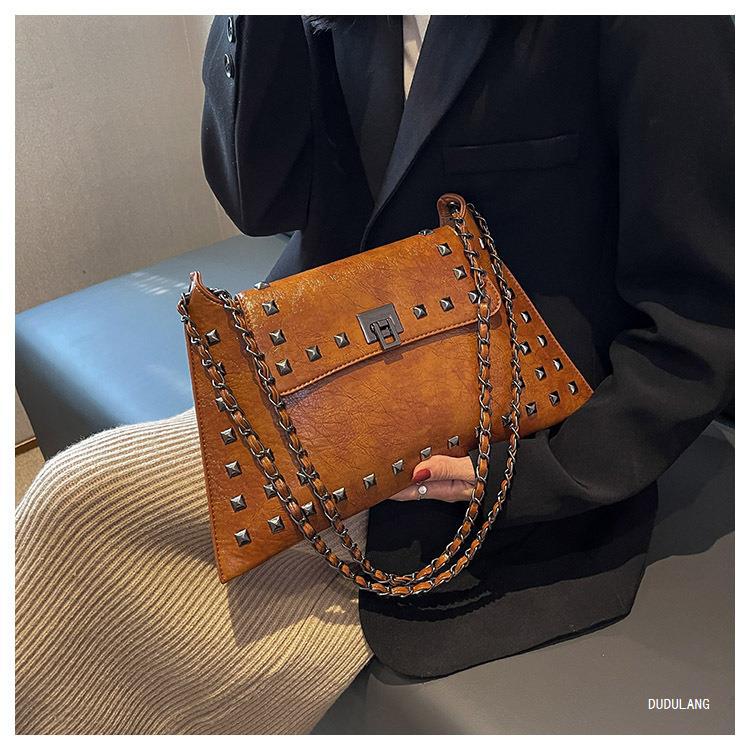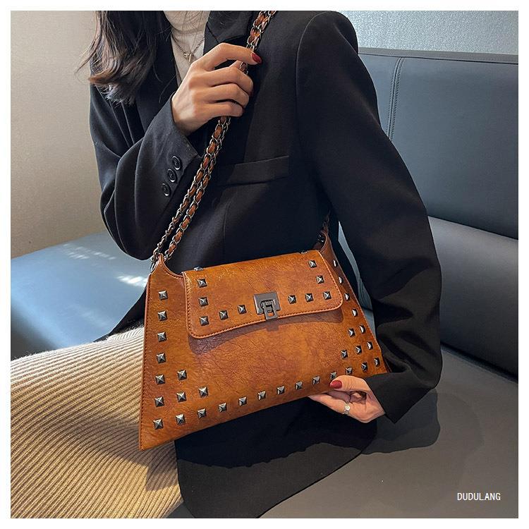 Bolso Retro de Remaches para Mujer 2025 Primavera Nuevo Transfronterizo Cadena Texturizada Portátil Hombro Bandolera