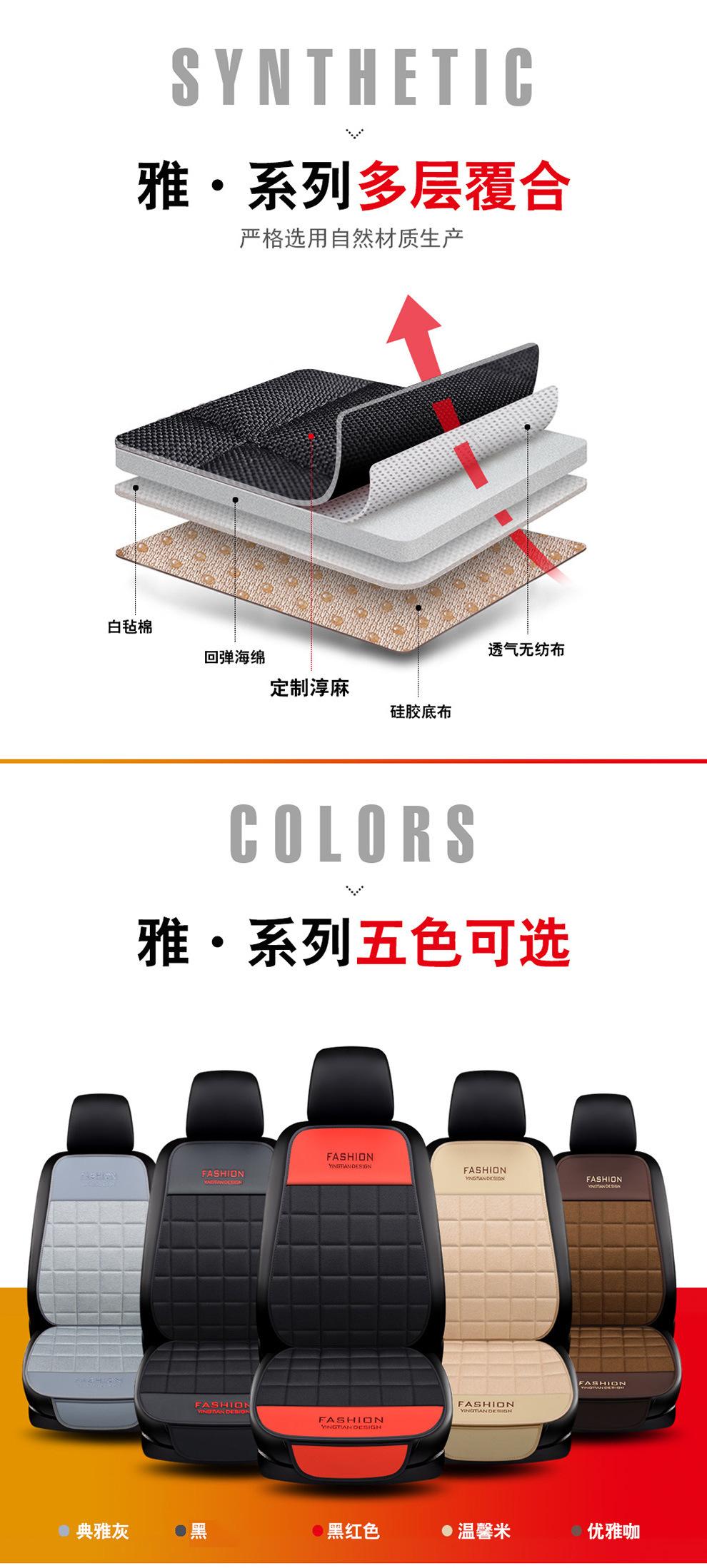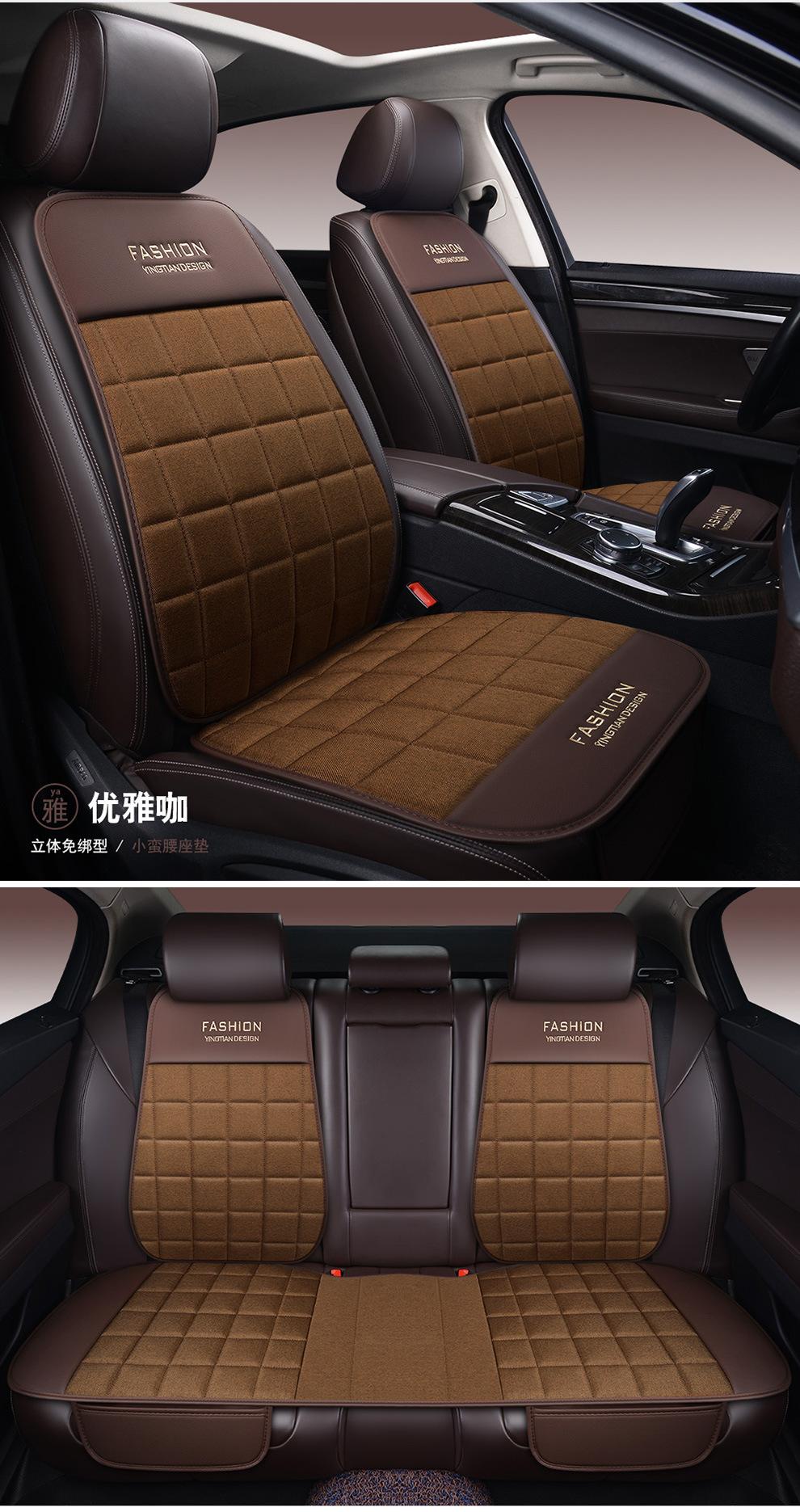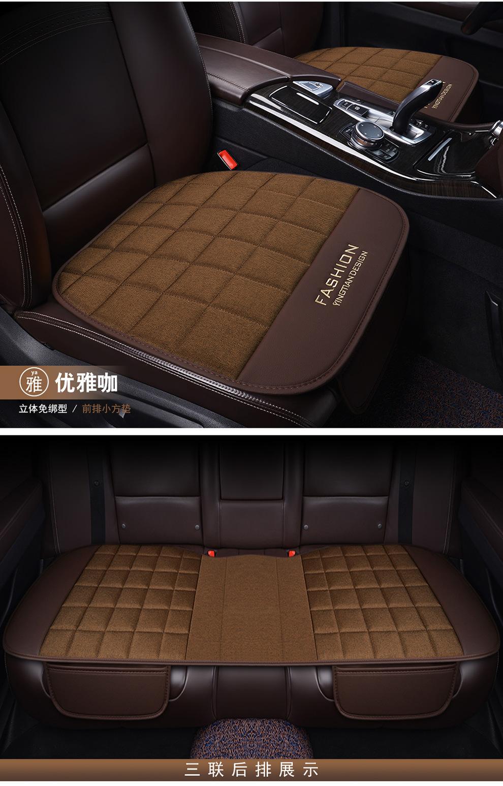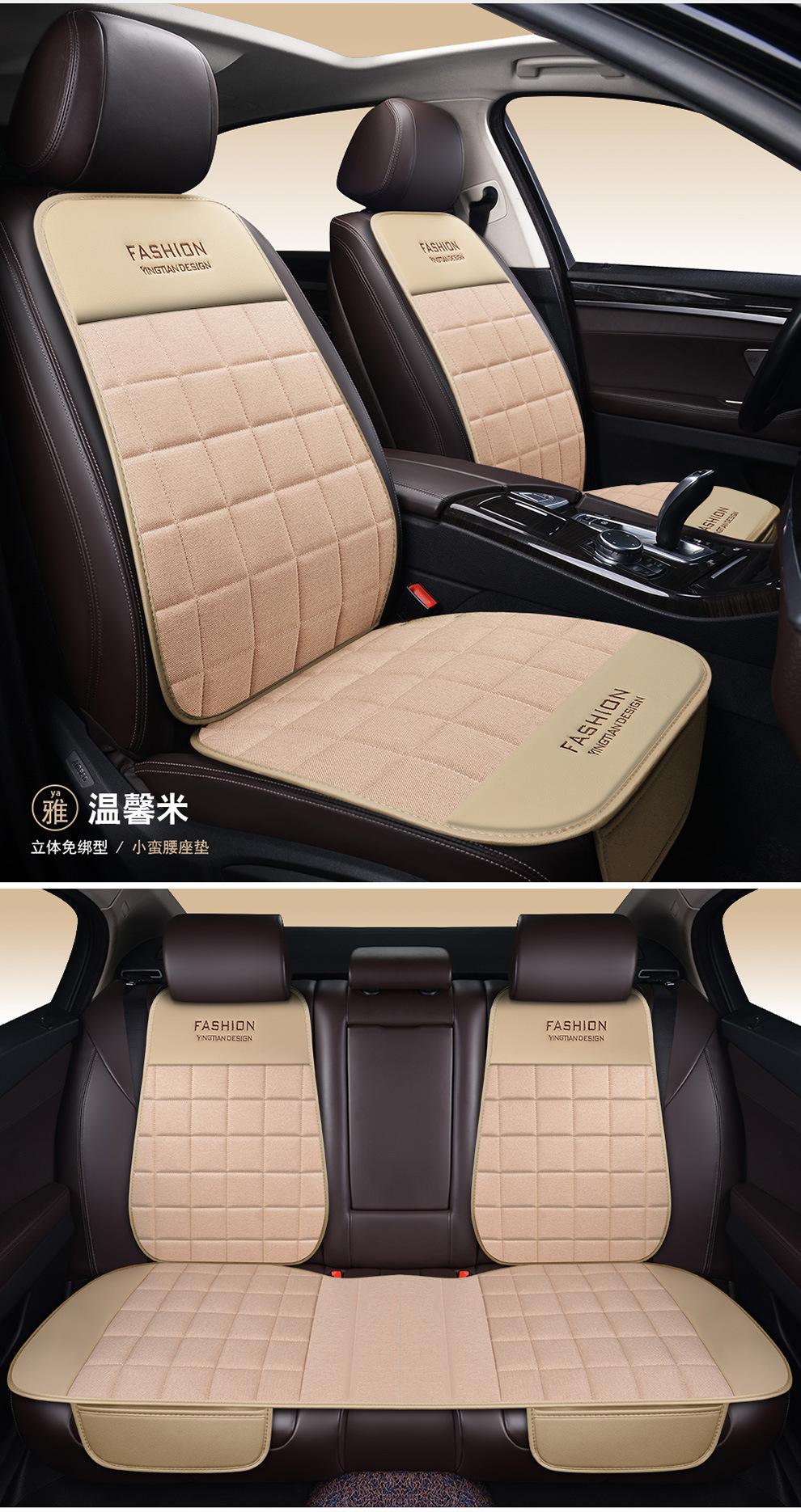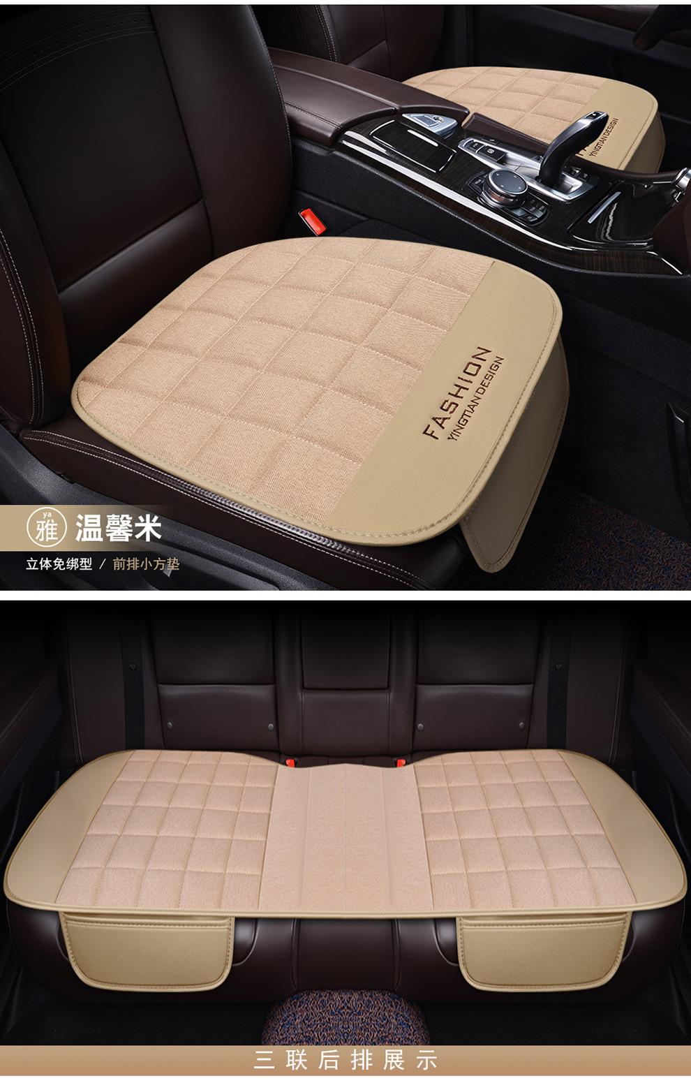 Cojín de coche de lino para cuatro estaciones, universal, de tres piezas, de una sola pieza, sin respaldo, para un solo asiento, para cuatro estaciones, cojín de asiento trasero