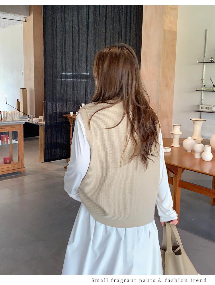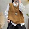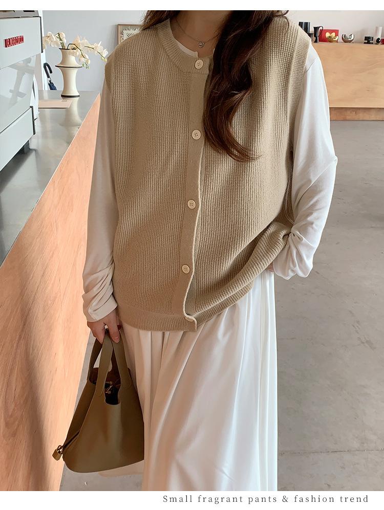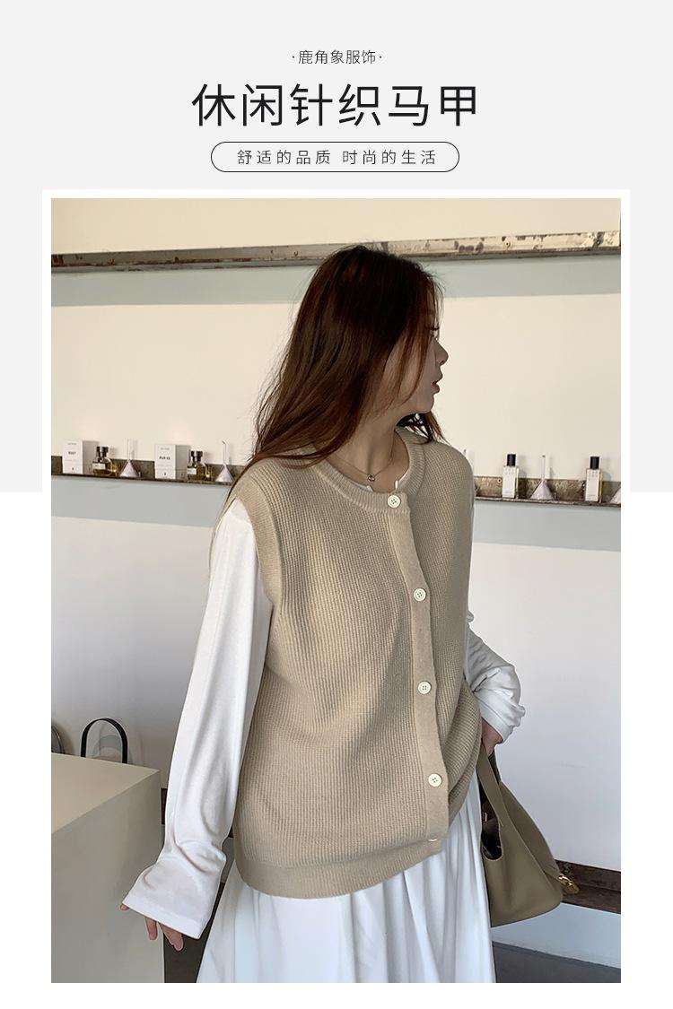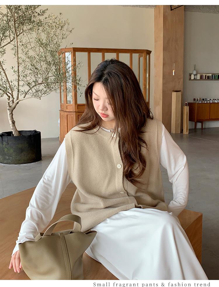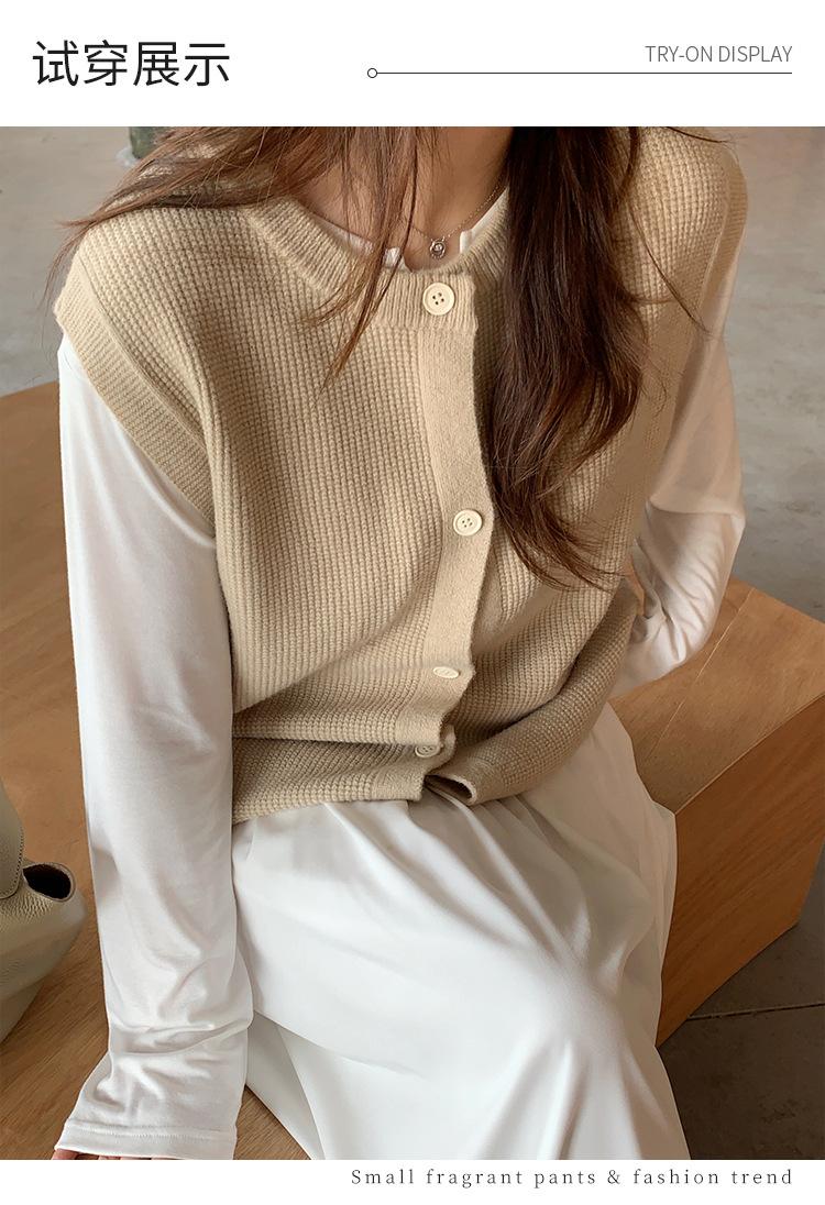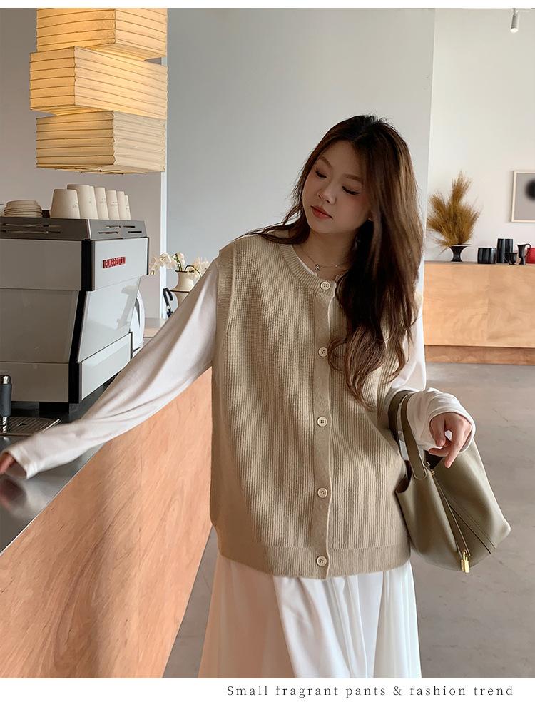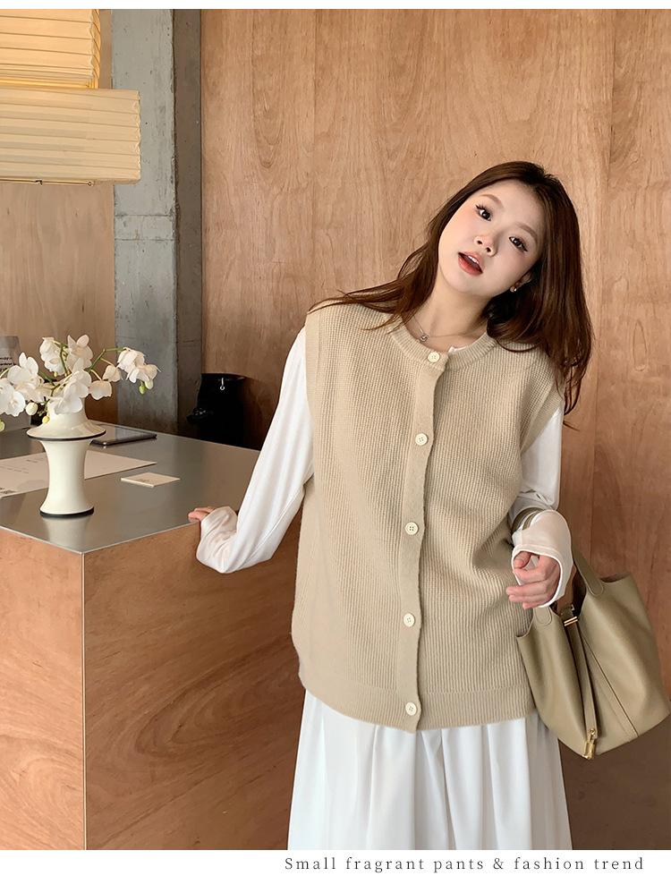 Cárdigan de punto con cuello redondo, estilo coreano, de color sólido, combinable con todo, holgado, sin mangas, para mujer de talla grande