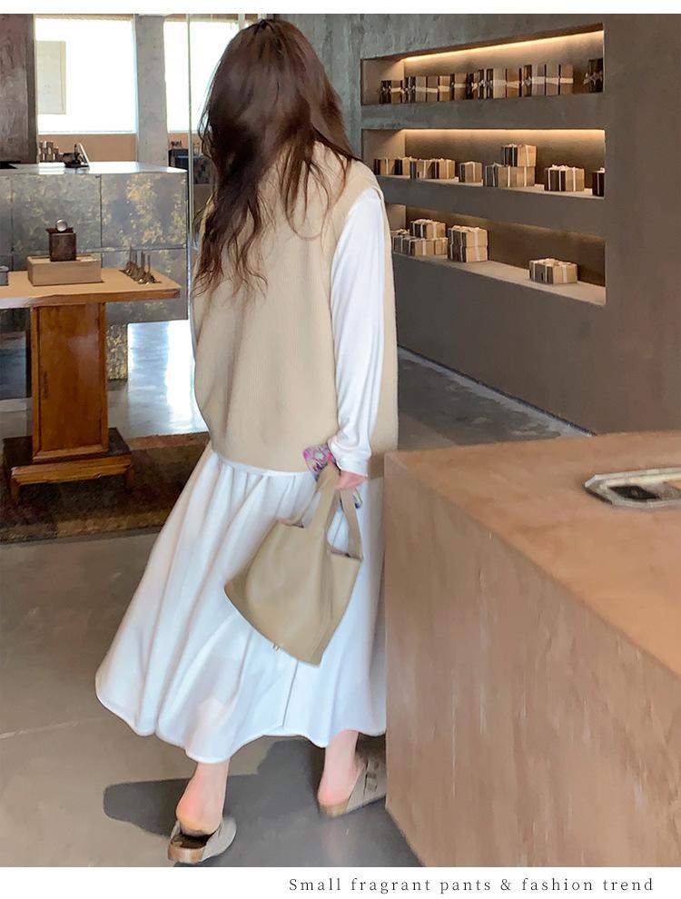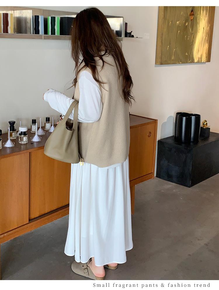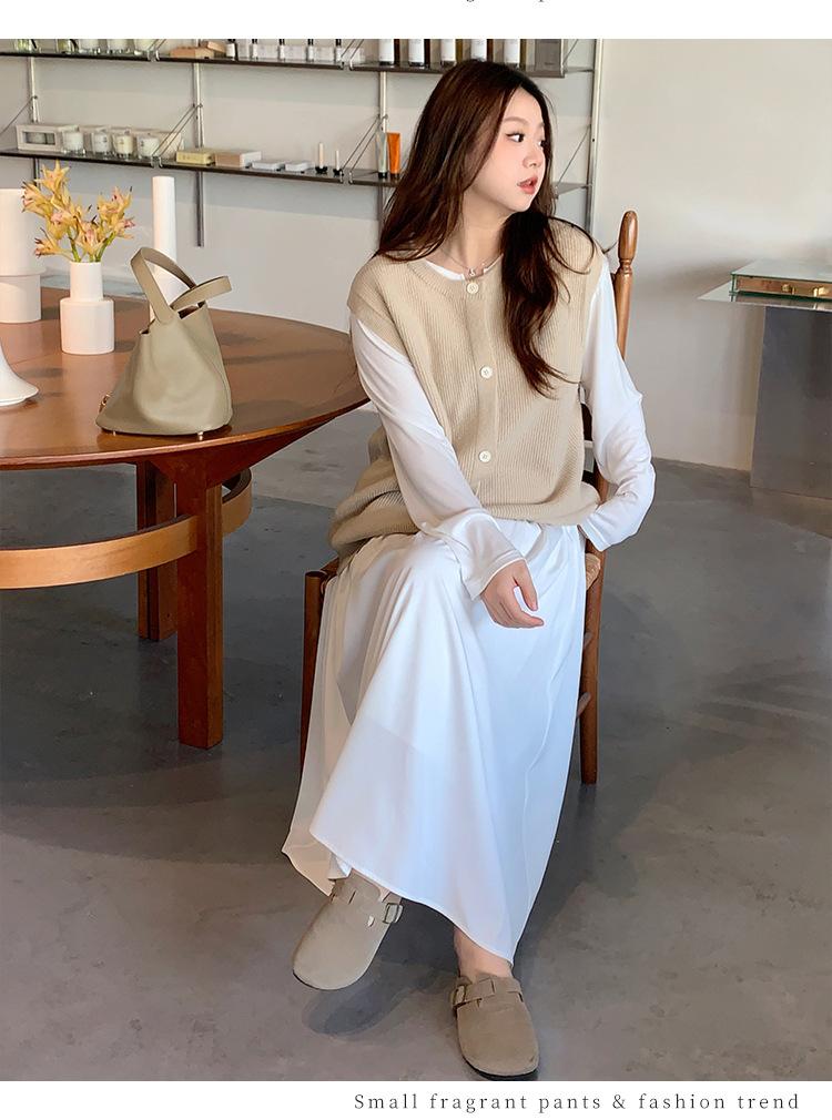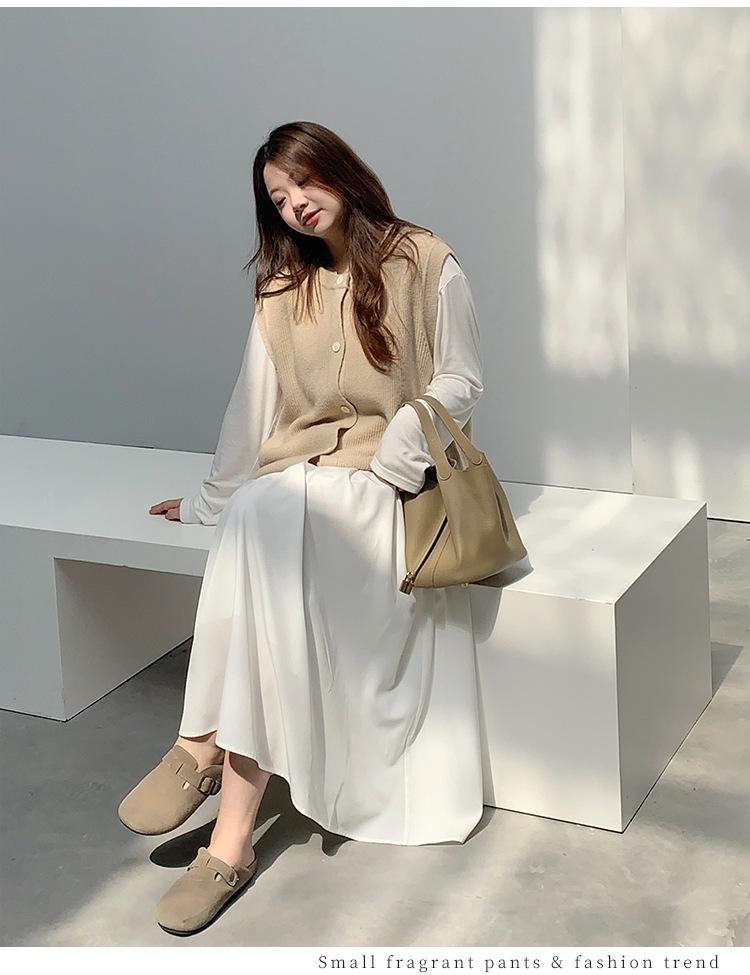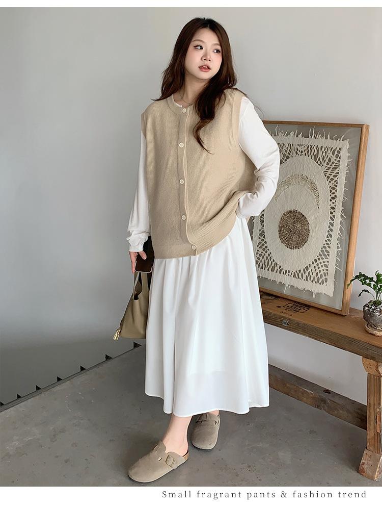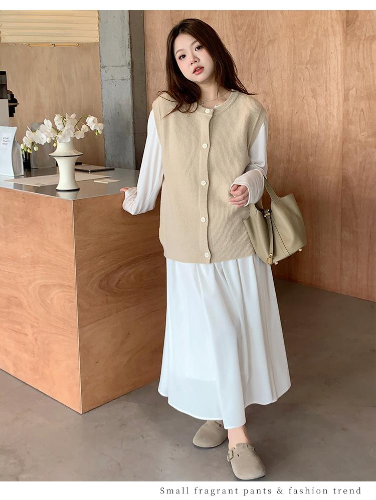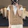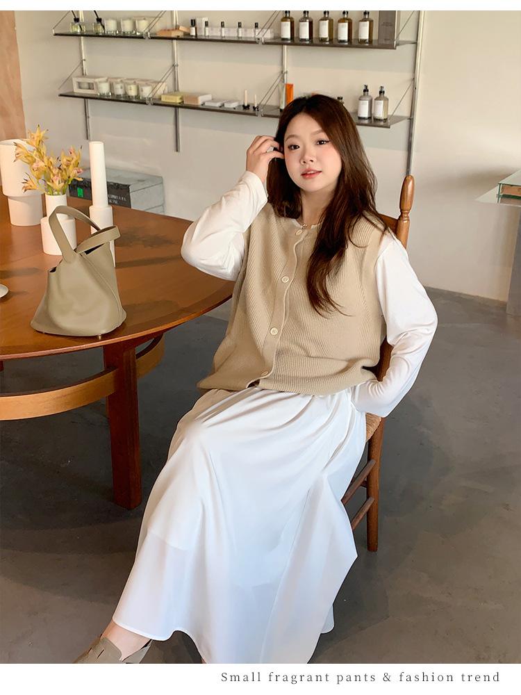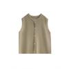 Cárdigan de punto con cuello redondo, estilo coreano, de color sólido, combinable con todo, holgado, sin mangas, para mujer de talla grande
