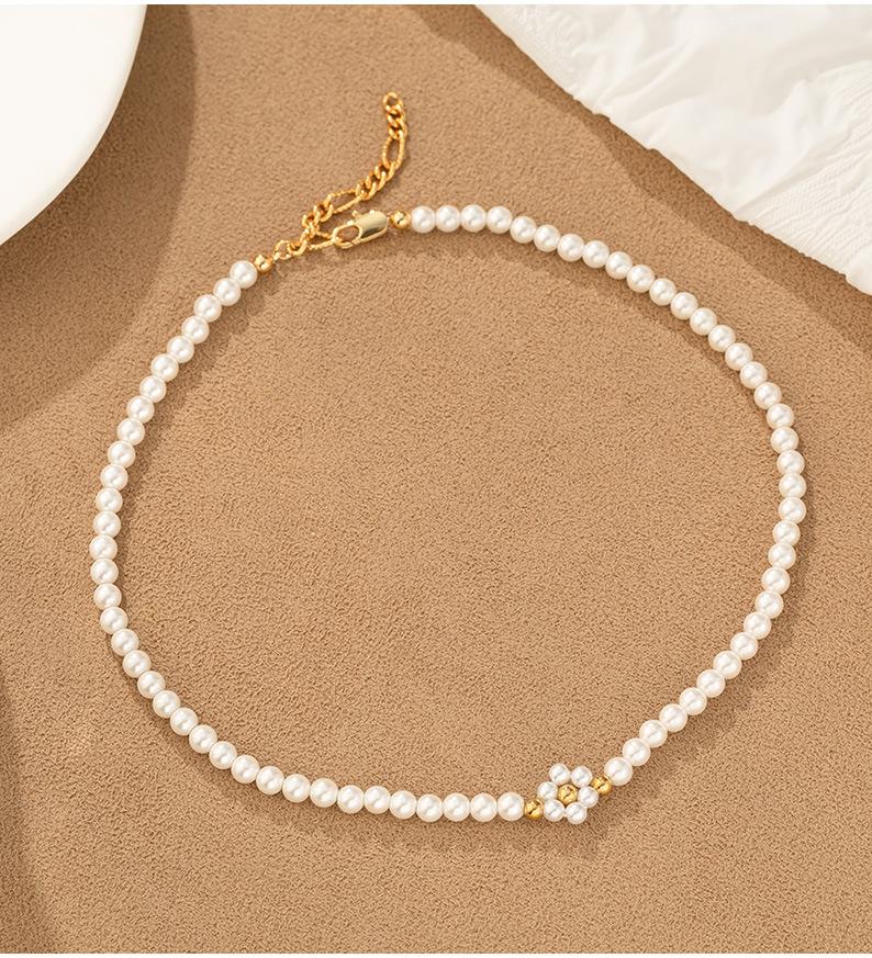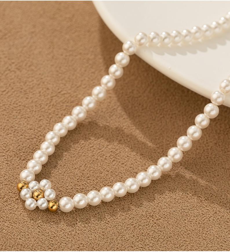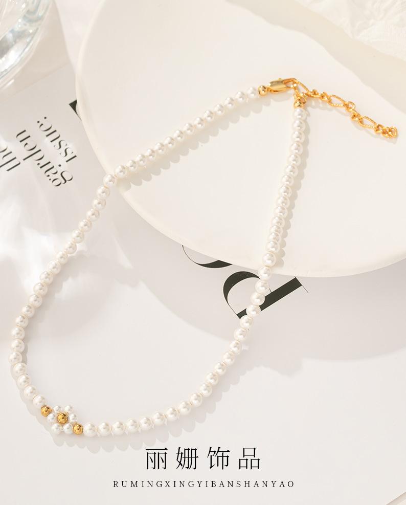 Temperamento transfronterizo Joyería al por mayor hecha a mano con cuentas cadena clavícula vacío que no se decolora perla redonda nicho collar de lujo
