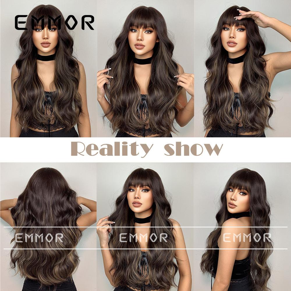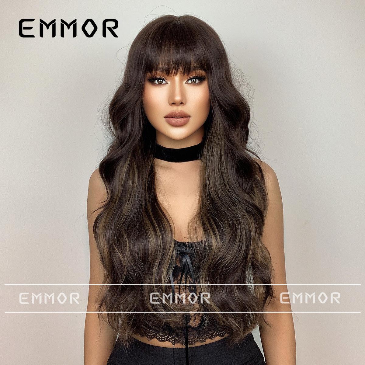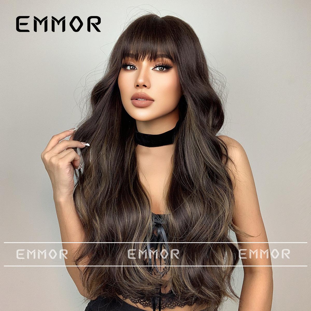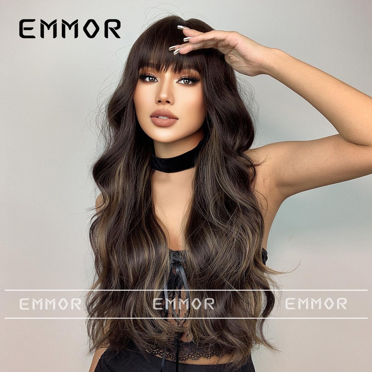 Compra Peluca de mujer de moda con temperamento, cabello largo y rizado con flequillo, estilo europeo y americano, con ondas grandes y color negro y marrón. al por mayor en Joom.pro