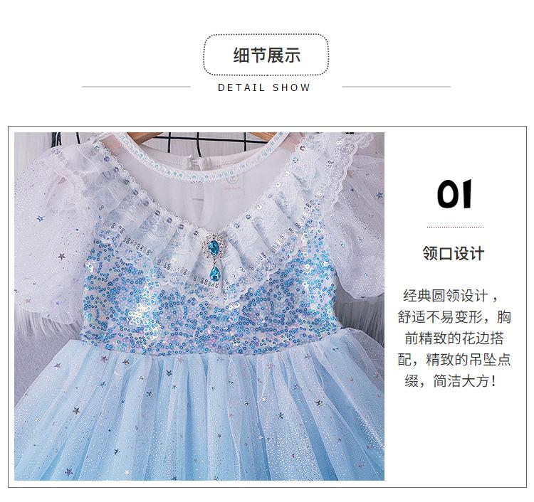 Vestido de princesa Elsa para niñas, verano 2024, manga corta, nuevo vestido de cumpleaños de Elsa para niños de Frozen.