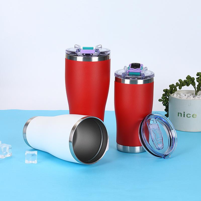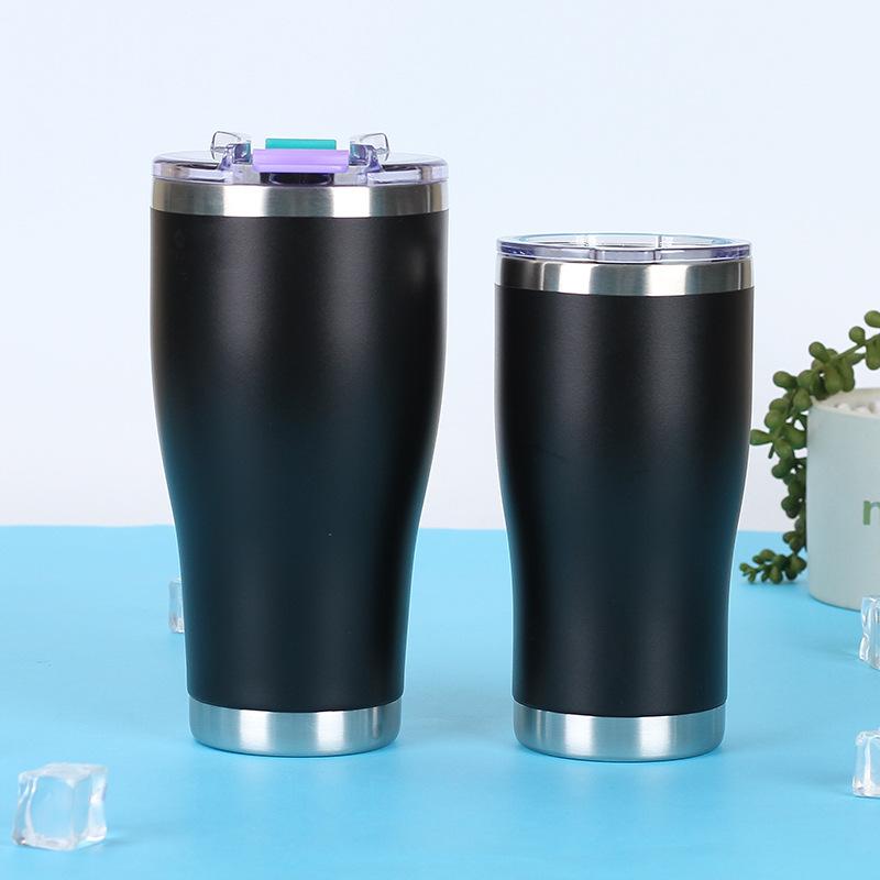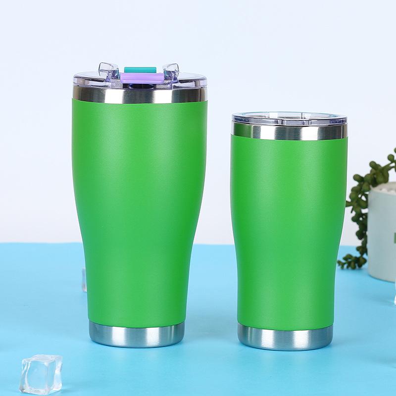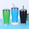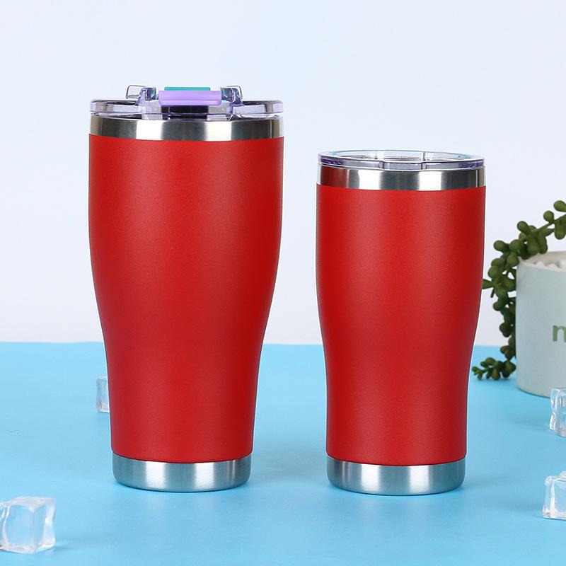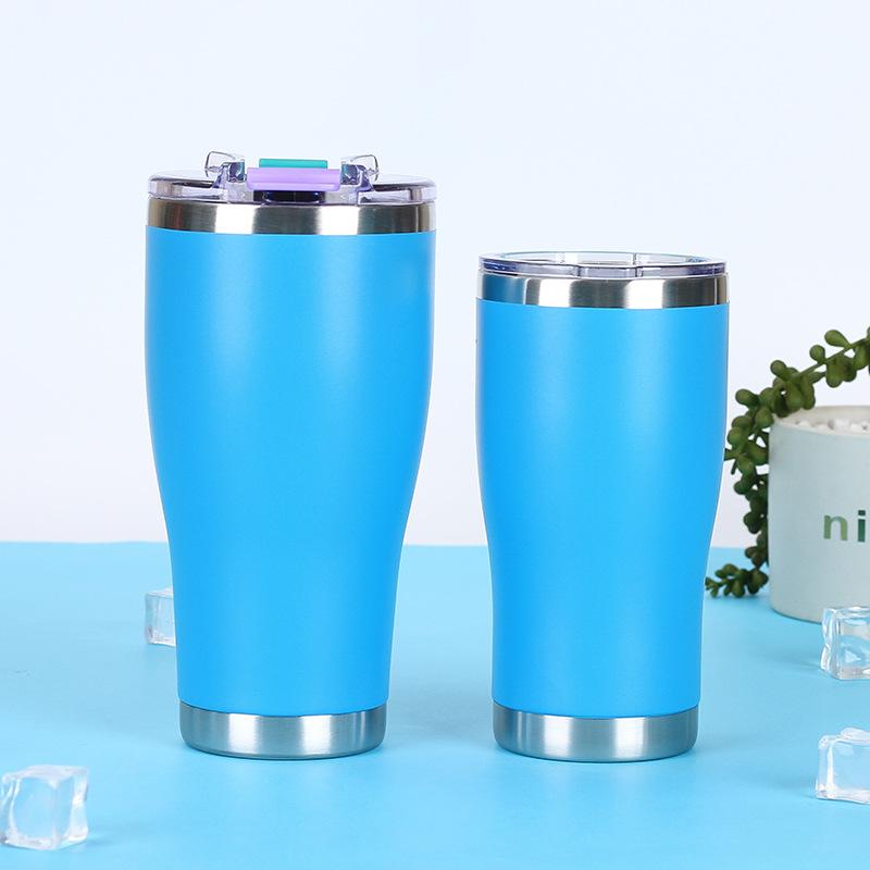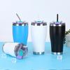 Termo de acero inoxidable rociado con plástico personalizado, doble cintura, taza para automóvil, taza doble para beber con pajita portátil para automóvil