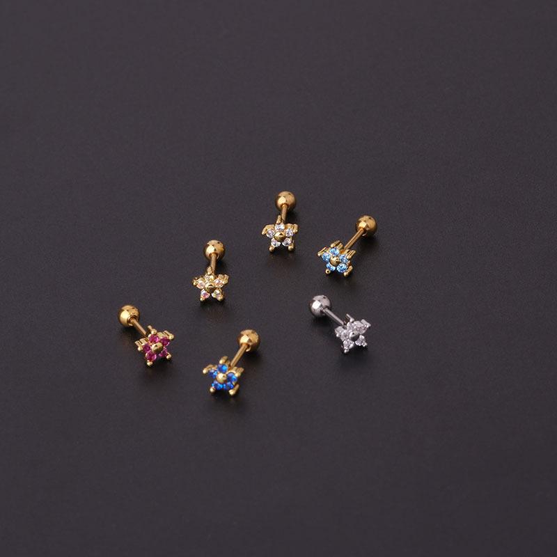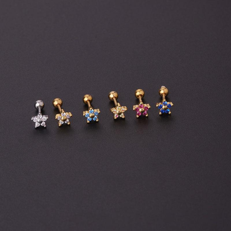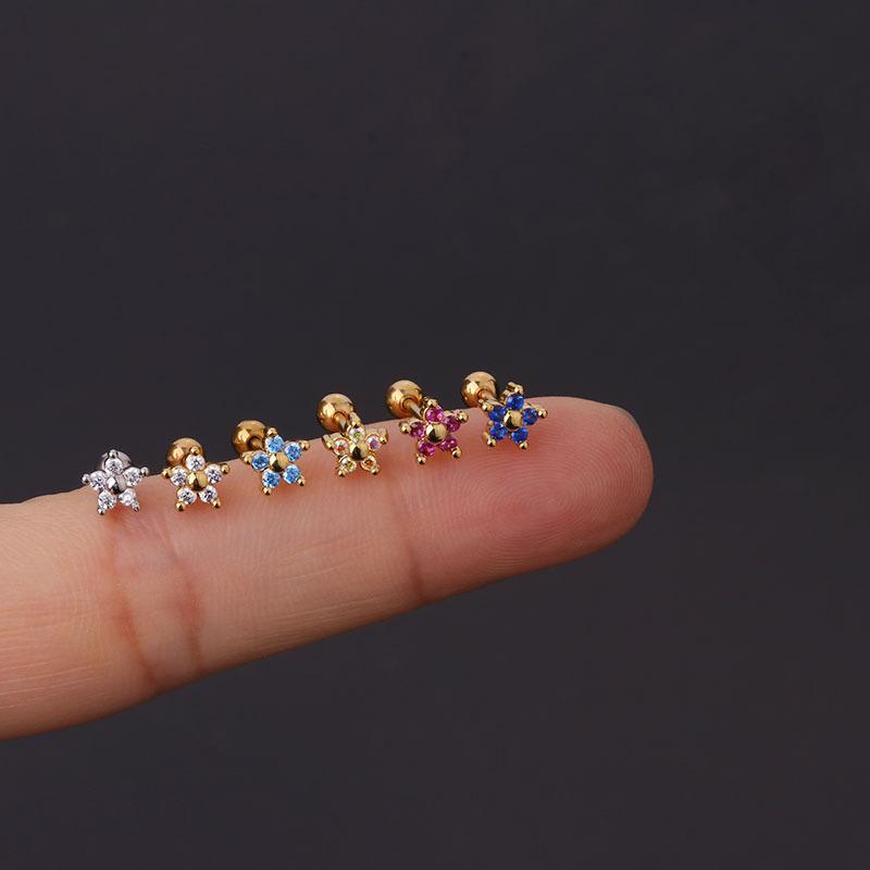 | nombre del producto | Mini aretes de flor para dormir sin quitarse aretes de moda para mujer tornillos cocleares y bolas acero inoxidable 20G aguja fina aretes para el hueso de la oreja |