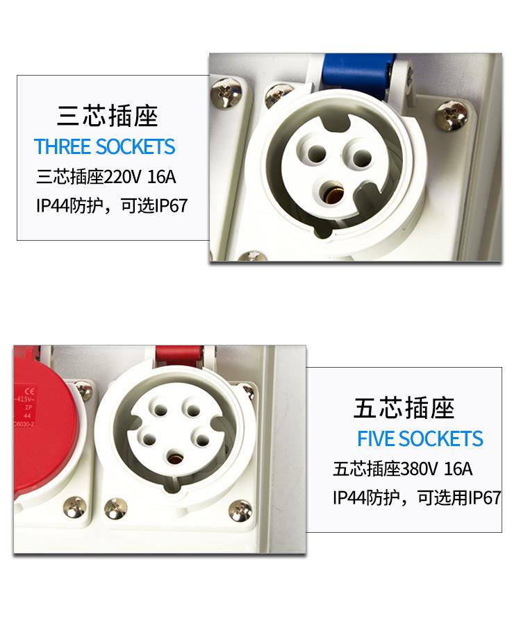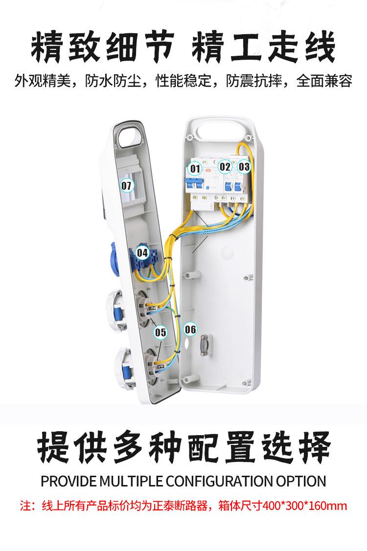 Caja de distribución de enchufes móviles portátil trifásica para exteriores temporal 220V construcción bidireccional tres niveles sitio de construcción caja eléctrica