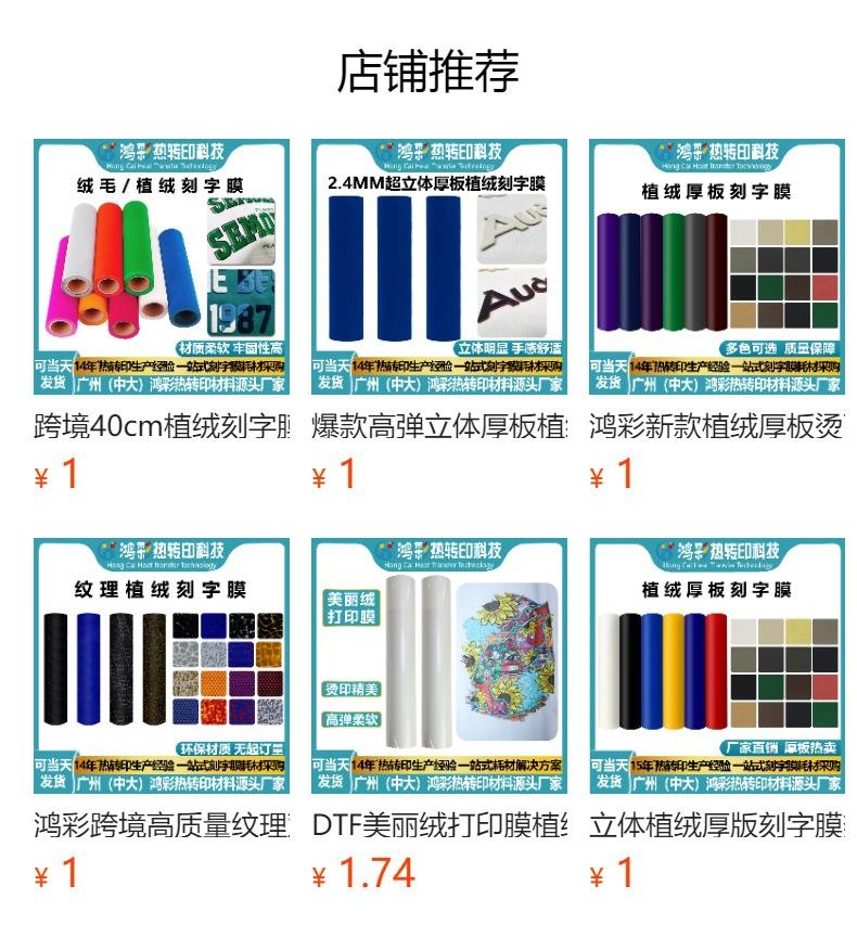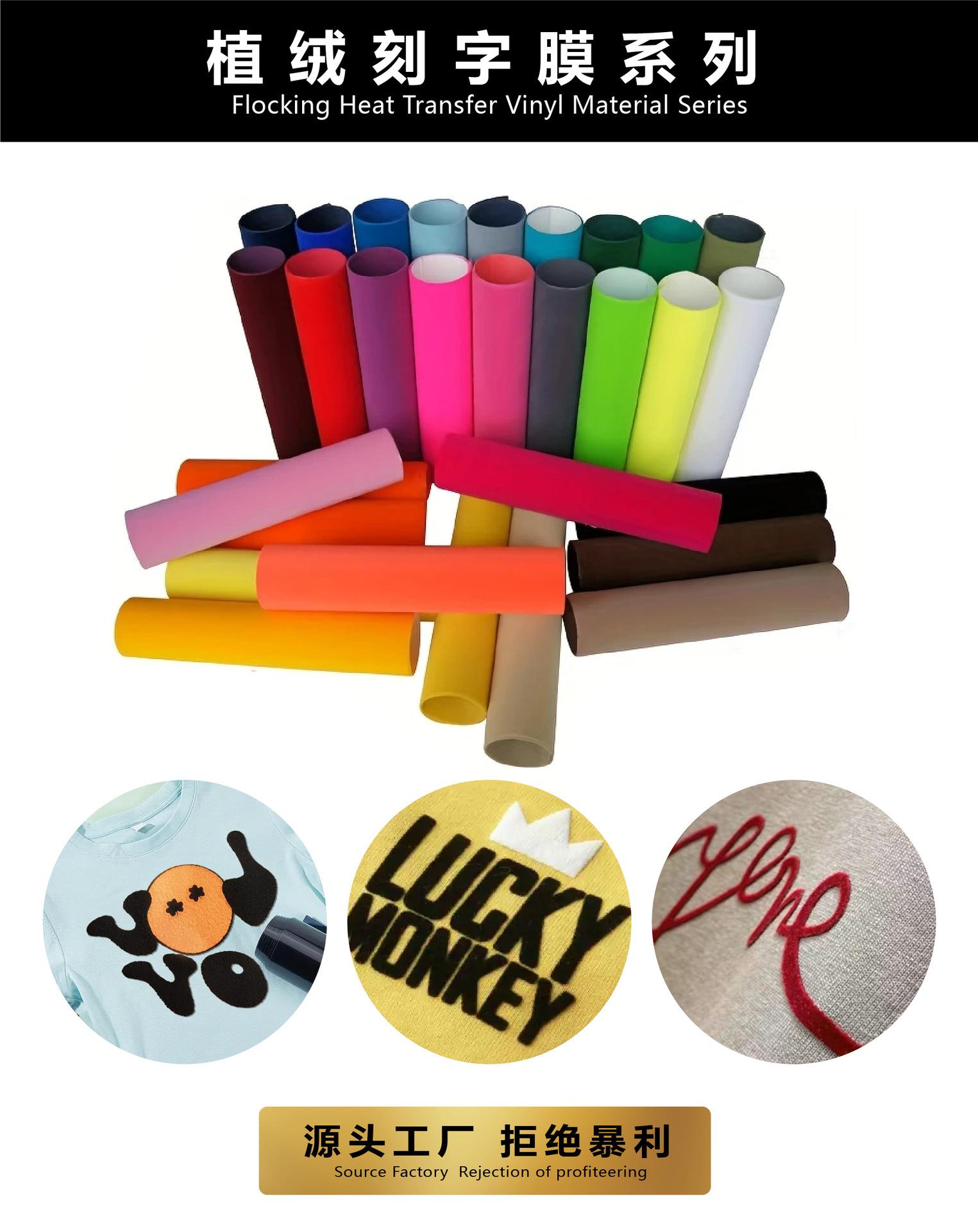 Hongcai Film Flocado para Letras Transferencia de Calor Flocado Estampado Vinilo Impresión de Ropa Grabado Hoja de Película Personalización