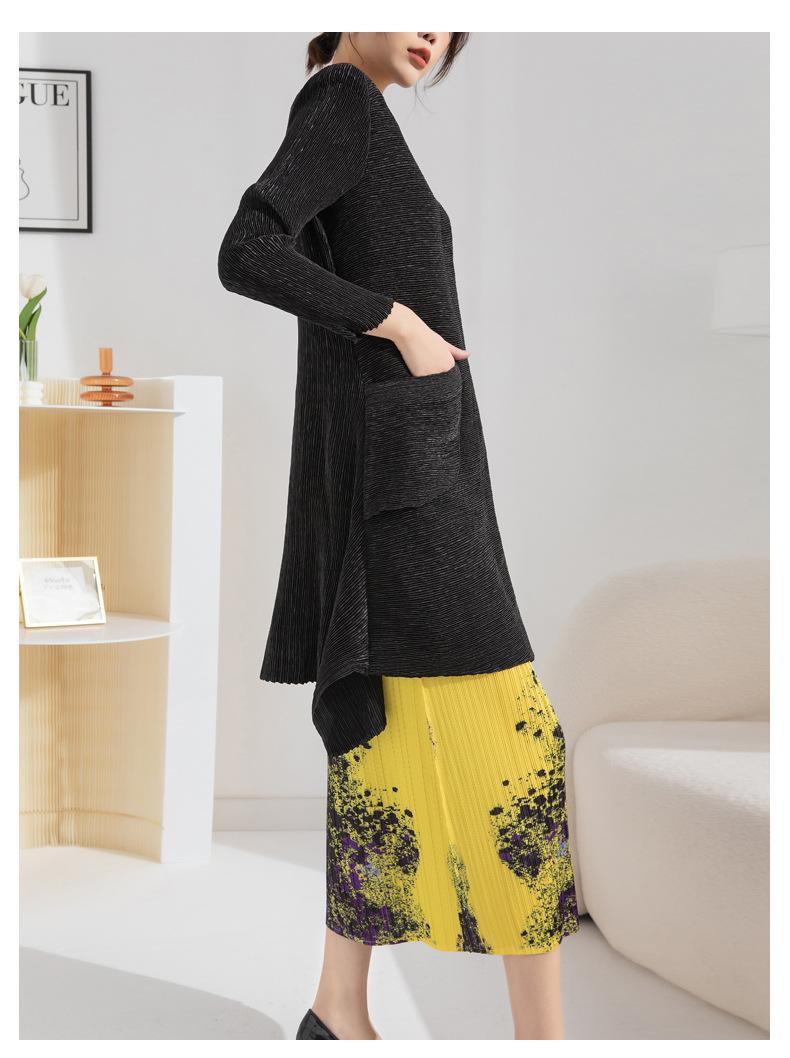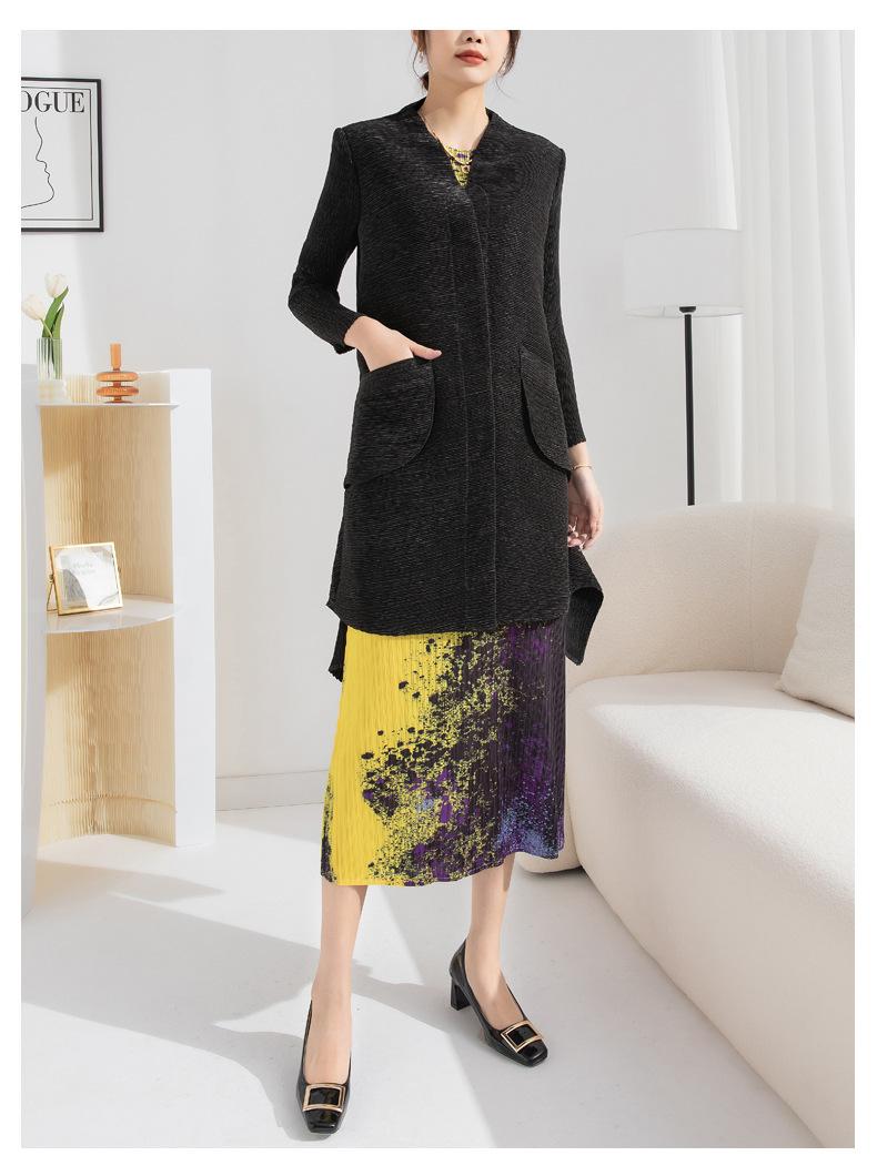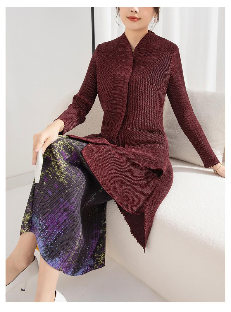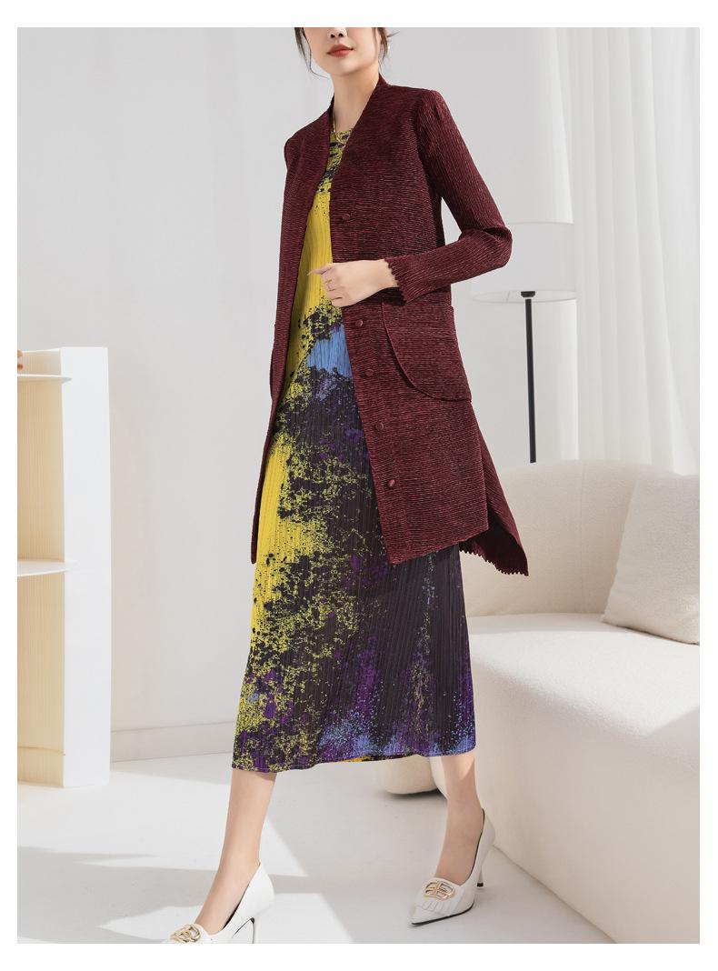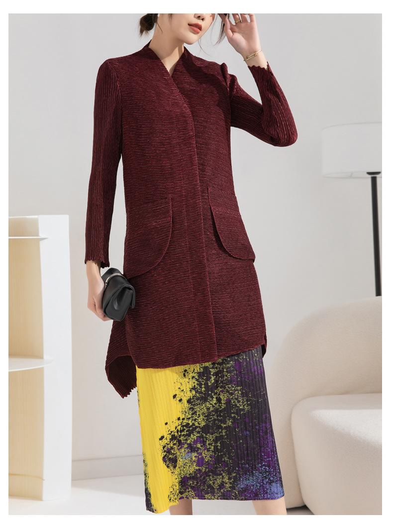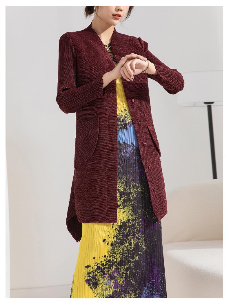 Abrigo trench para mujer de largo medio plisado de alta gama otoño e invierno 2022 temperamento moderno drapeado sobre la rodilla top de alta calidad